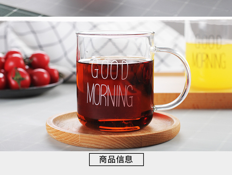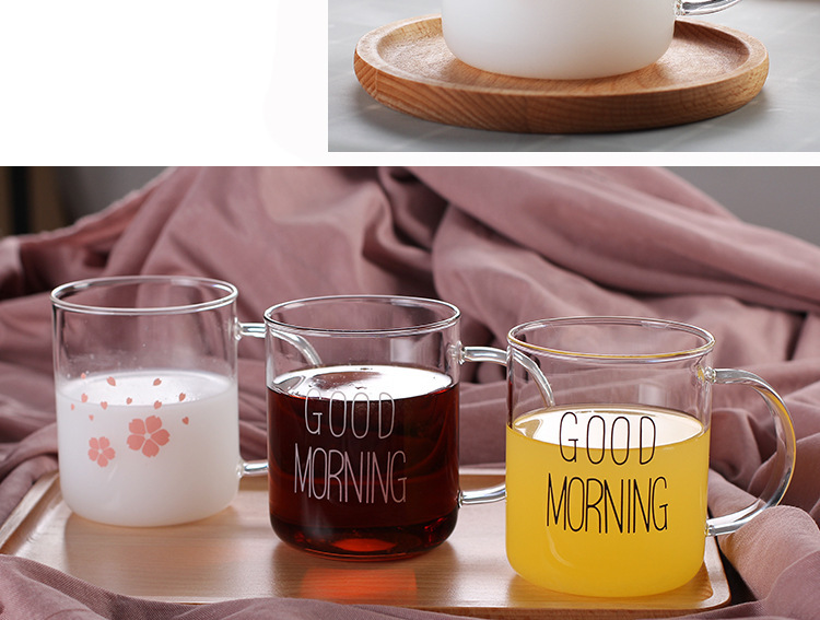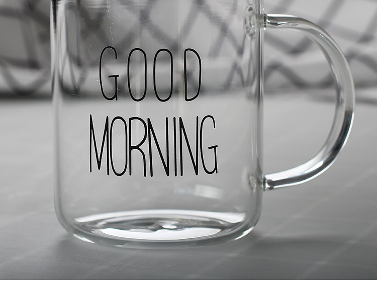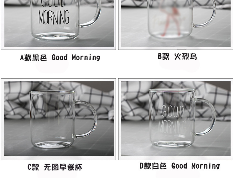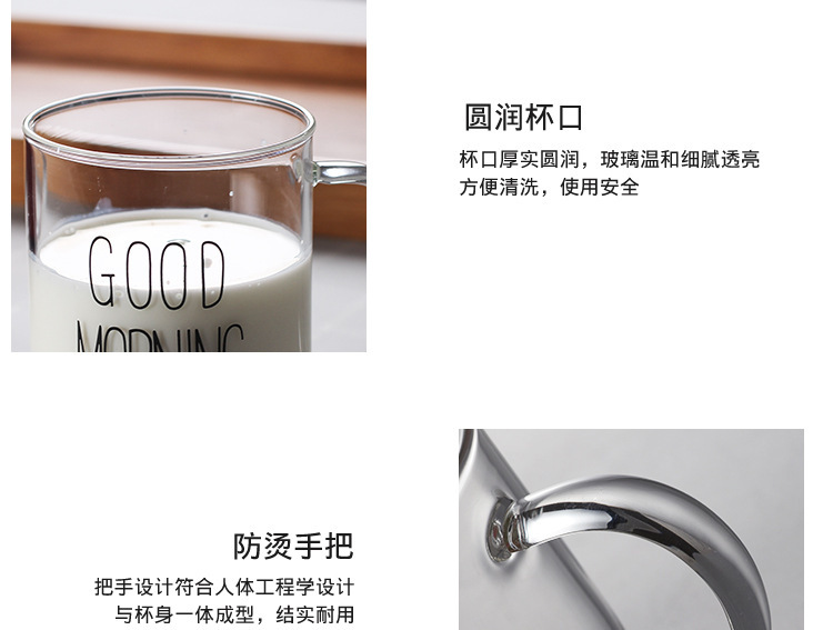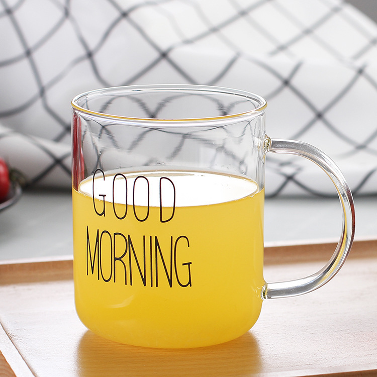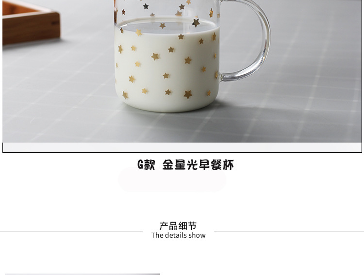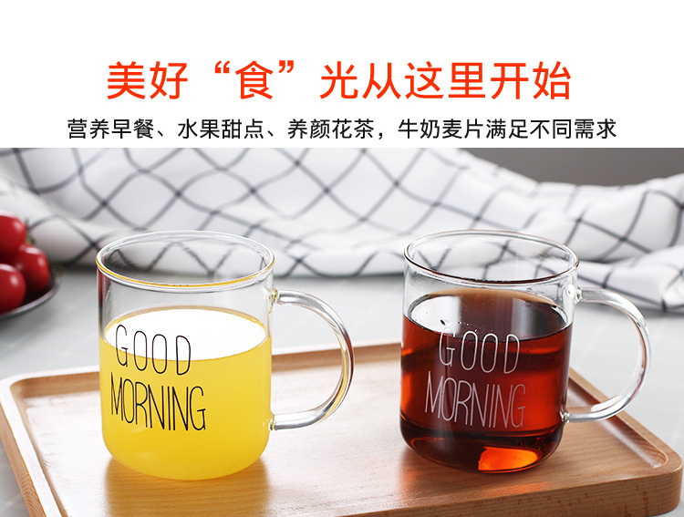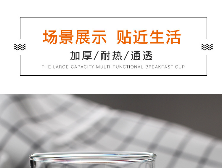 早餐杯燕麦杯牛奶咖啡杯玻璃杯家用情侣杯加厚玻璃水杯印花杯圆形