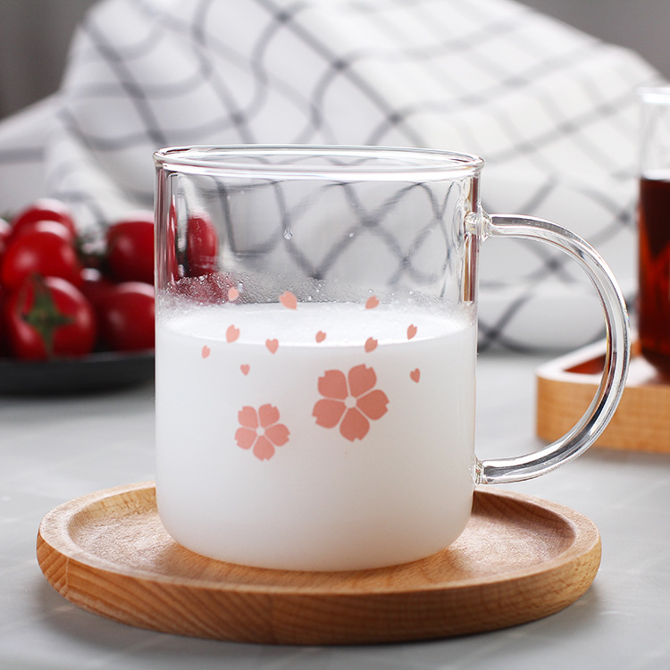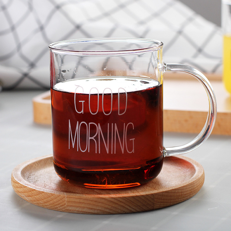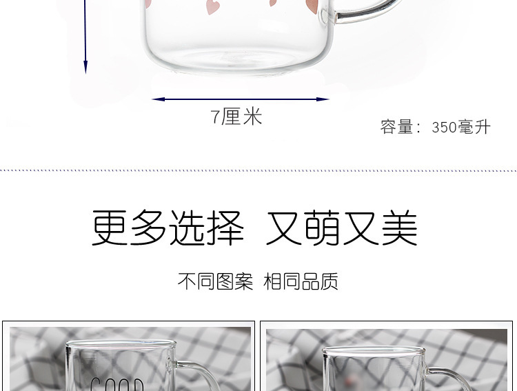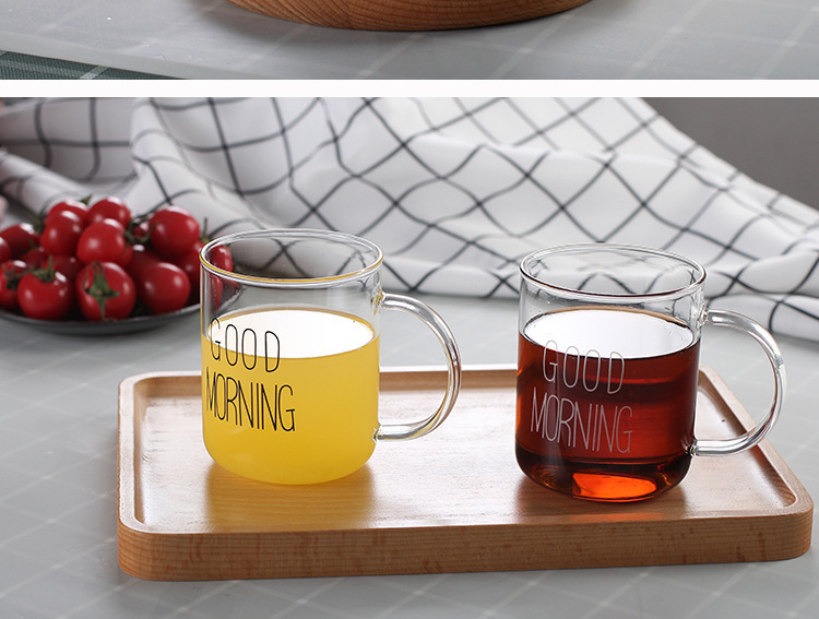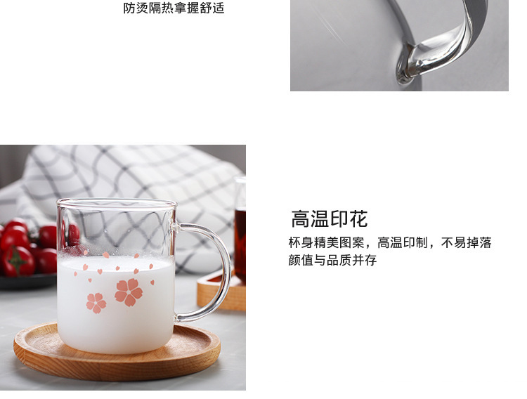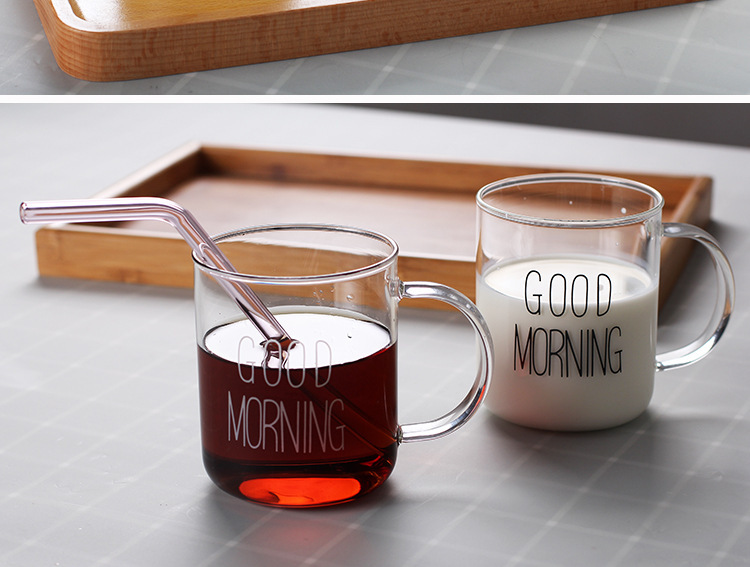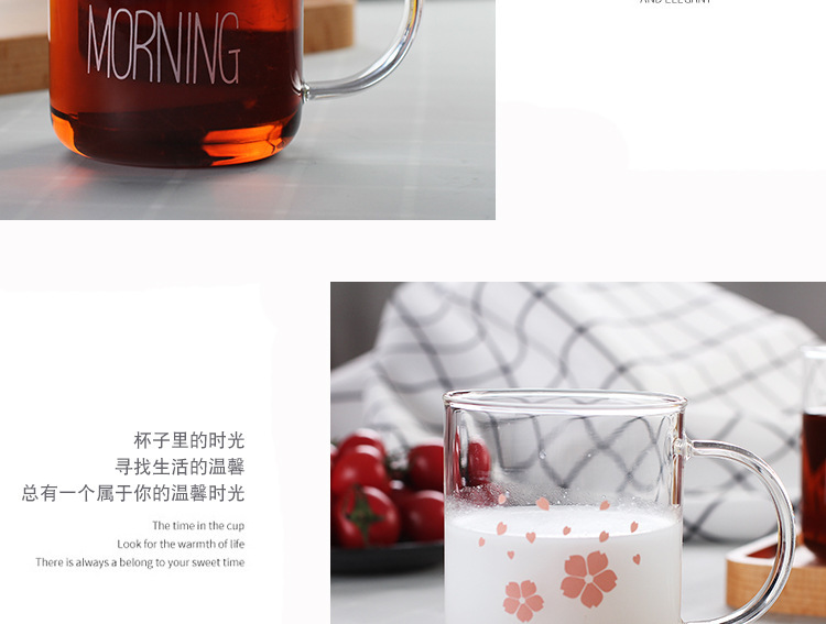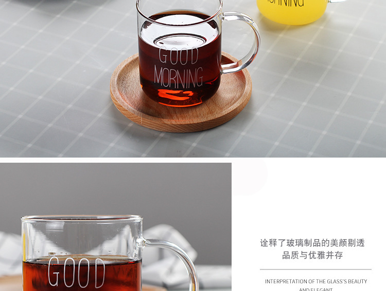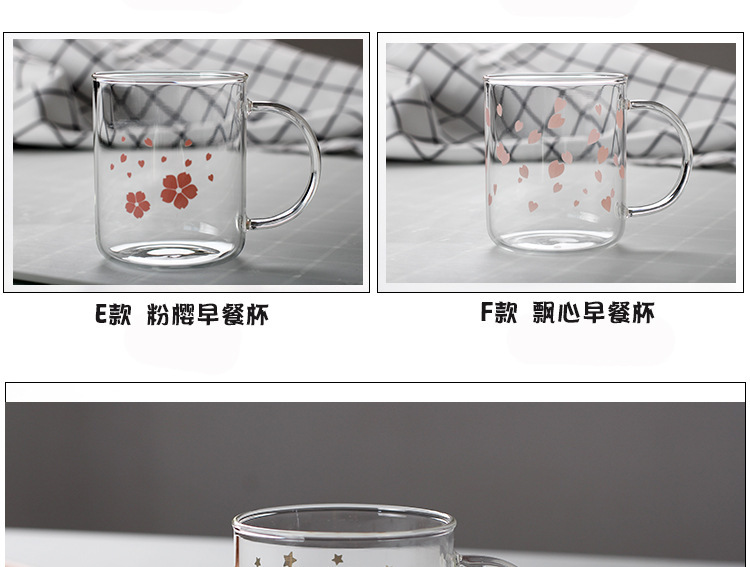 早餐杯燕麦杯牛奶咖啡杯玻璃杯家用情侣杯加厚玻璃水杯印花杯圆形