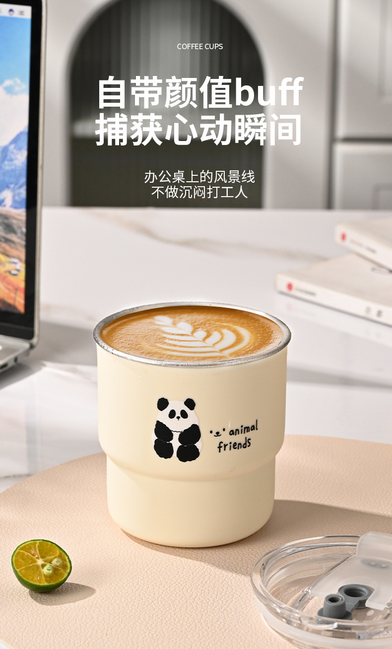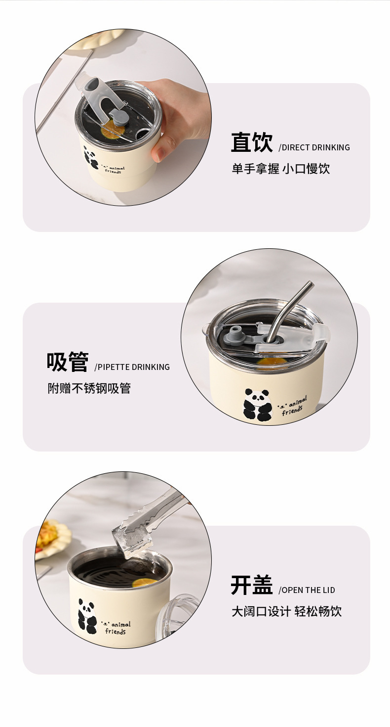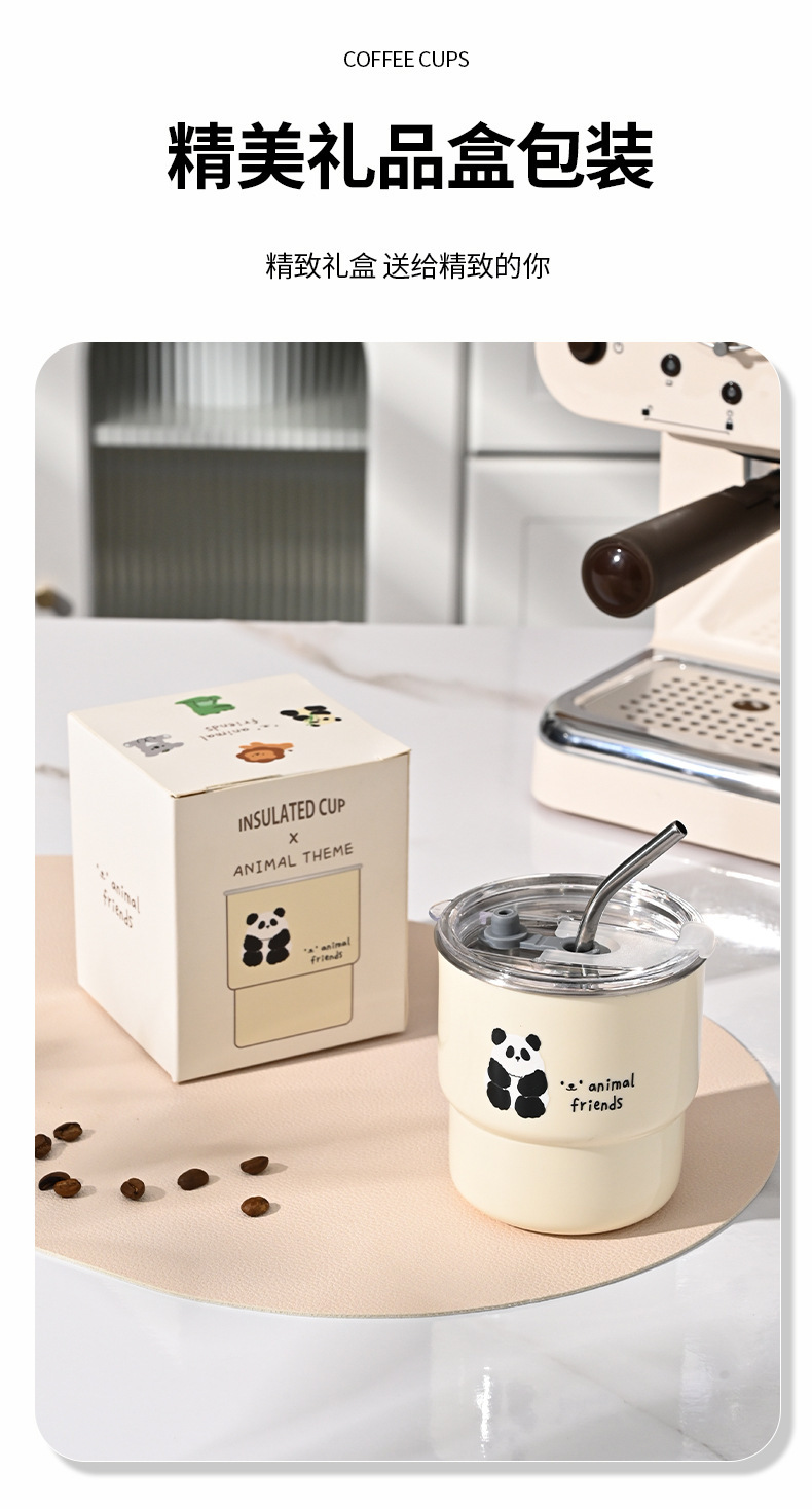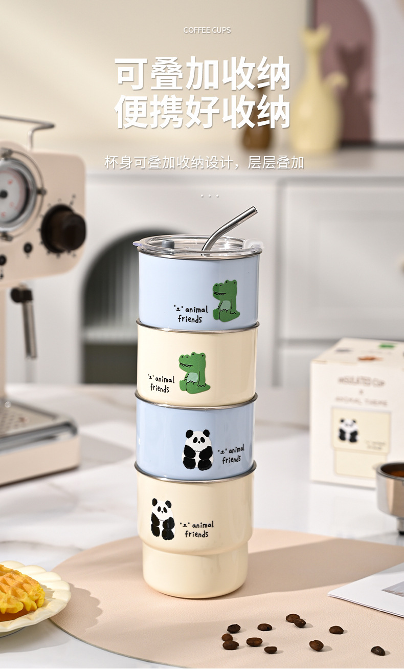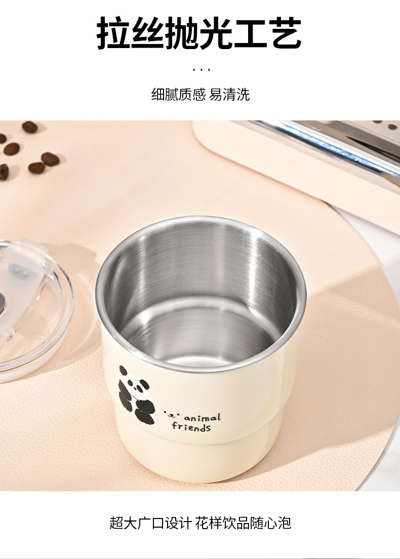304不锈钢咖啡杯家用杯子上班族奶茶杯带盖吸管杯可爱卡通饮料杯