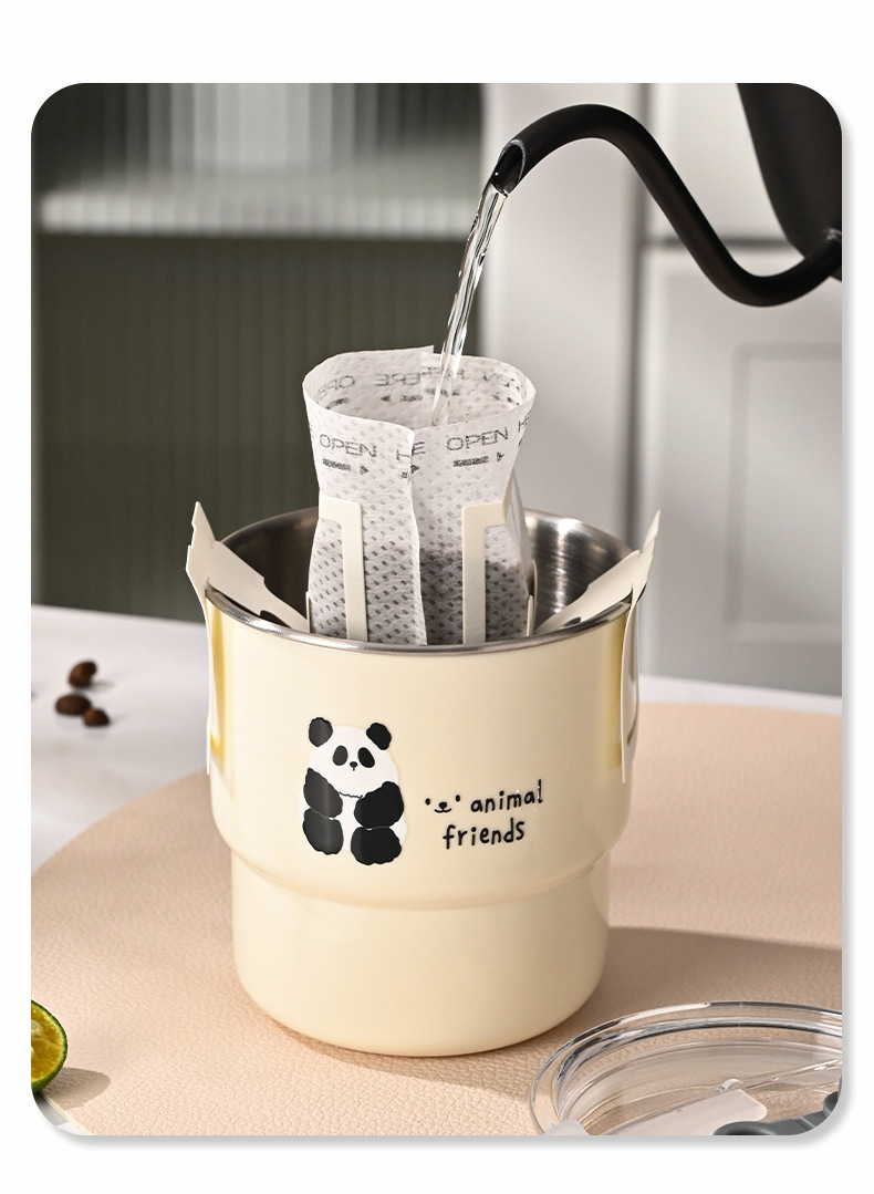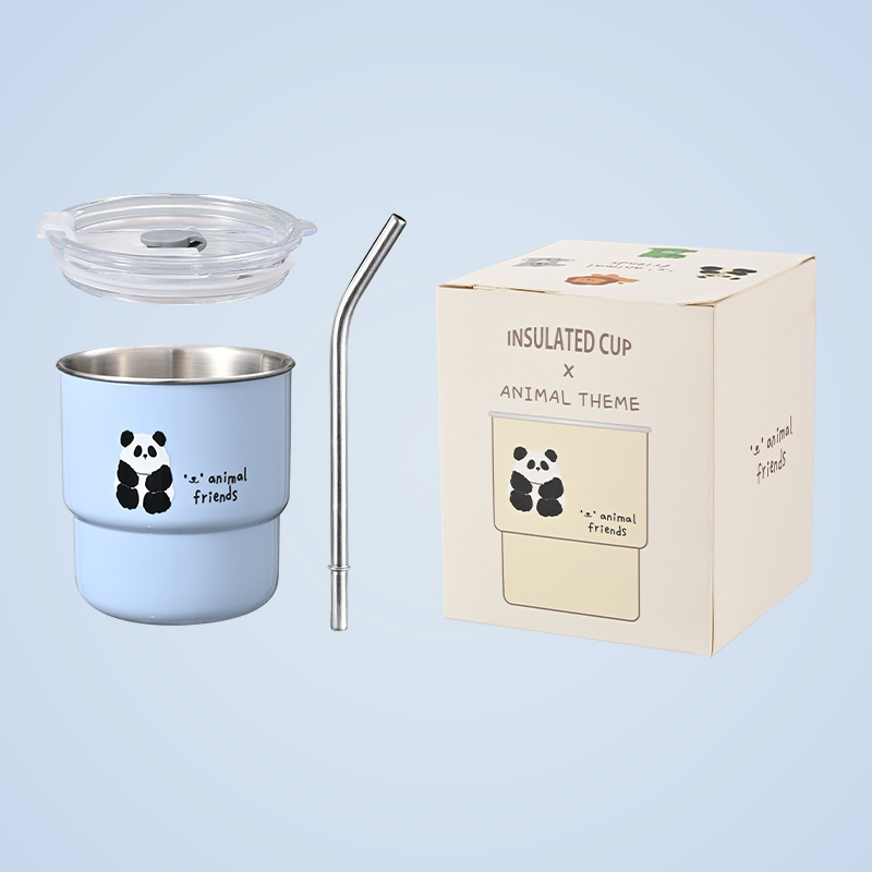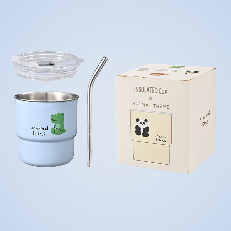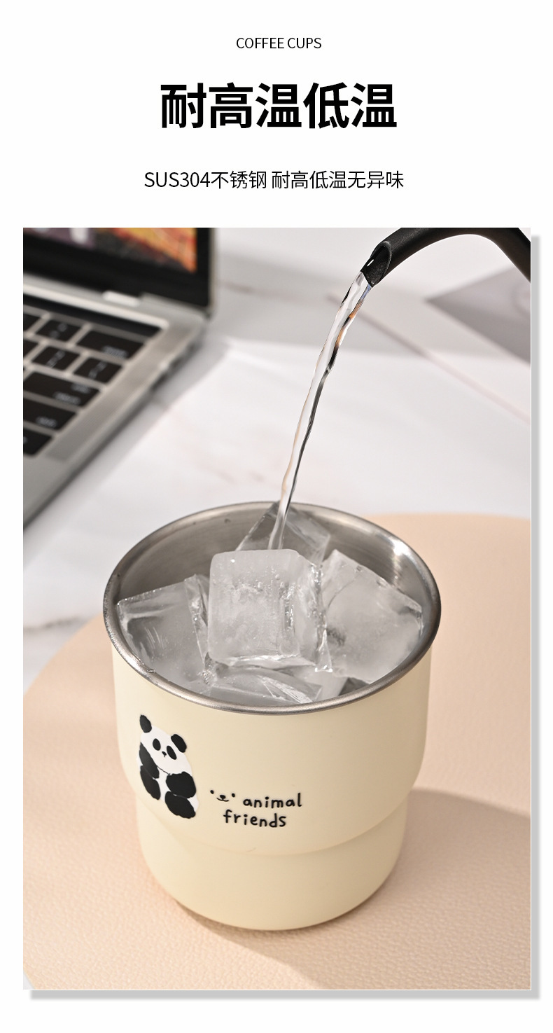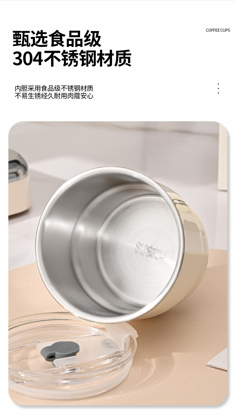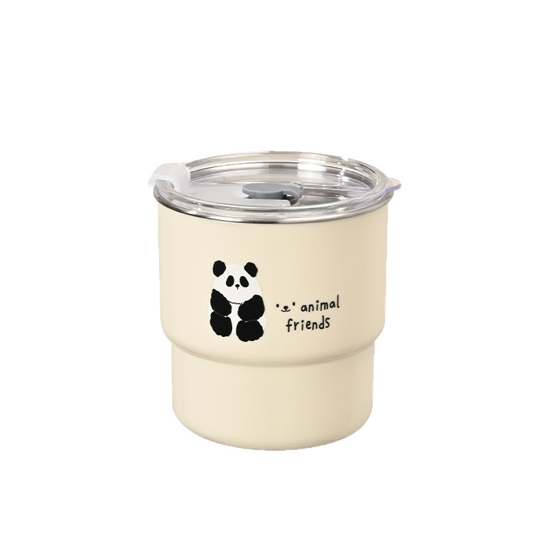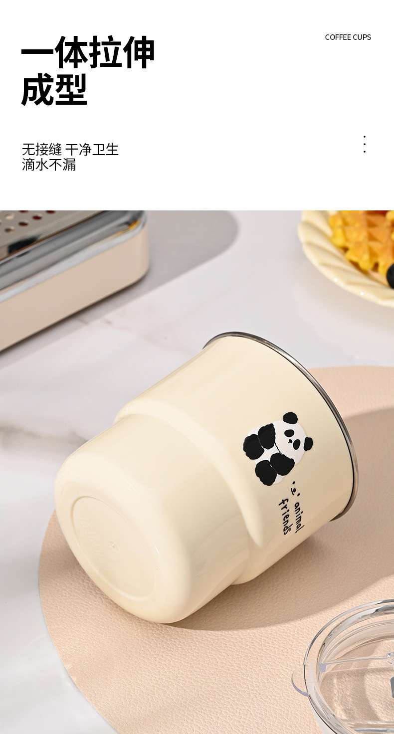 304不锈钢咖啡杯家用杯子上班族奶茶杯带盖吸管杯可爱卡通饮料杯