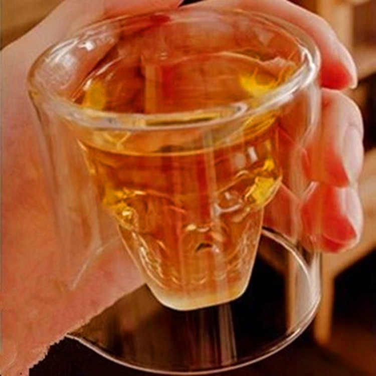 厂家骷髅头骨造型透明玻璃啤酒杯家用高硼硅玻璃果汁饮料杯威士忌