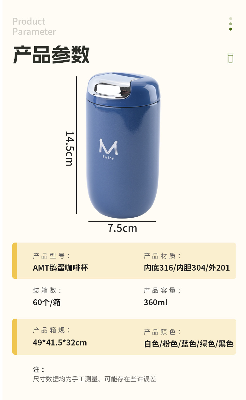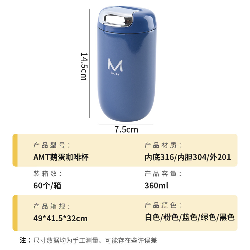 新品家用复古鹅蛋咖啡保温杯316不锈钢长效保温网红情侣保温水杯