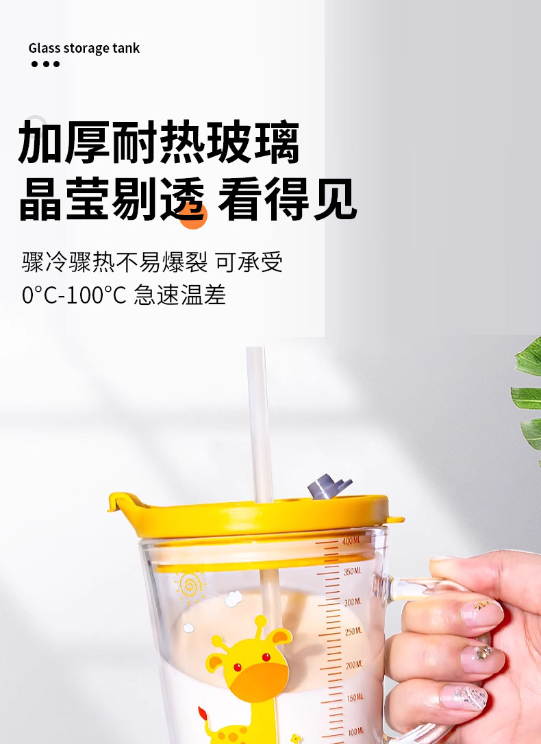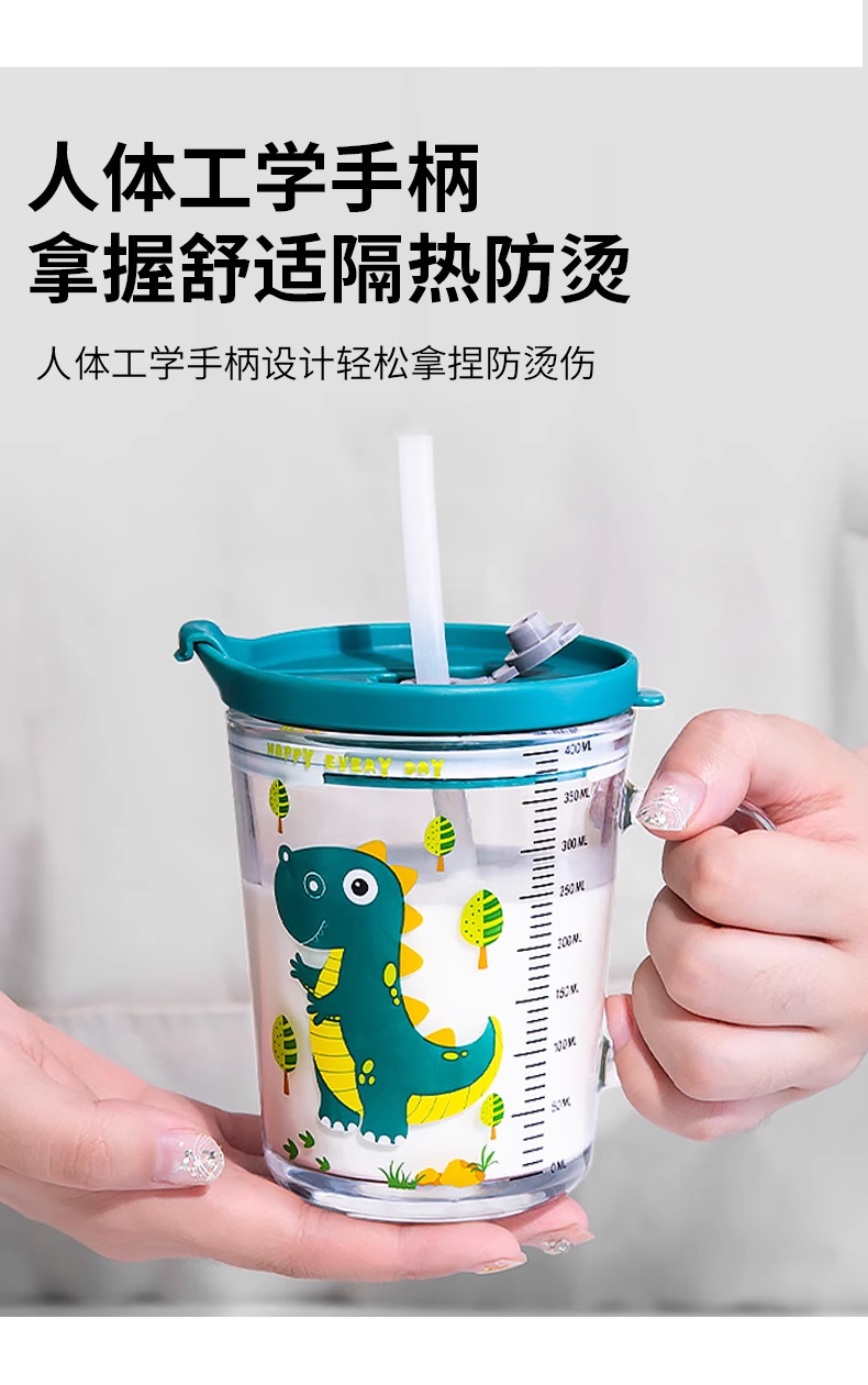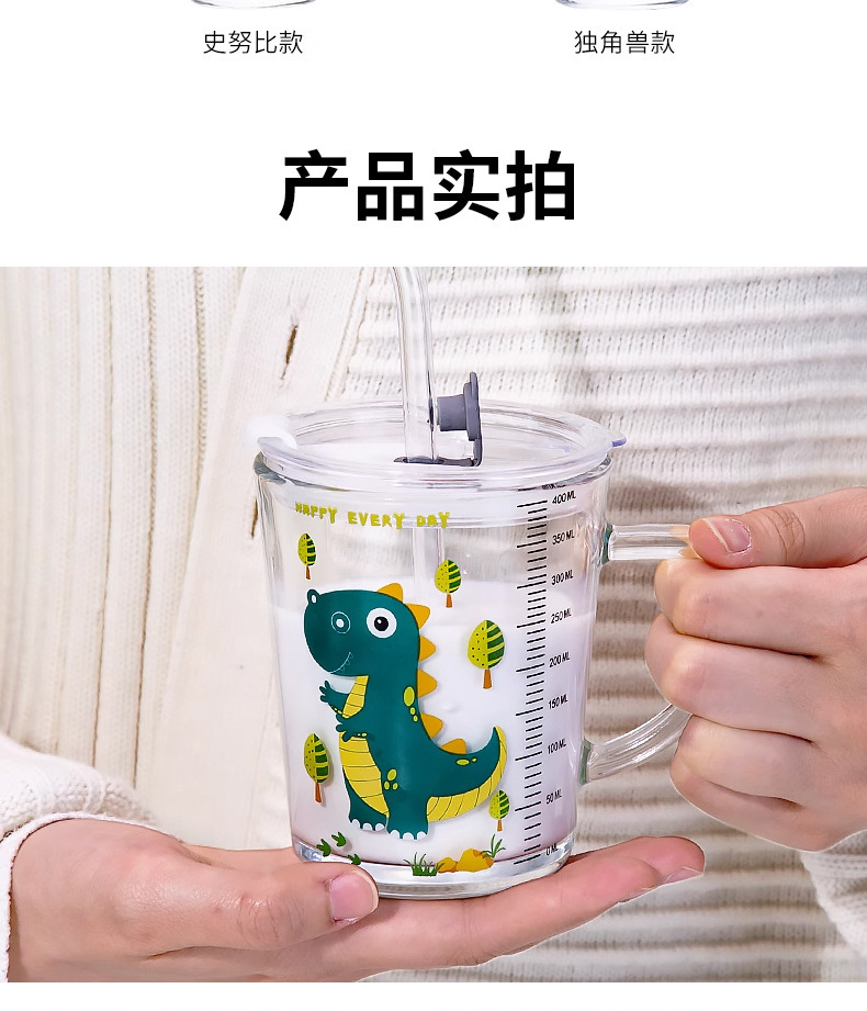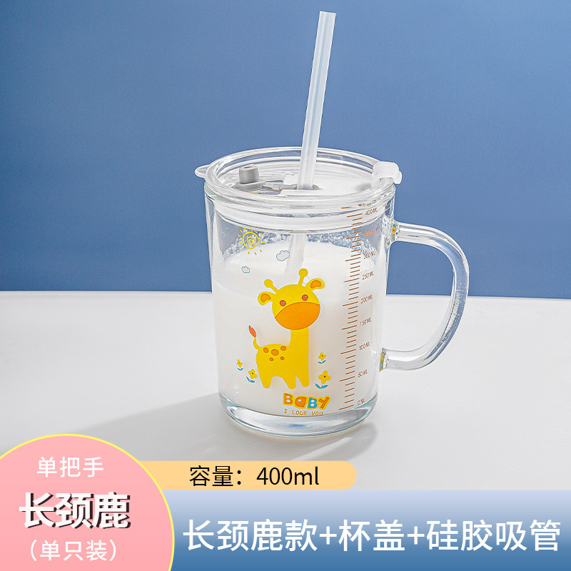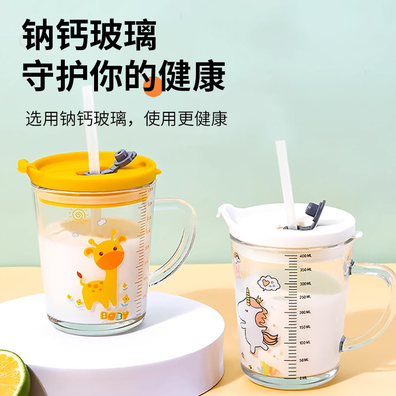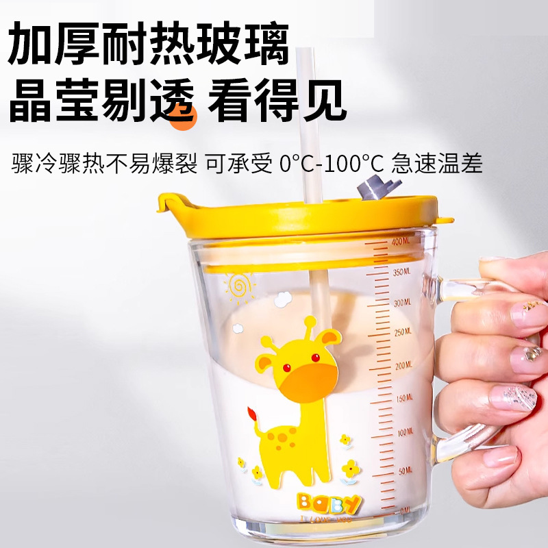 批发创意把手杯早餐奶粉玻璃杯加厚玻璃儿童牛奶杯带盖刻度吸管杯