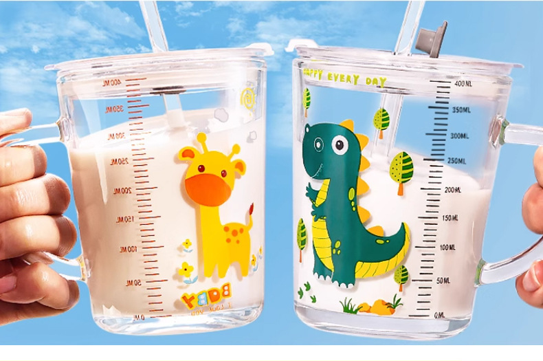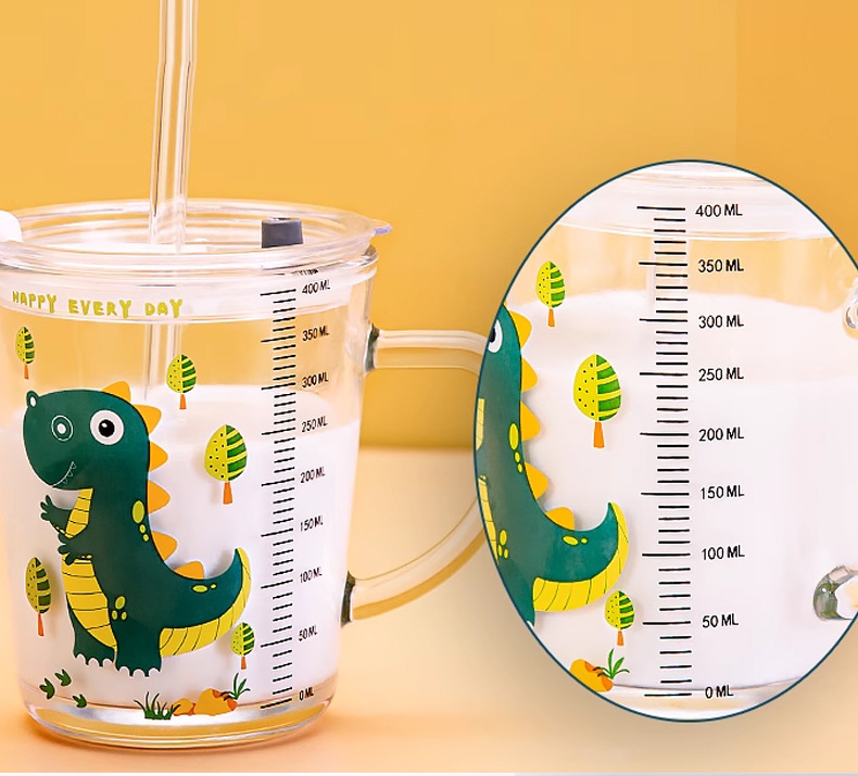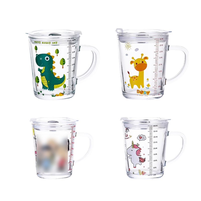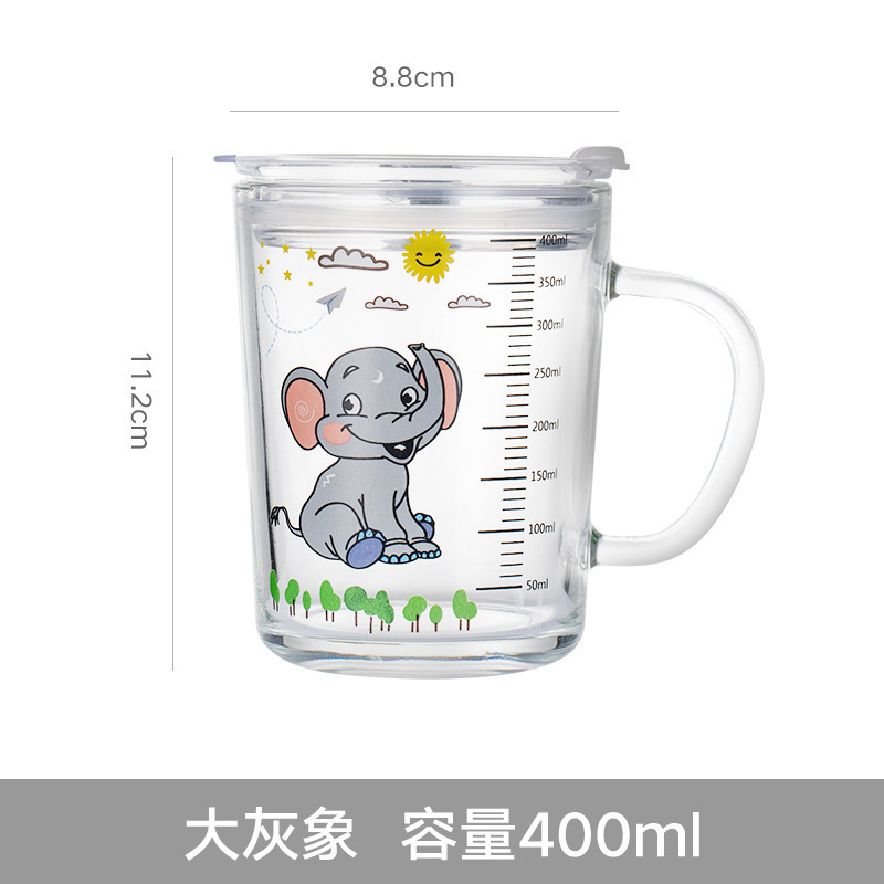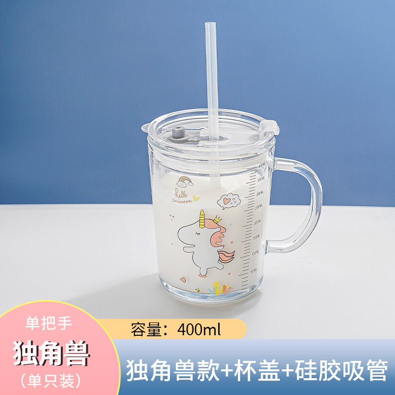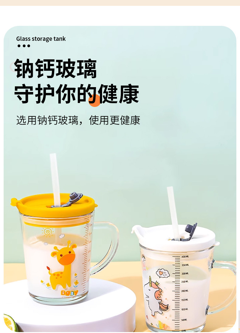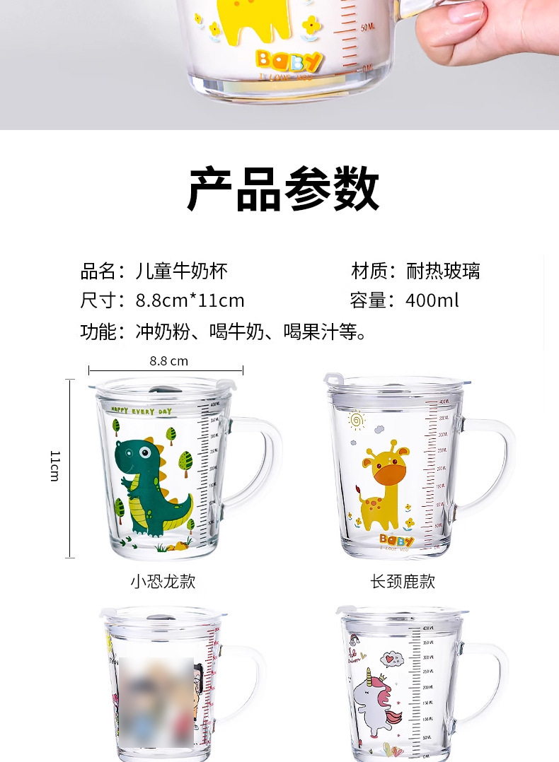批发创意把手杯早餐奶粉玻璃杯加厚玻璃儿童牛奶杯带盖刻度吸管杯