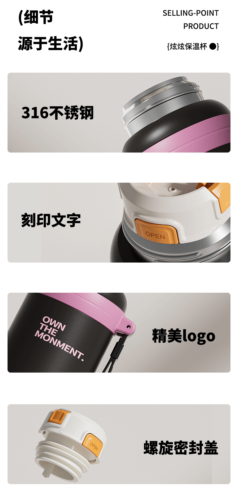 316不锈钢保温杯女生大容量保温壶高颜值泡茶碗盖杯现货定制批发