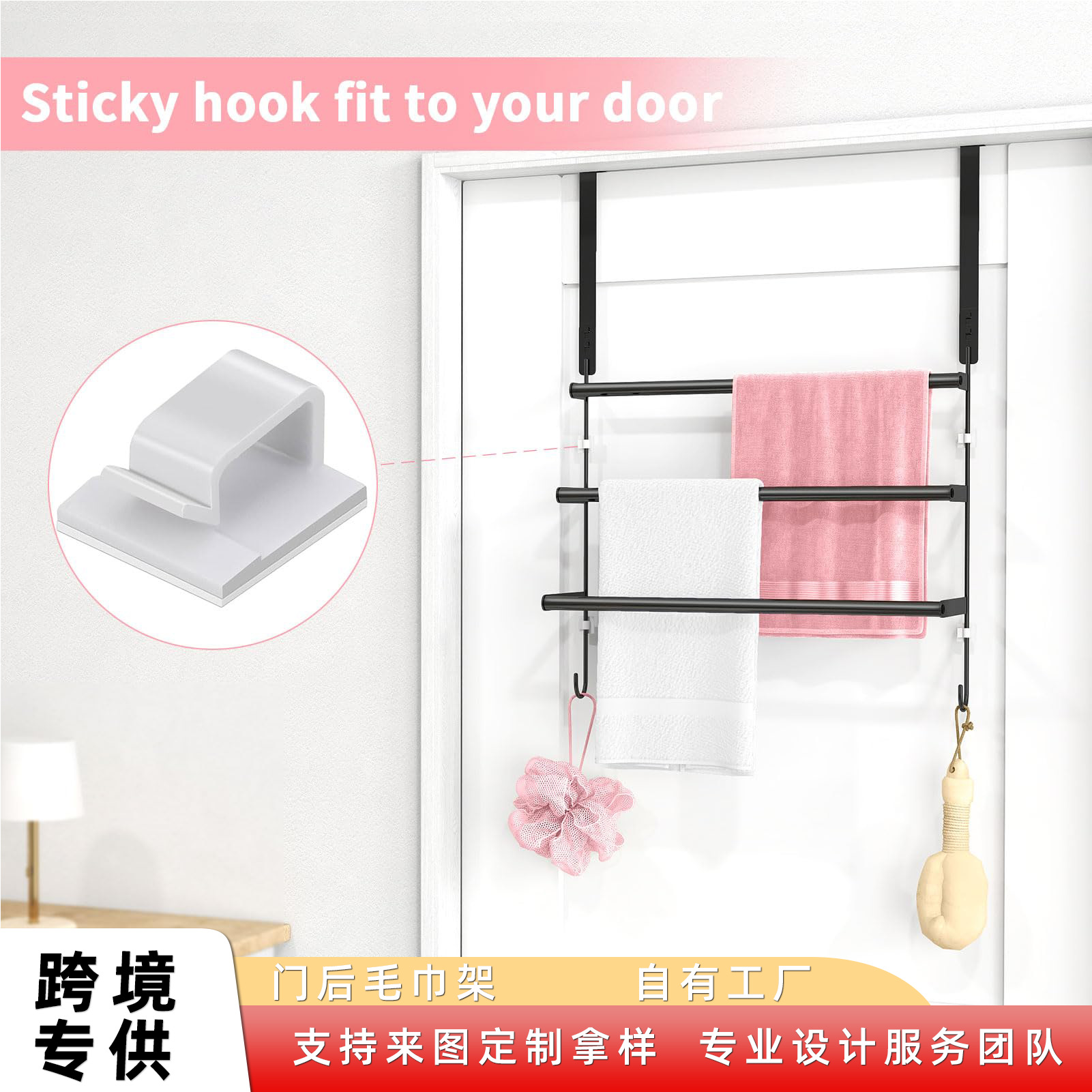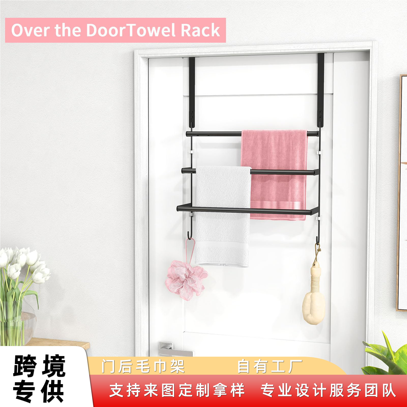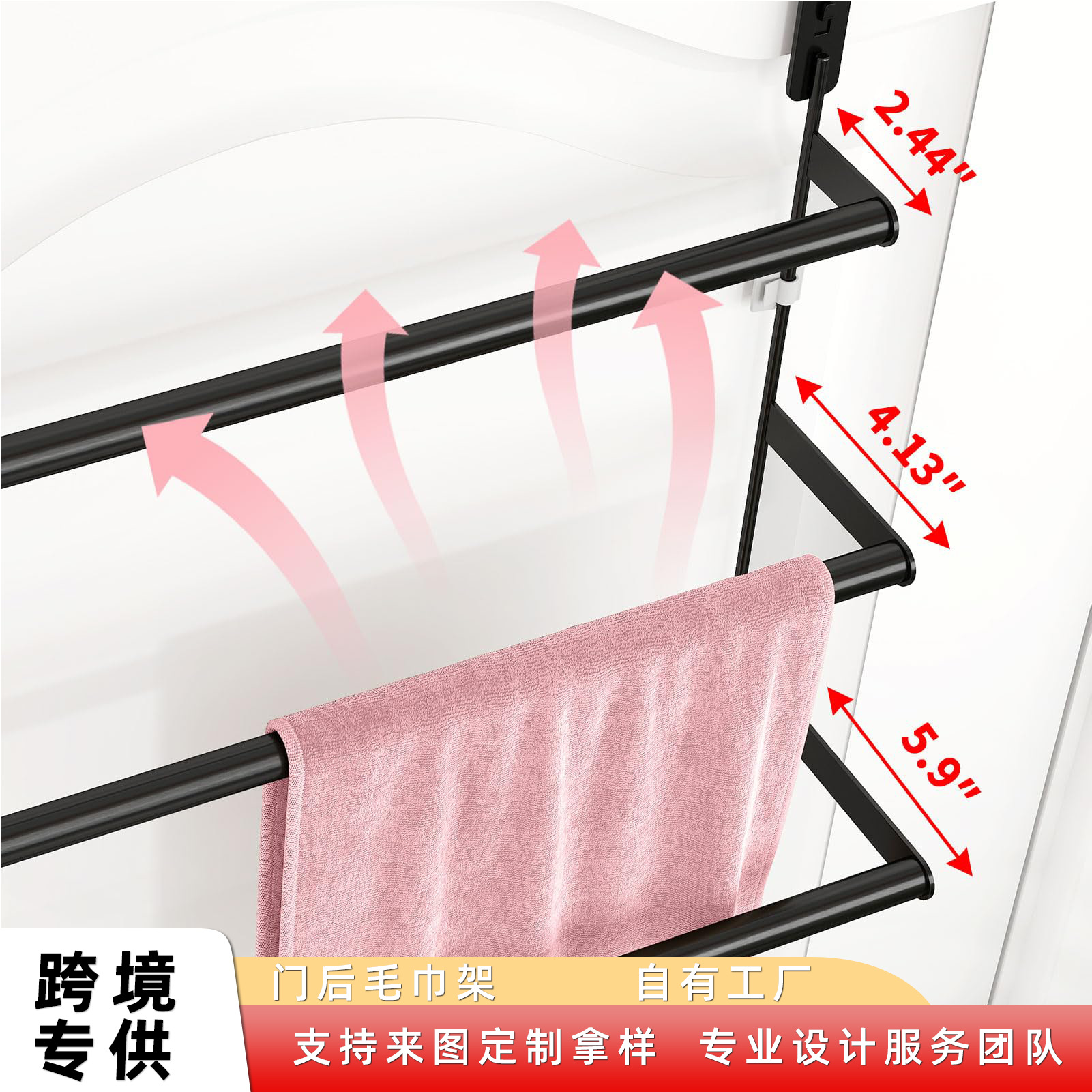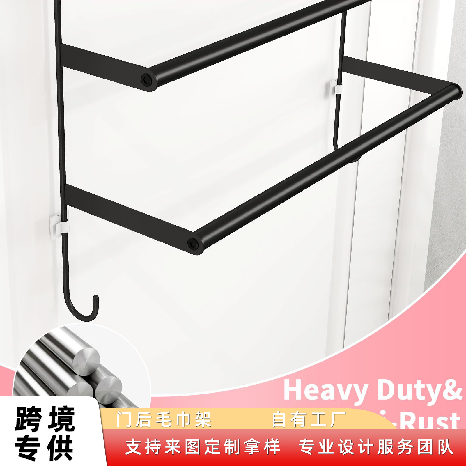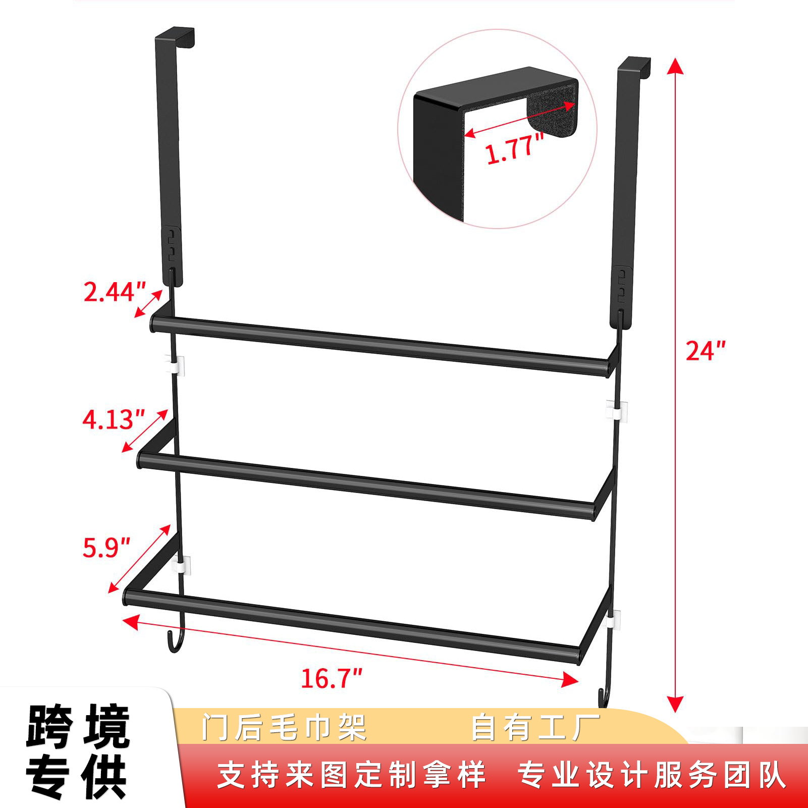 跨境外毛巾架24英寸带挂门挂钩的毛巾架门毛巾杆浴室门外毛巾架