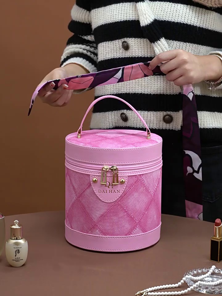 新品美拉德色水桶包化妆箱大容量伴手礼化妆包多功能防水手提批发