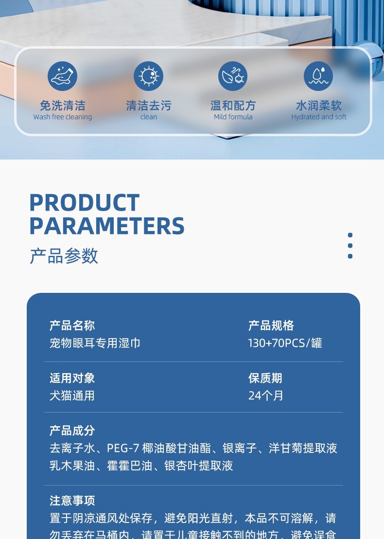 宠物清洁用品猫狗免洗手套湿巾棉签狗狗除臭剂猫咪洁耳液厂家批发