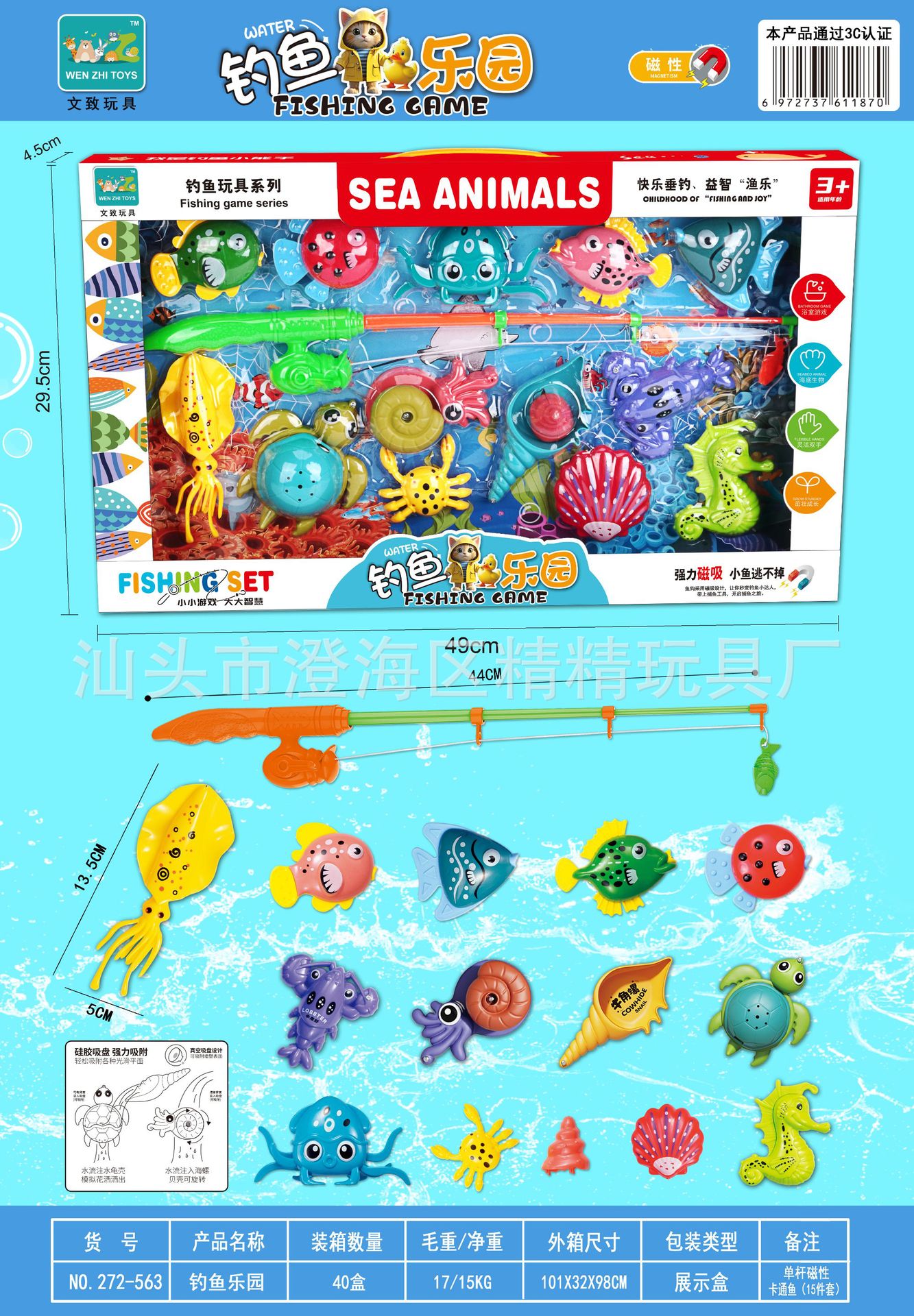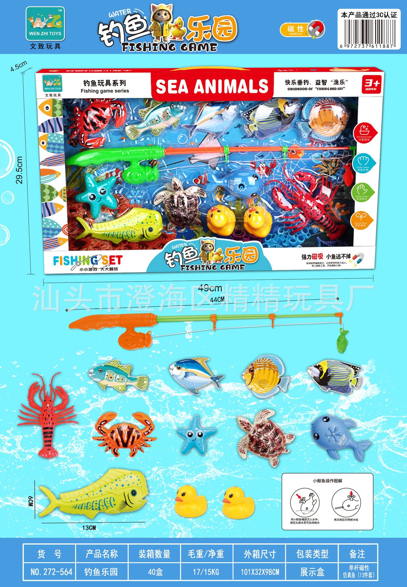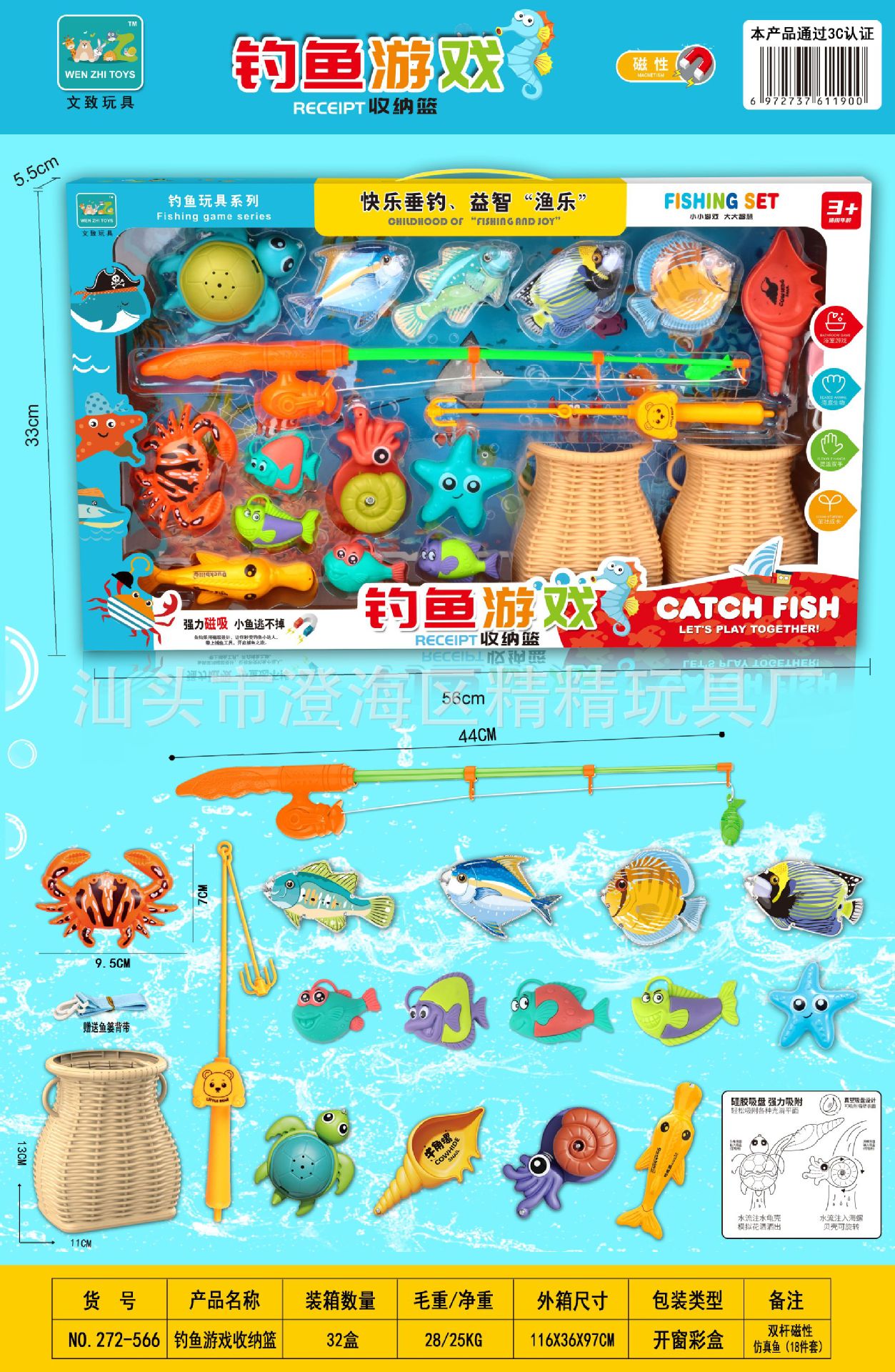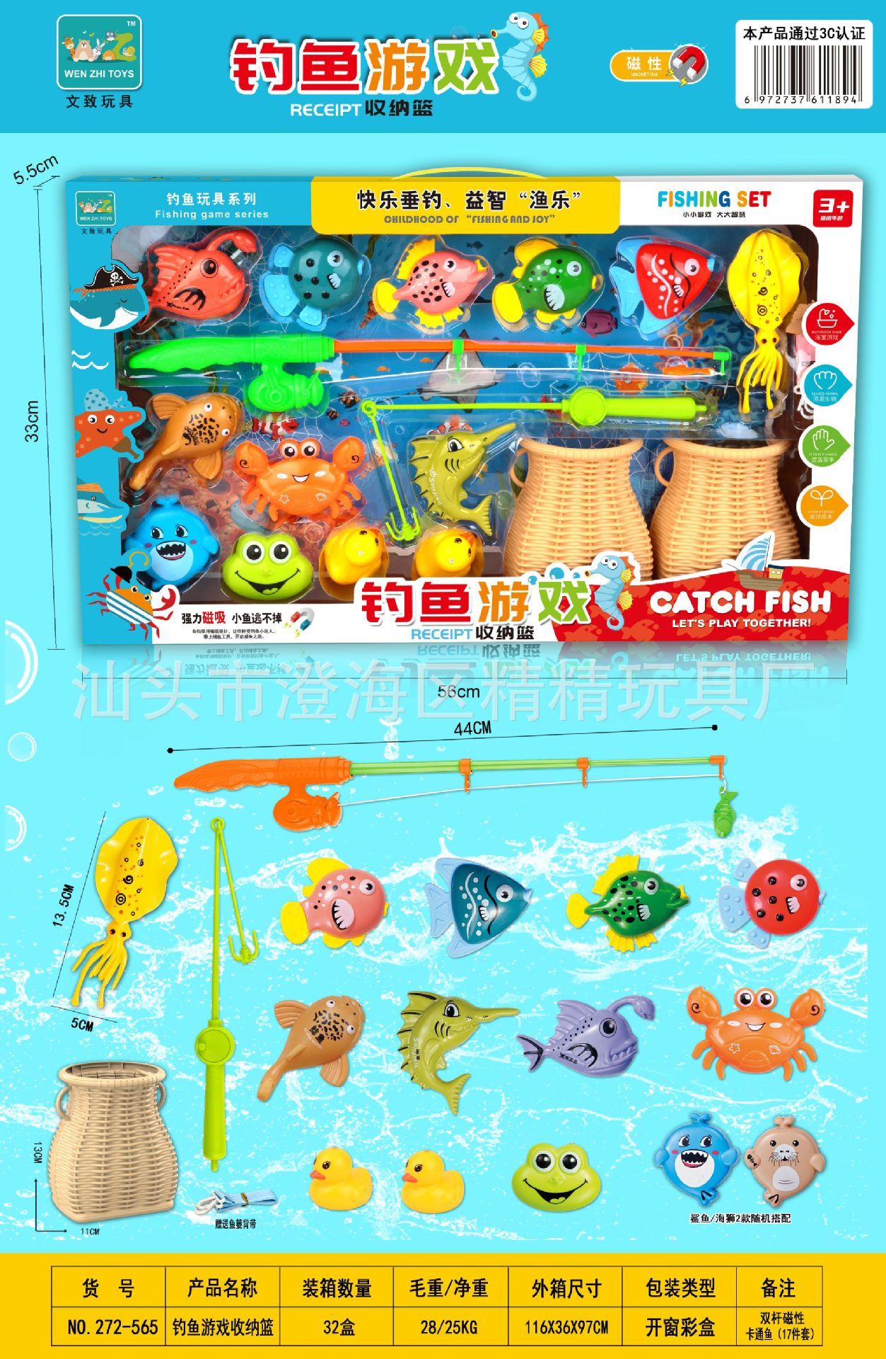 钓鱼玩具儿童水池捞鱼磁性钓鱼竿捕鱼过家家男孩女孩玩具机构礼品