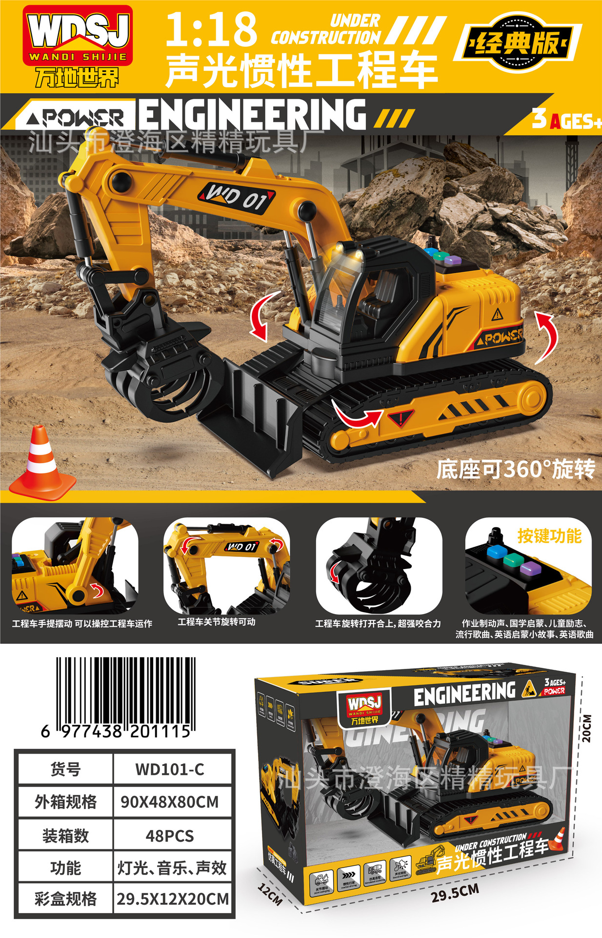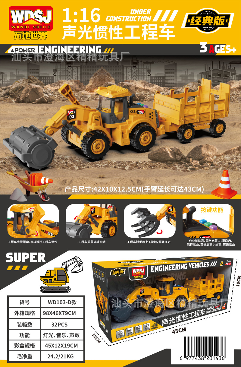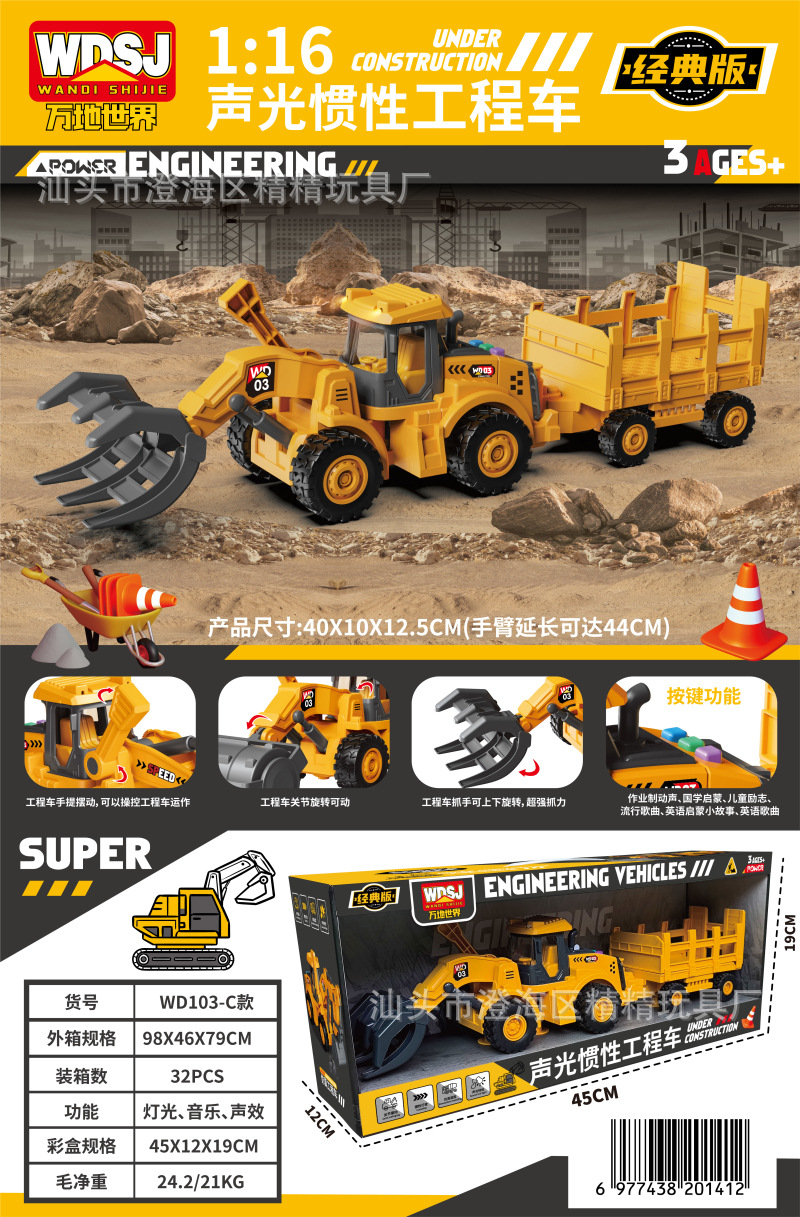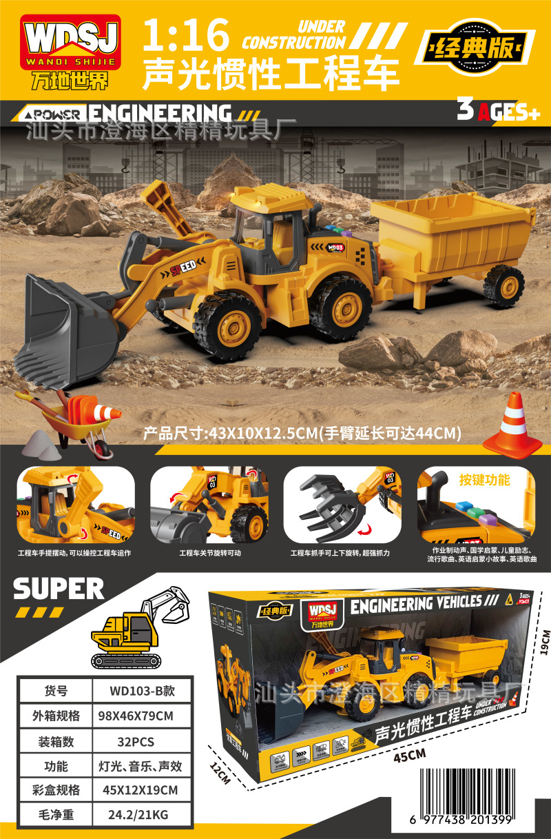 男孩玩具大号惯性挖掘机推土工程车套装带声光机构续费礼品批发