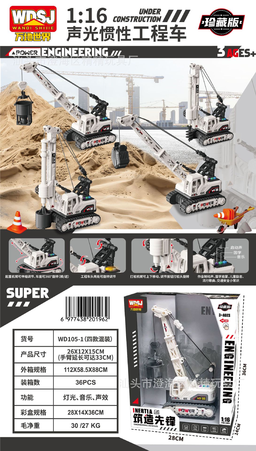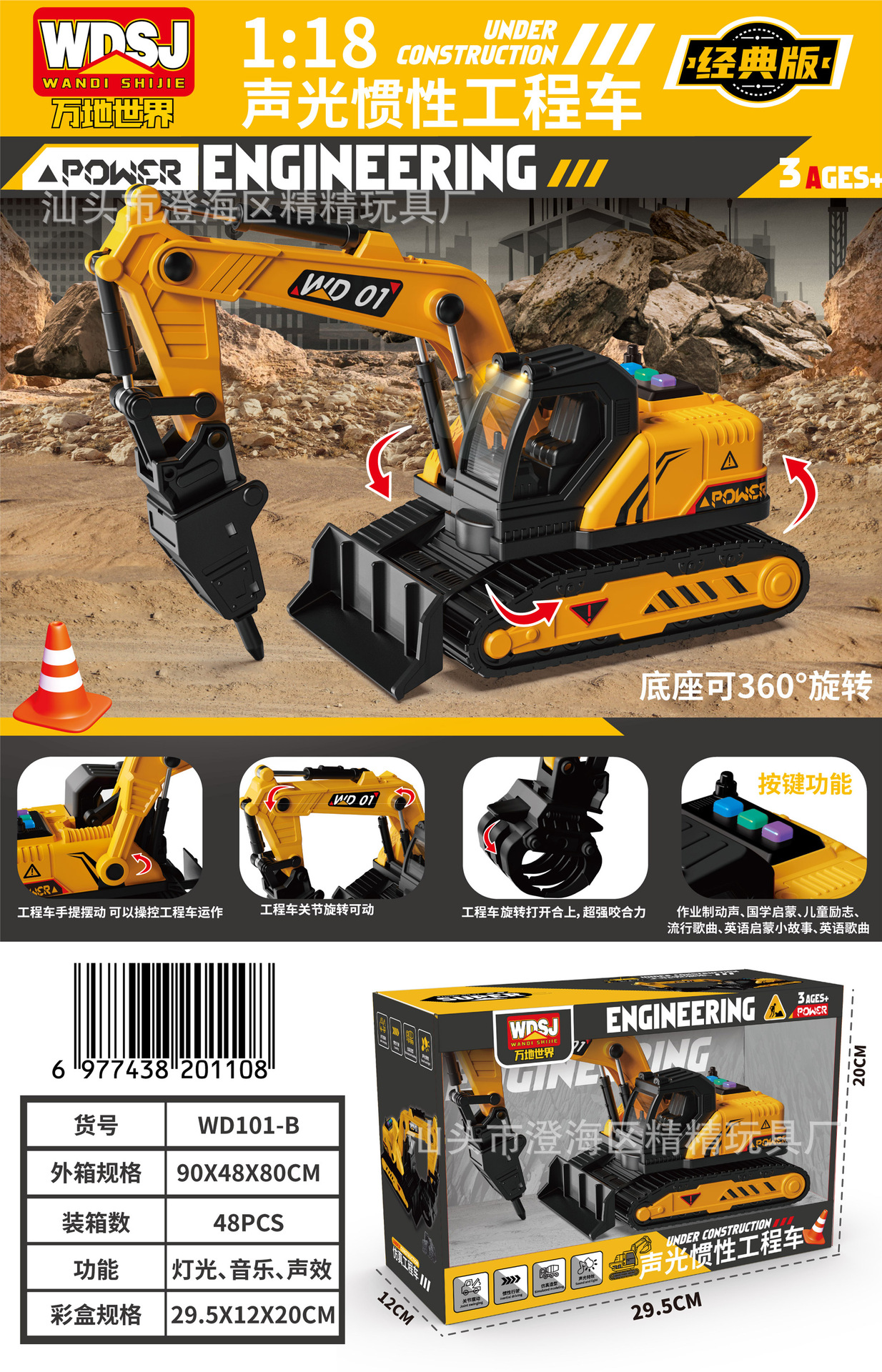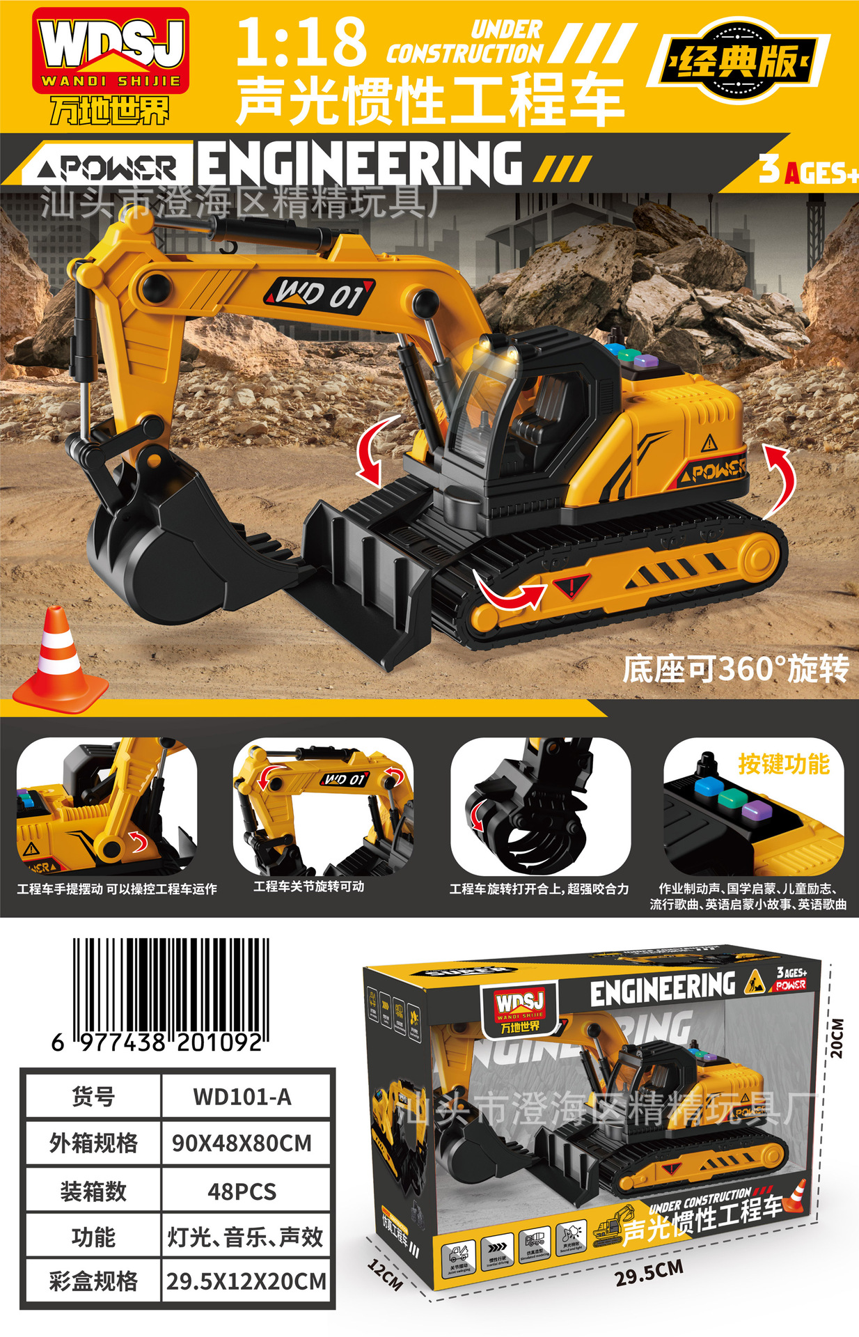 男孩玩具大号惯性挖掘机推土工程车套装带声光机构续费礼品批发