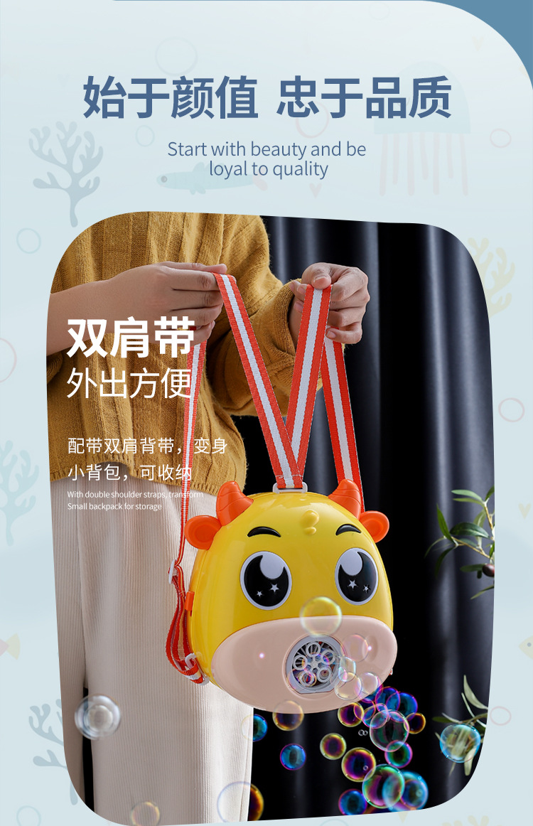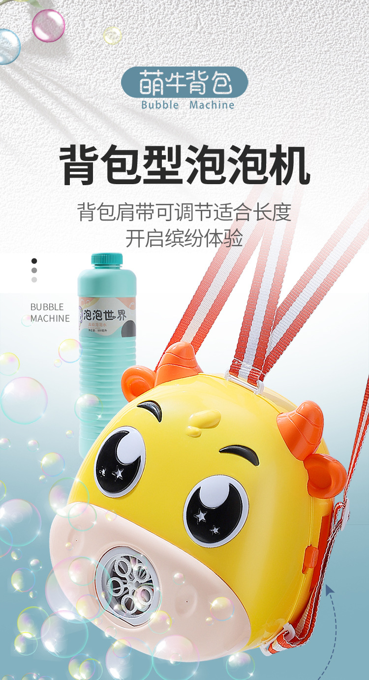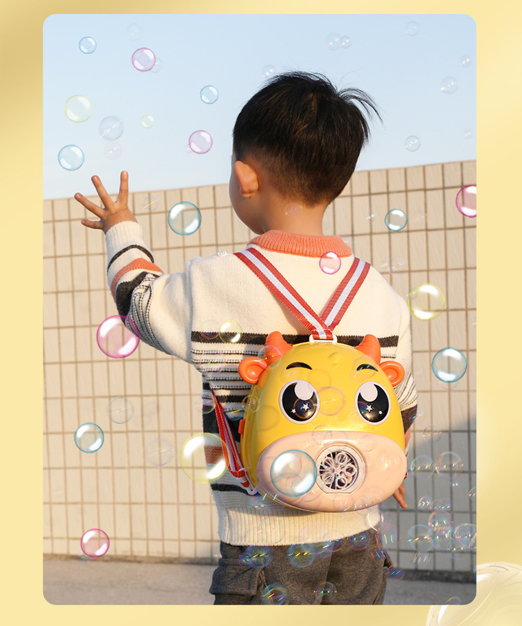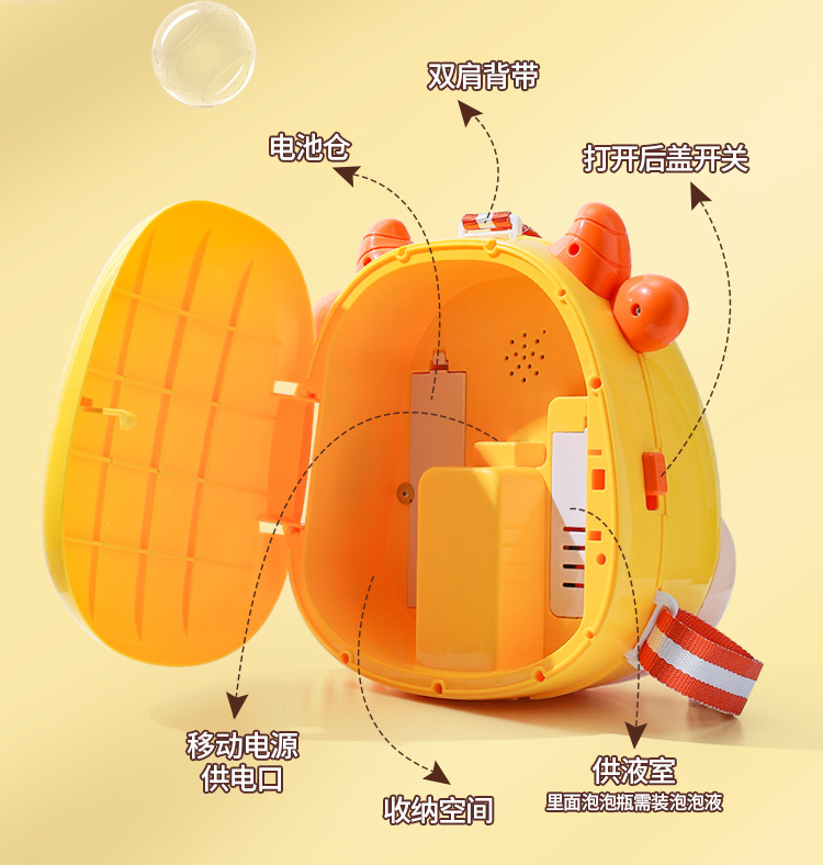 儿童卡通背包全自动泡泡机充电版带灯光音乐收纳泡泡玩具机构批发