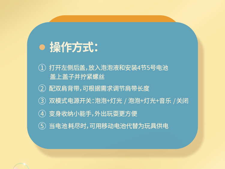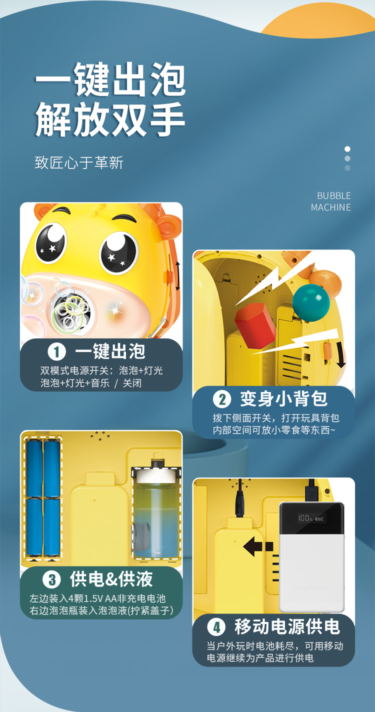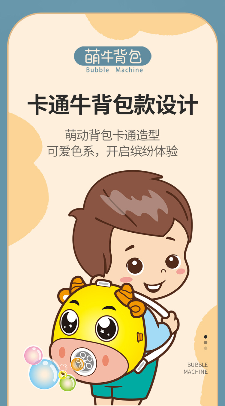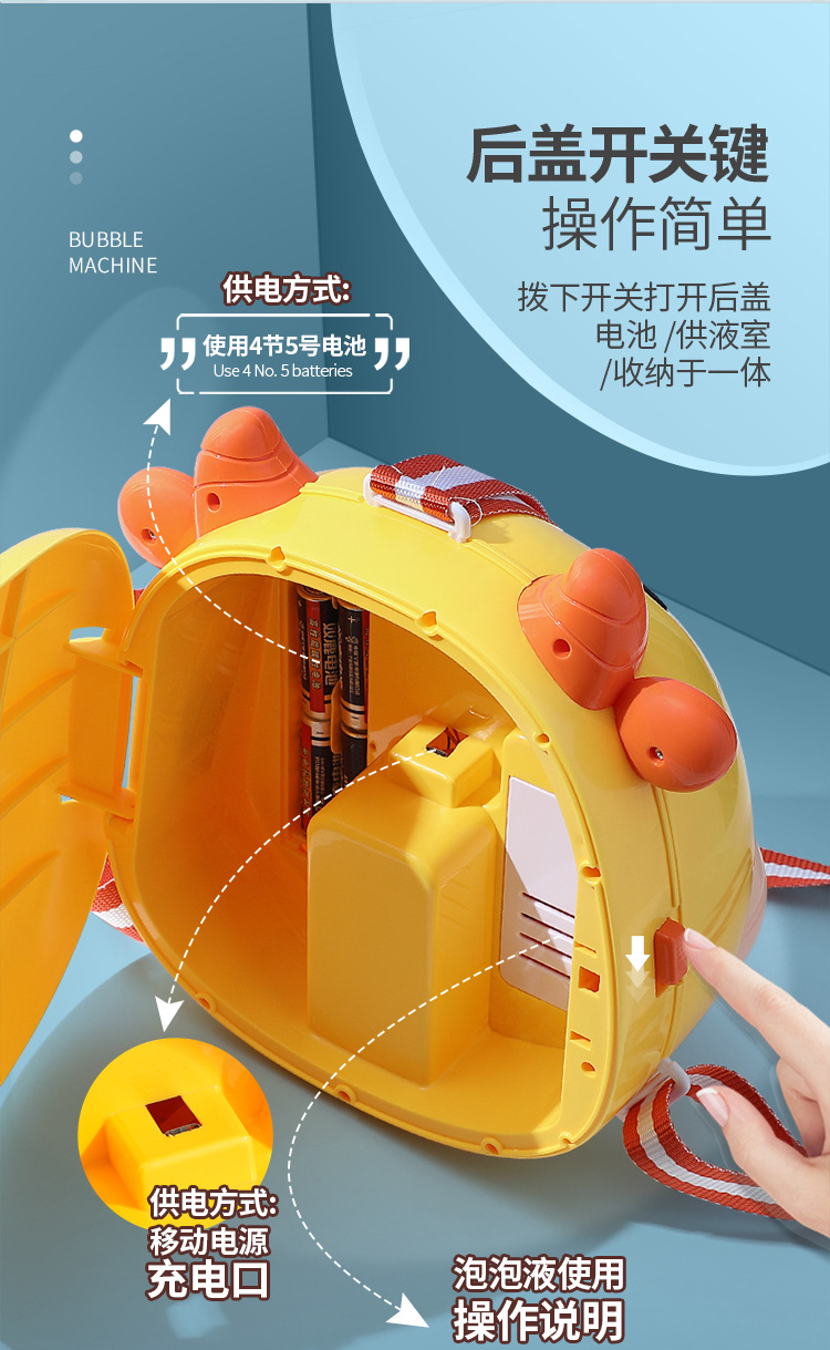 儿童卡通背包全自动泡泡机充电版带灯光音乐收纳泡泡玩具机构批发