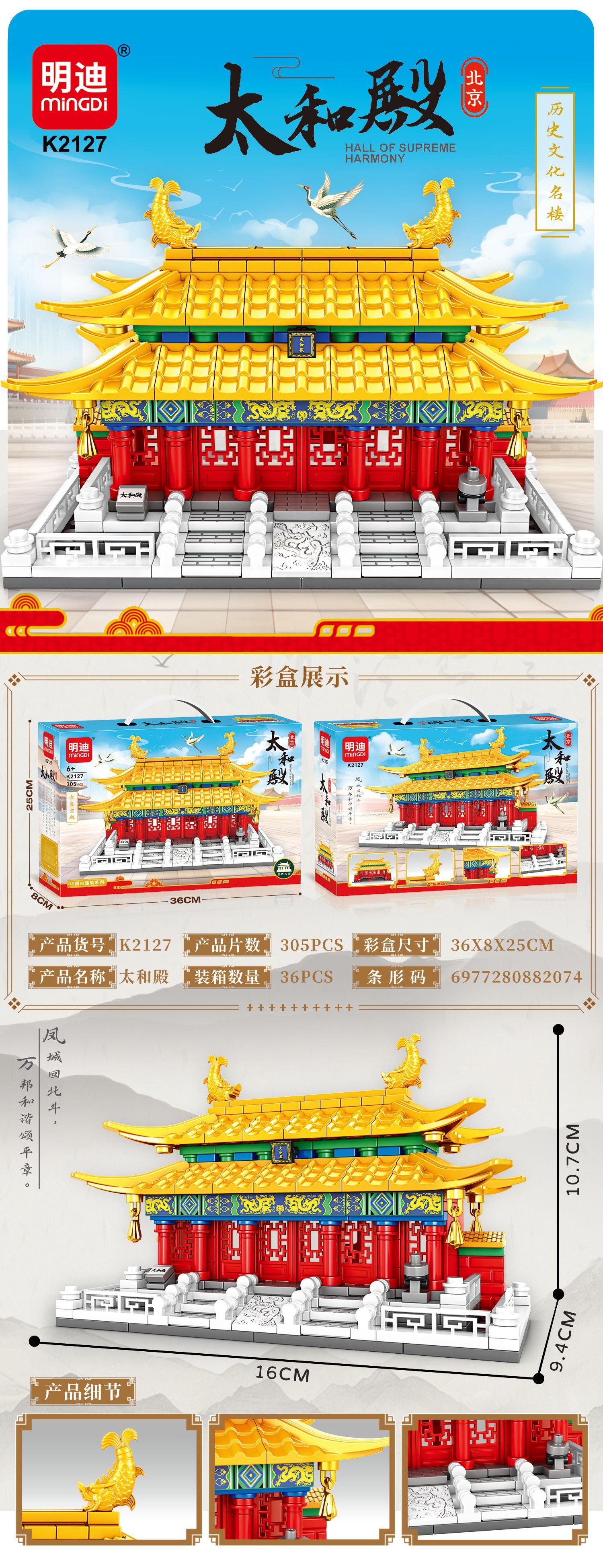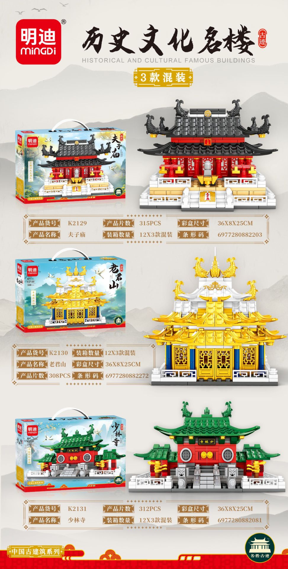 儿童玩具国潮建筑积木兼容乐高益智积木玩具摆件机构积分兑换礼品
