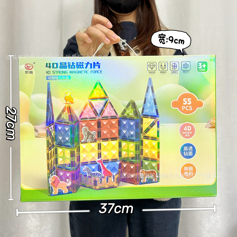 儿童玩具彩窗磁力片积木磁性城堡场景拼装超市电玩城机构礼品货源