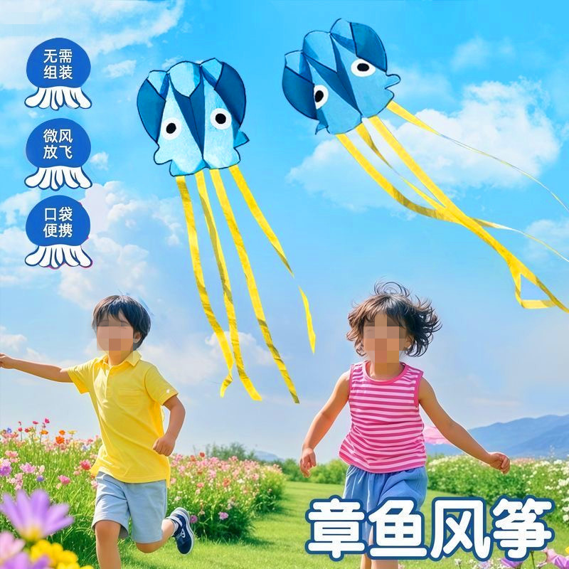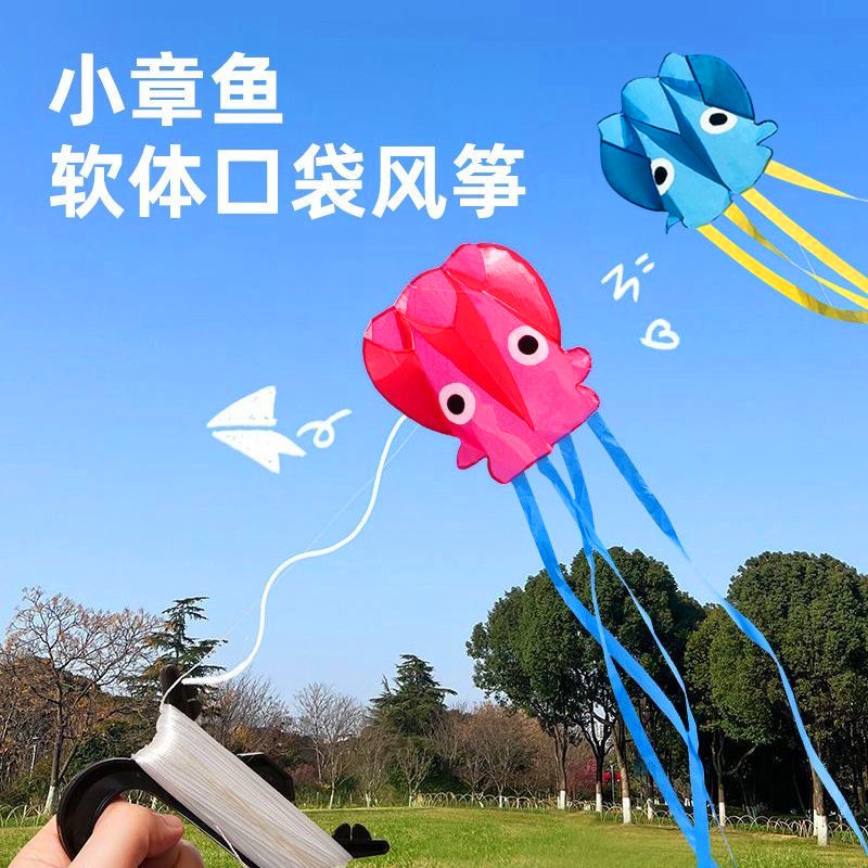 新款童年儿童小章鱼风筝外贸跨境软体卡通口袋章鱼风筝八爪鱼风筝