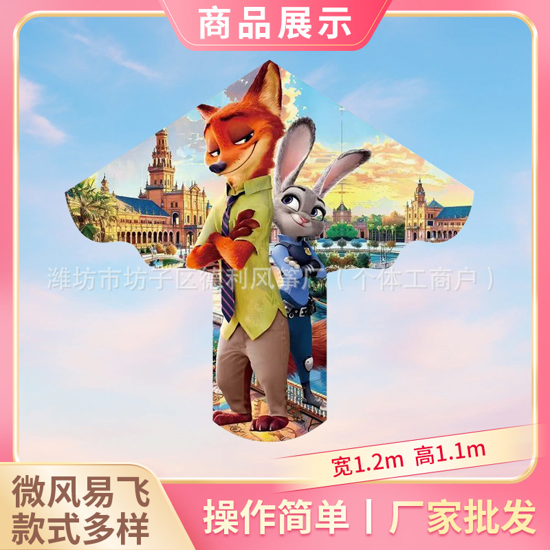 新款疯狂动物城风筝朱迪尼克批发儿童风筝带线微风易飞公园摆摊地