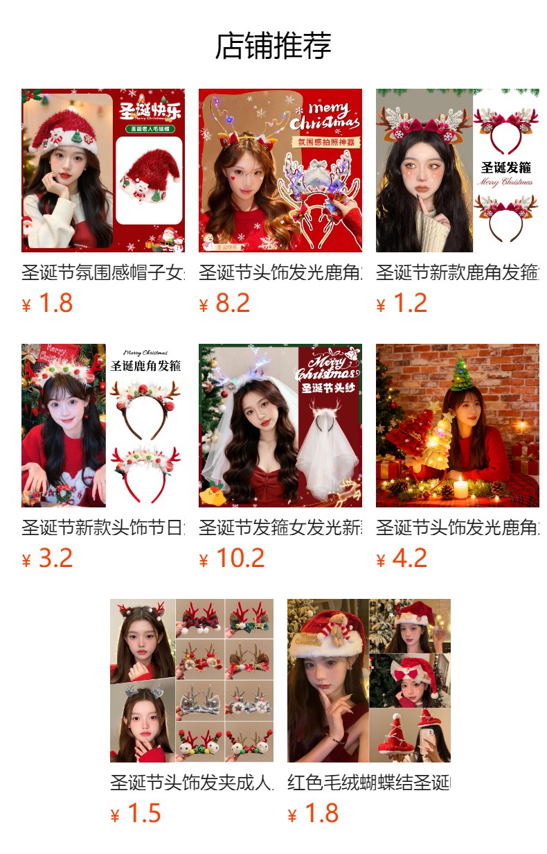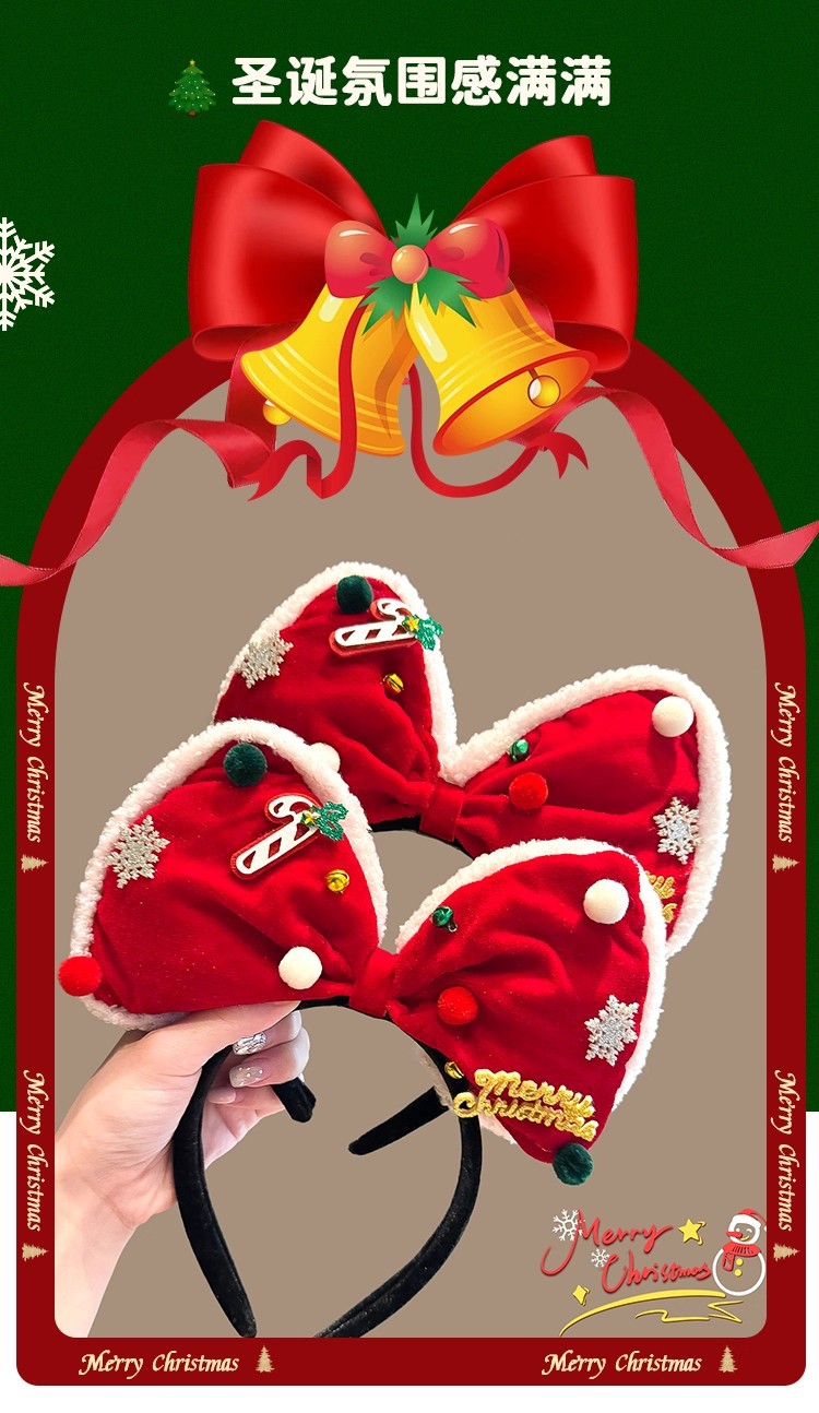 新款圣诞蝴蝶结发箍可爱头箍女成人发饰节日装扮头饰年会装饰表演