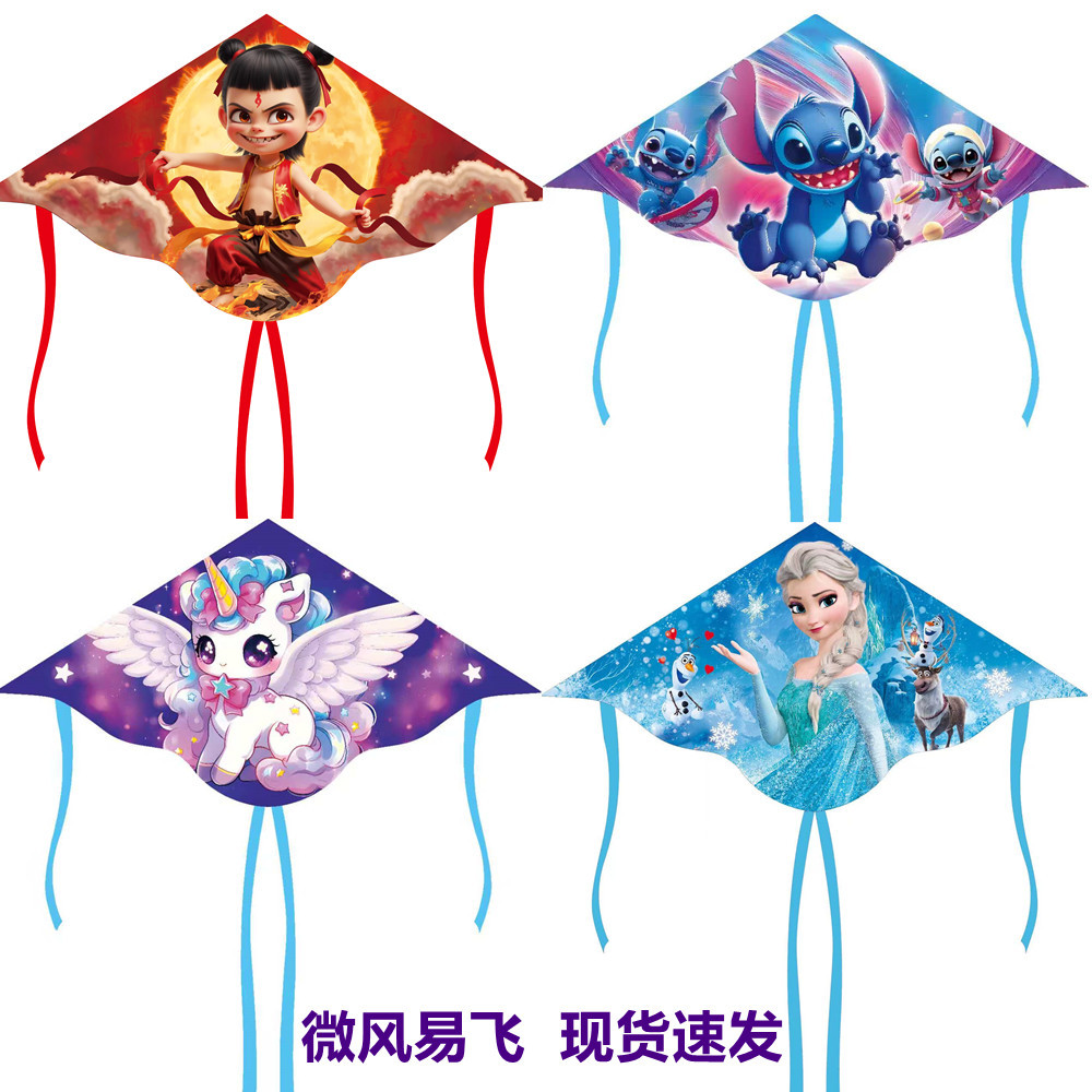 厂家现货风筝儿童款卡通三角批发地摊抖音潍坊1.2米风筝长尾风筝