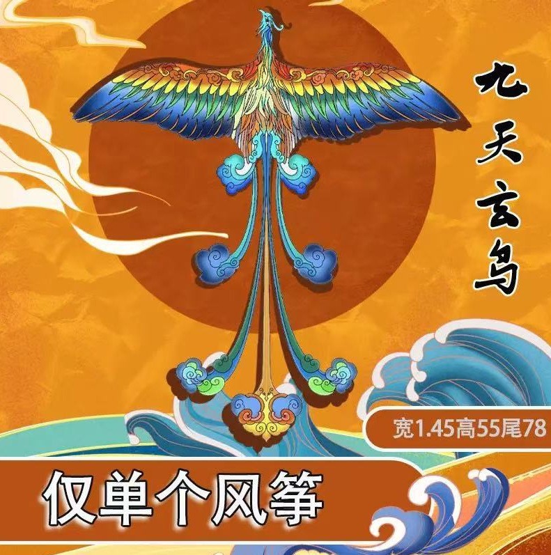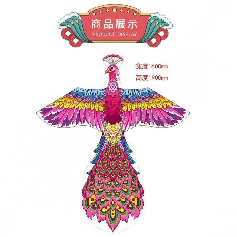 潍坊孔雀凤凰风筝批发国潮长尾风筝微风易飞带线摆摊玩具儿童成人