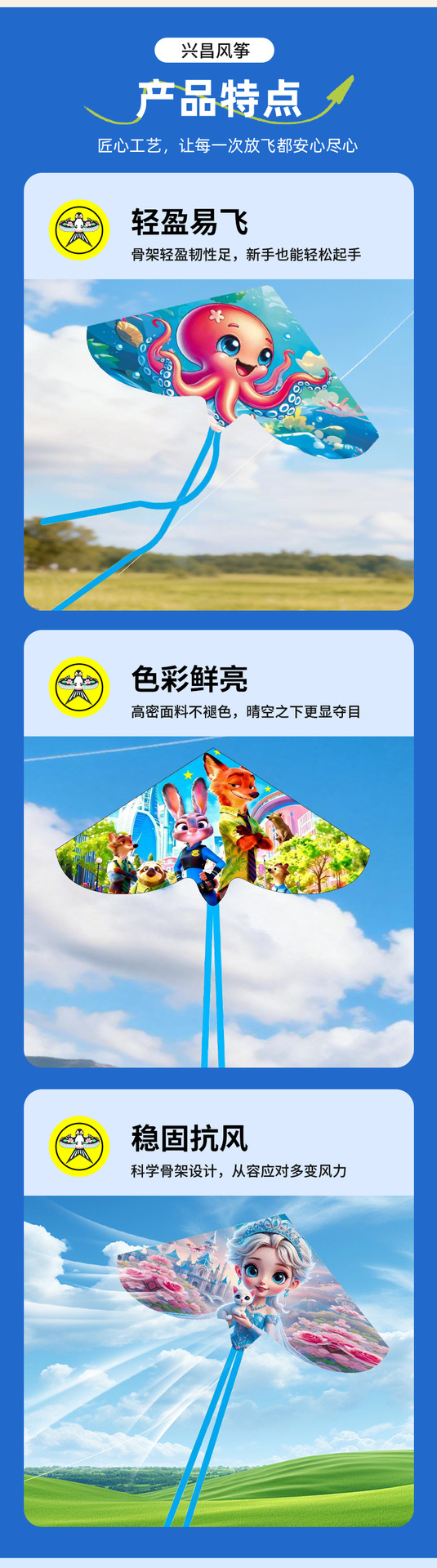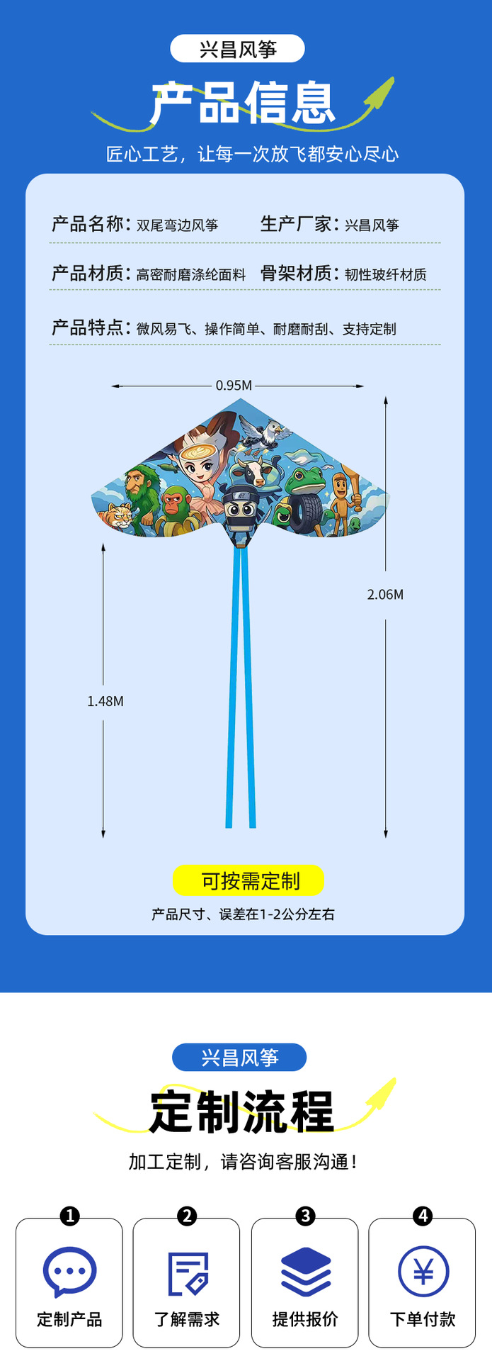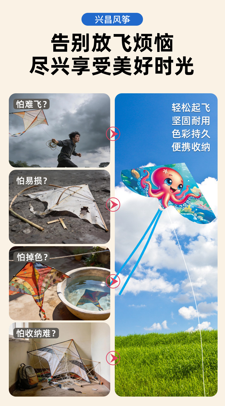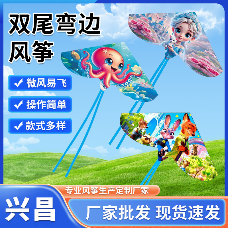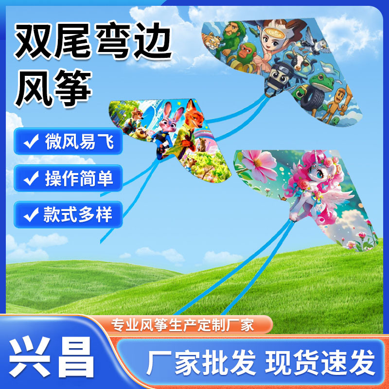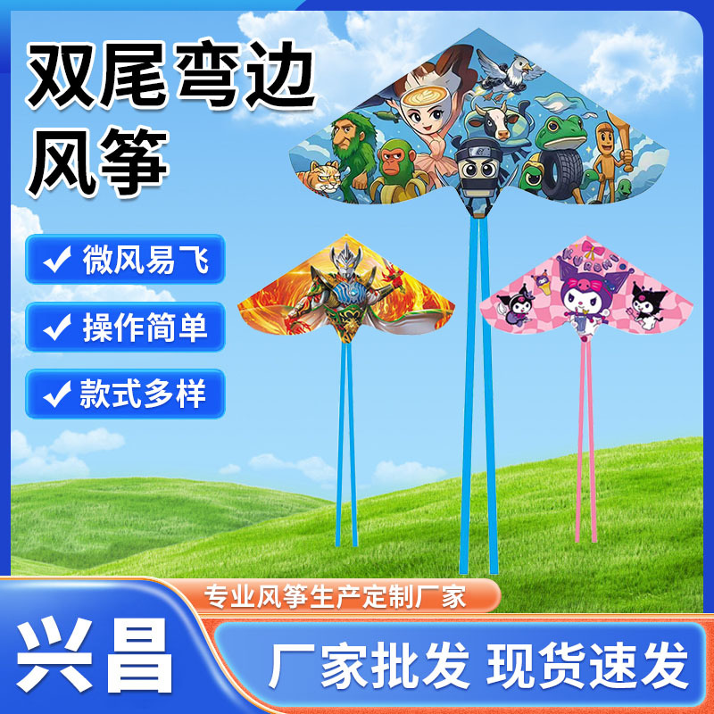 网红弯边双尾风筝儿童卡通风筝户外新款动漫风筝微风易飞潍坊风筝