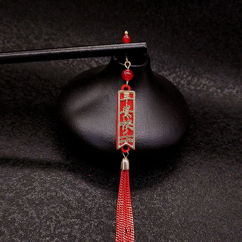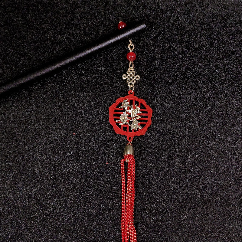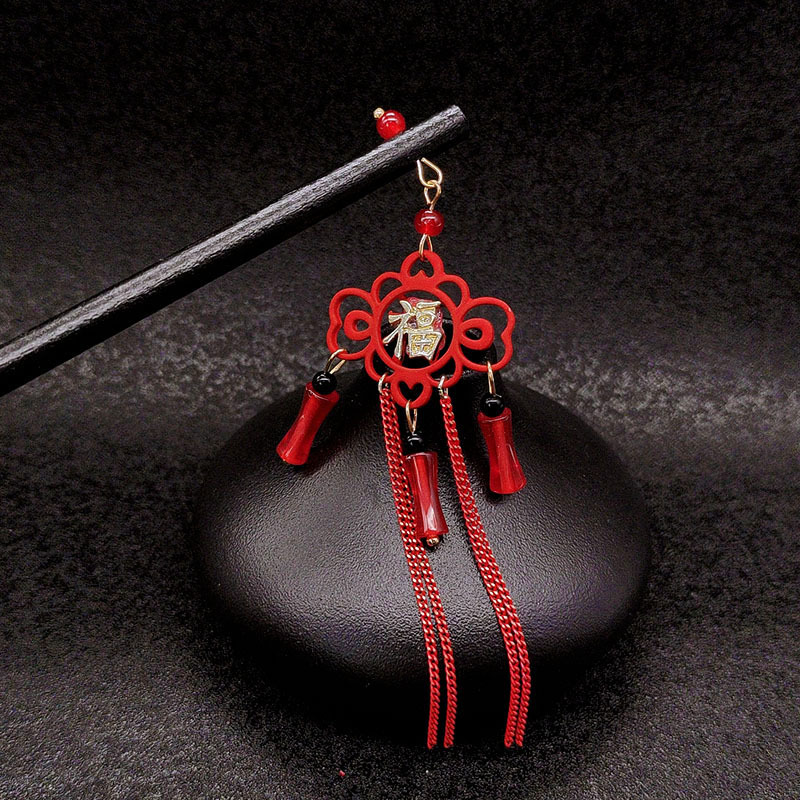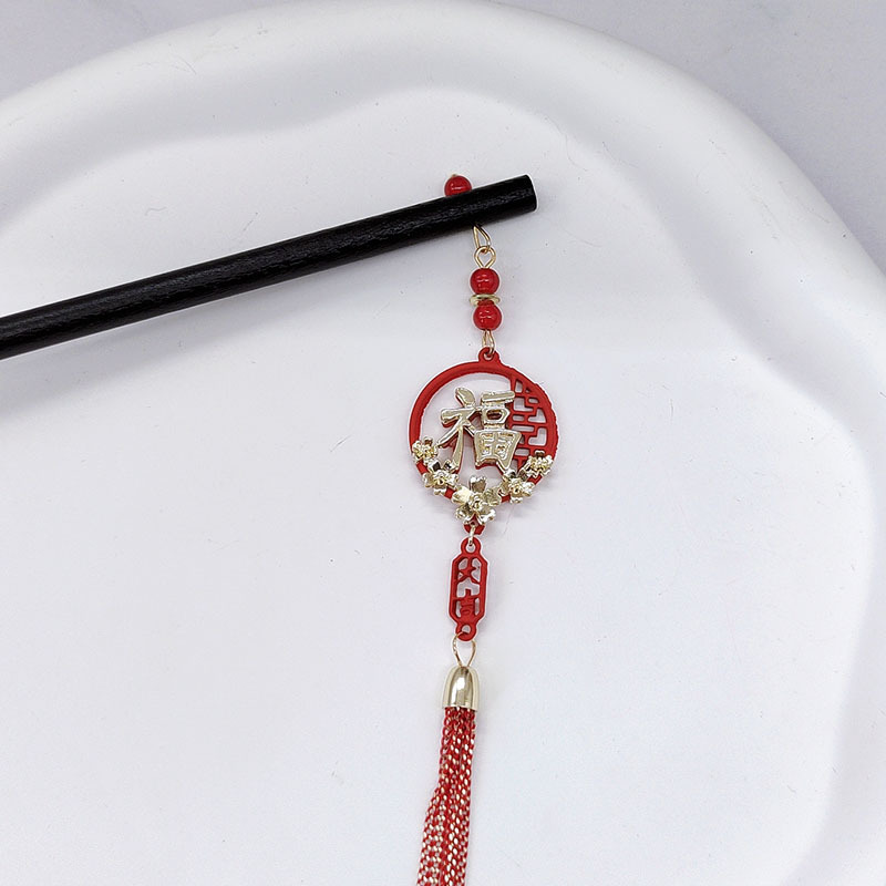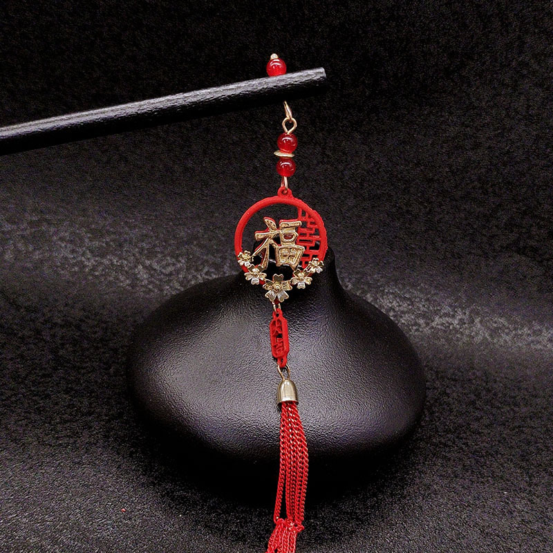 新中式红色流苏新年木质发簪高级感国风平安喜乐简约盘发发饰头饰