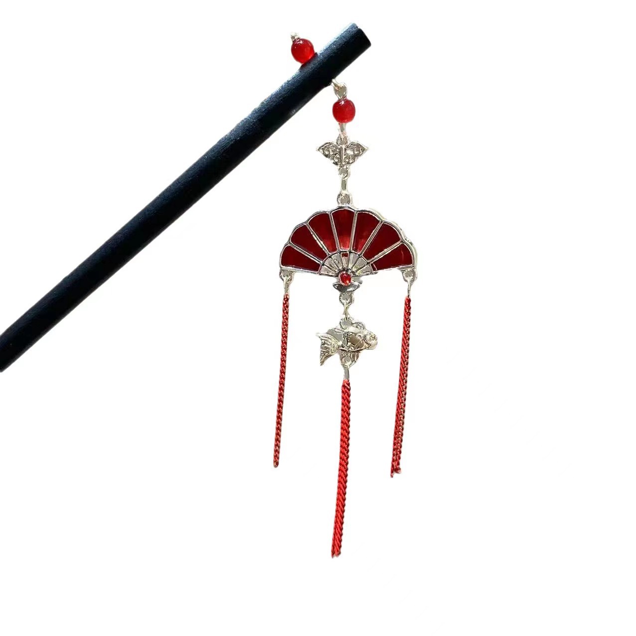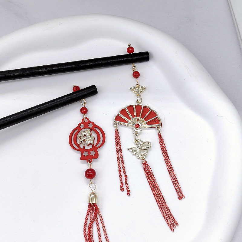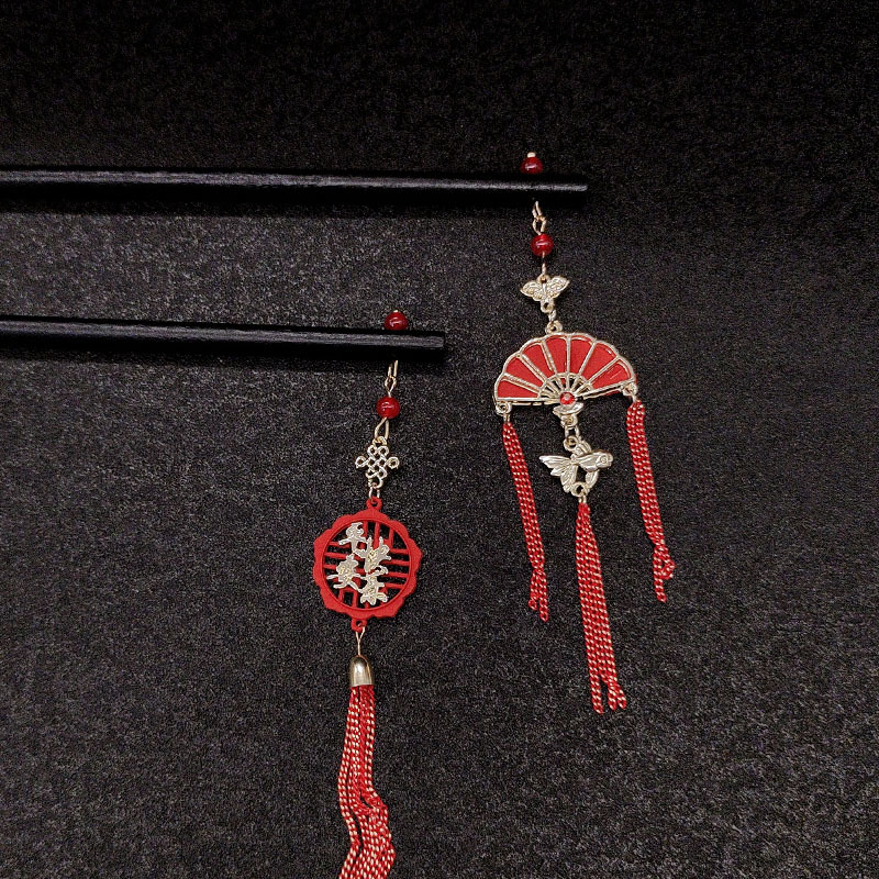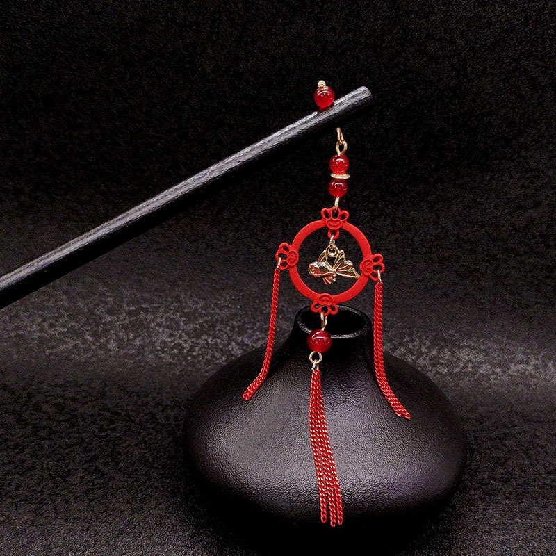 新中式红色流苏新年木质发簪高级感国风平安喜乐简约盘发发饰头饰