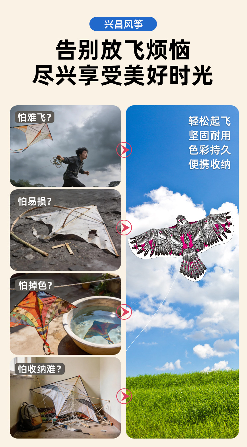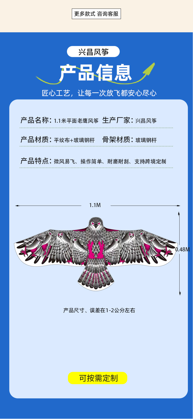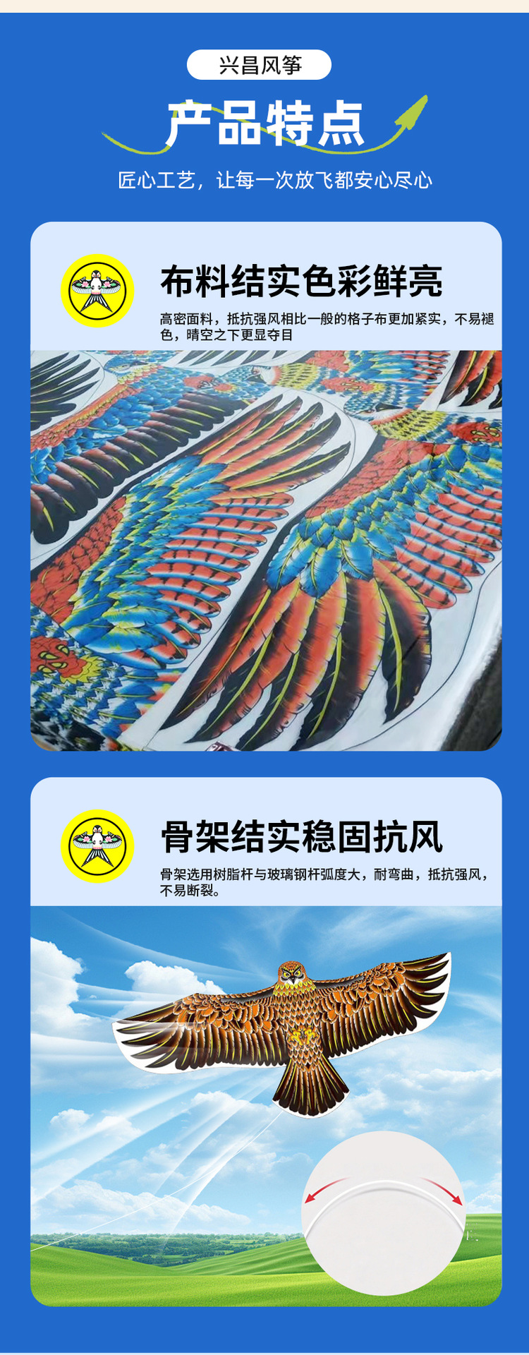 跨境热销老鹰风筝潍坊风筝儿童三角风筝户外老鹰风筝驱鸟吓鸟风筝