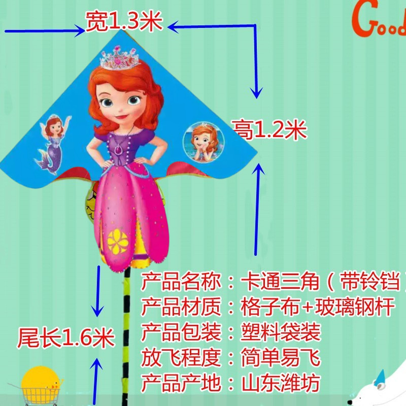 新款卡通风筝送铃铛1.3米包头长尾儿童风筝新款网红风筝厂家直销