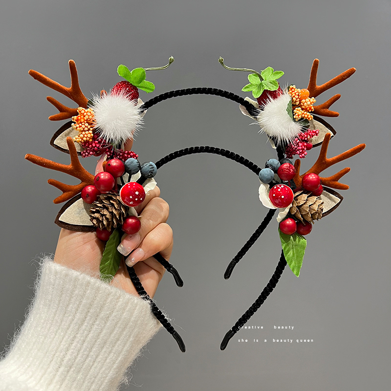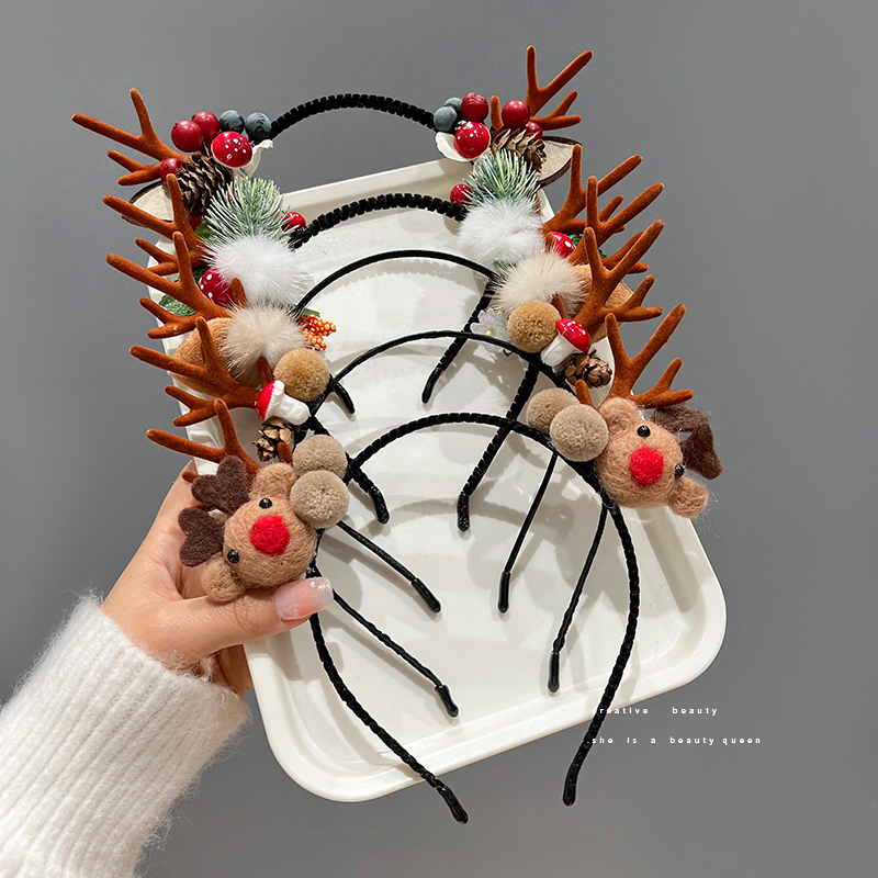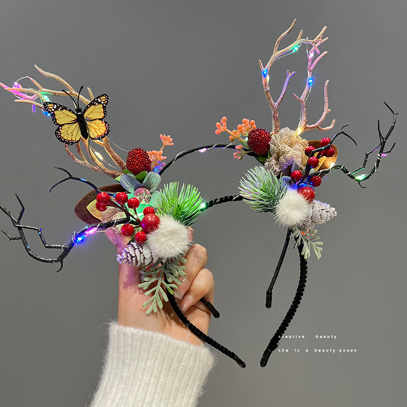 圣诞节头饰装扮森系小鹿角发箍发卡发夹饰品发光圣诞头箍发饰女