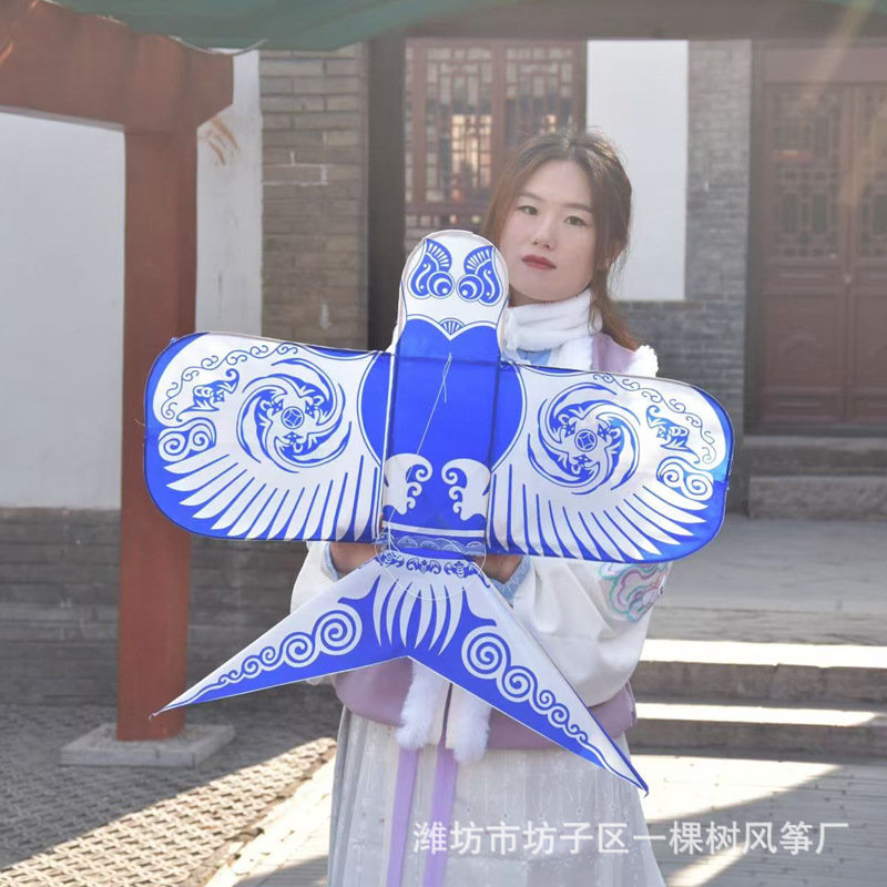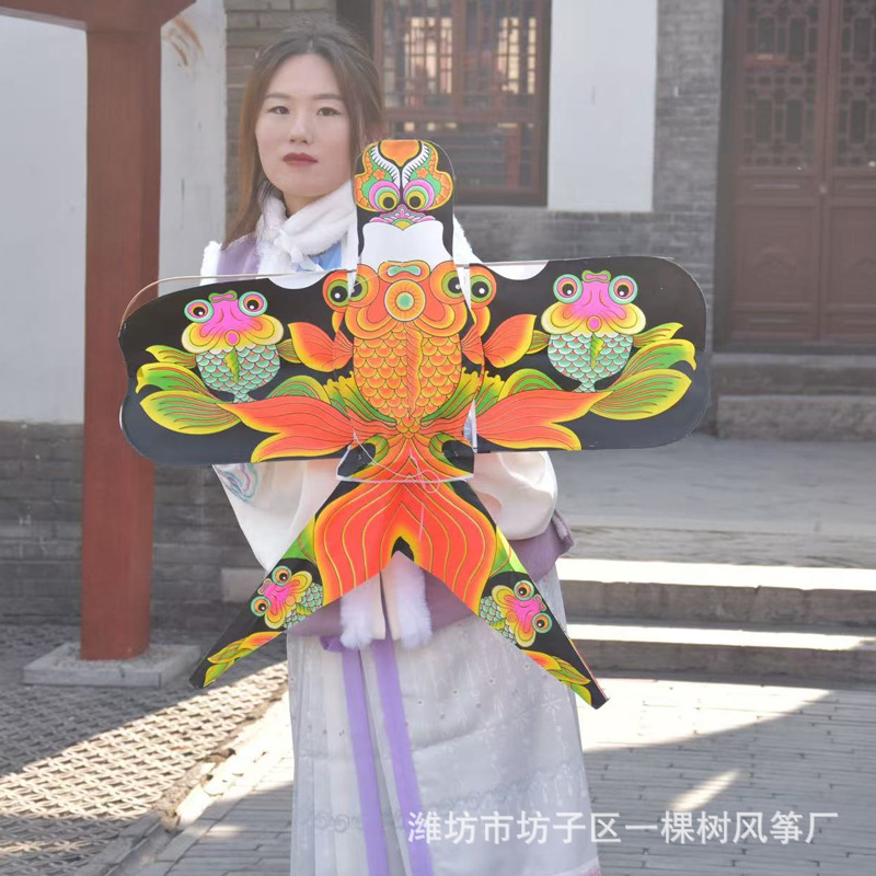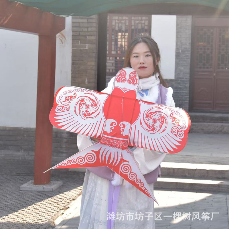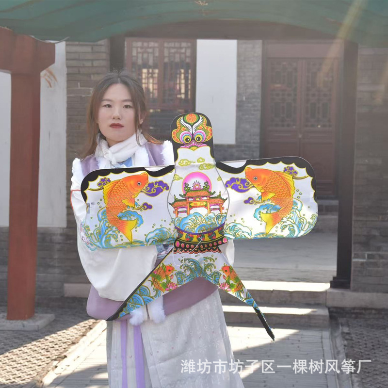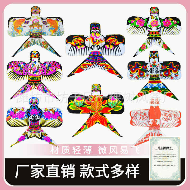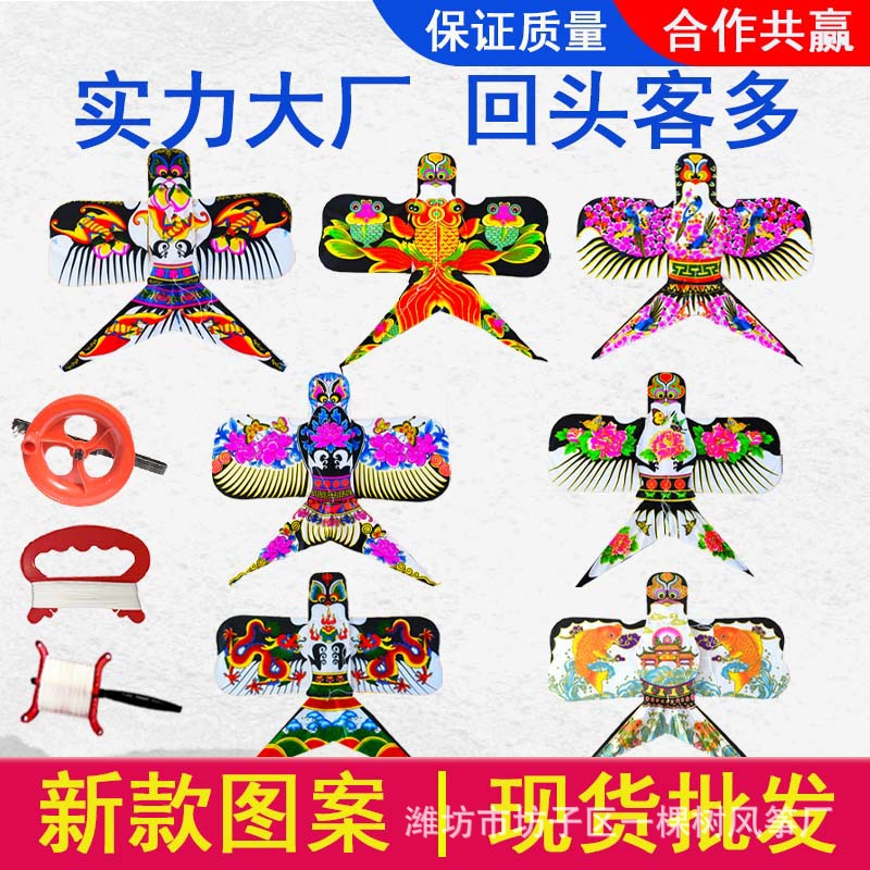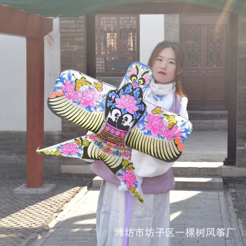 潍坊传统沙燕风筝批发儿童卡通手绘古风纸鸢写真摄影汉服拍照道具