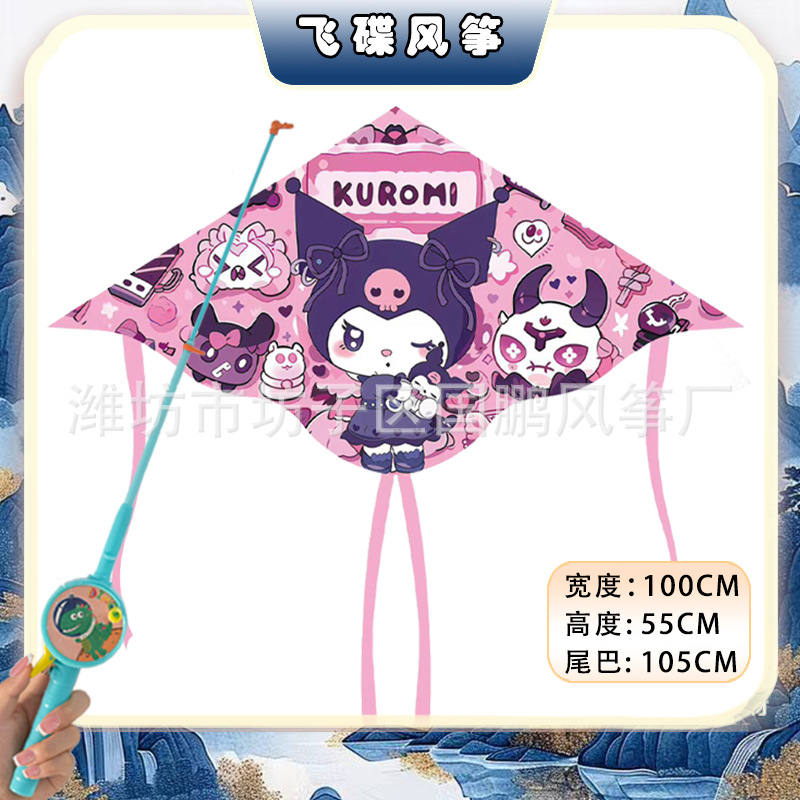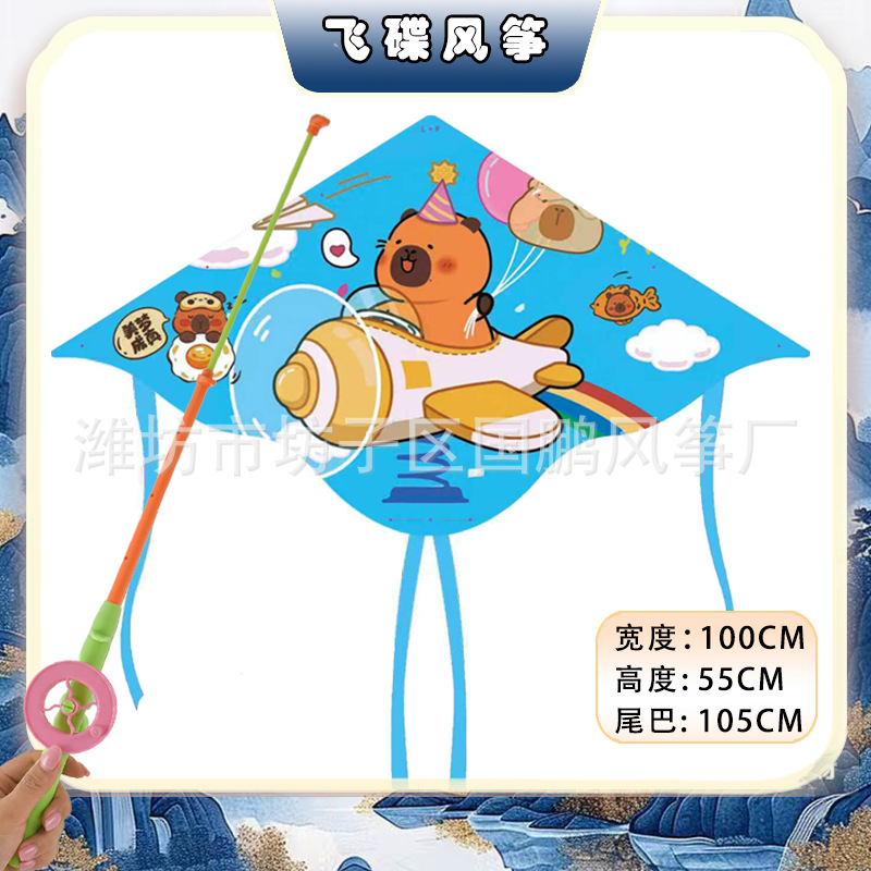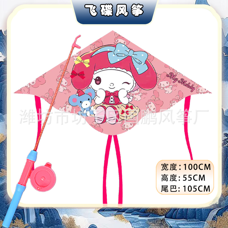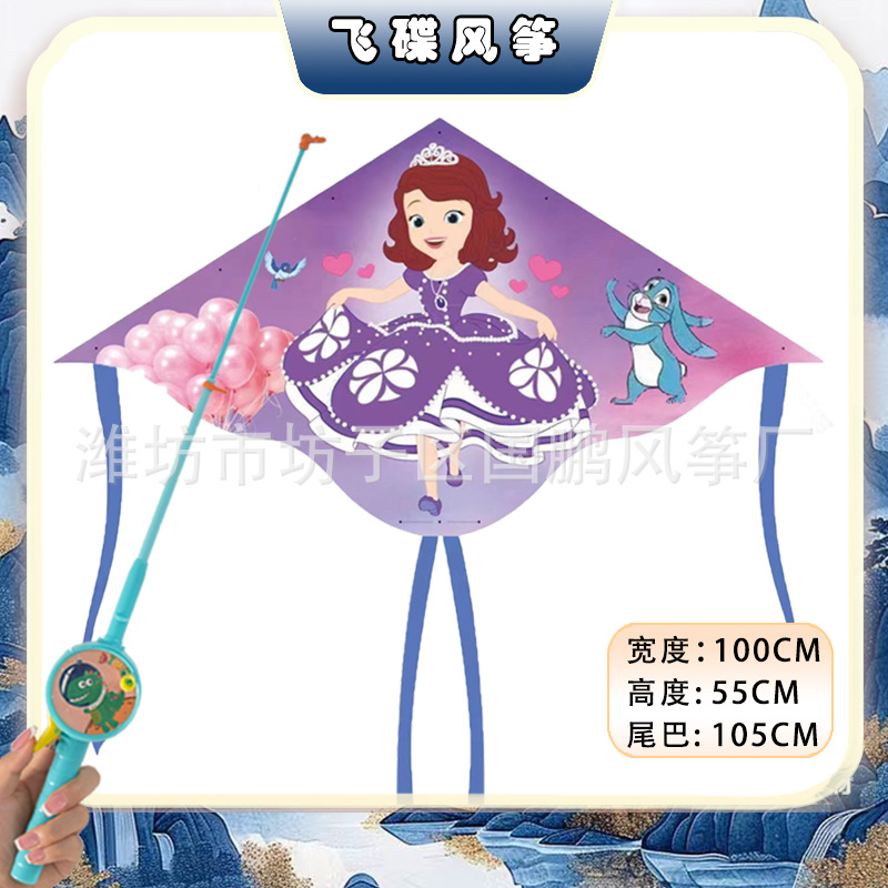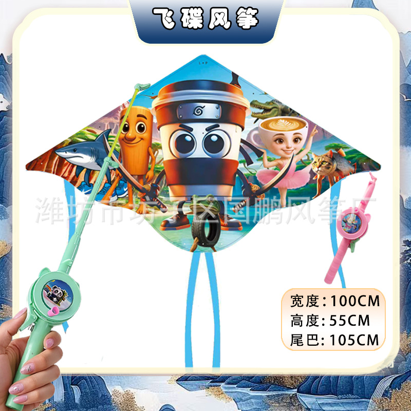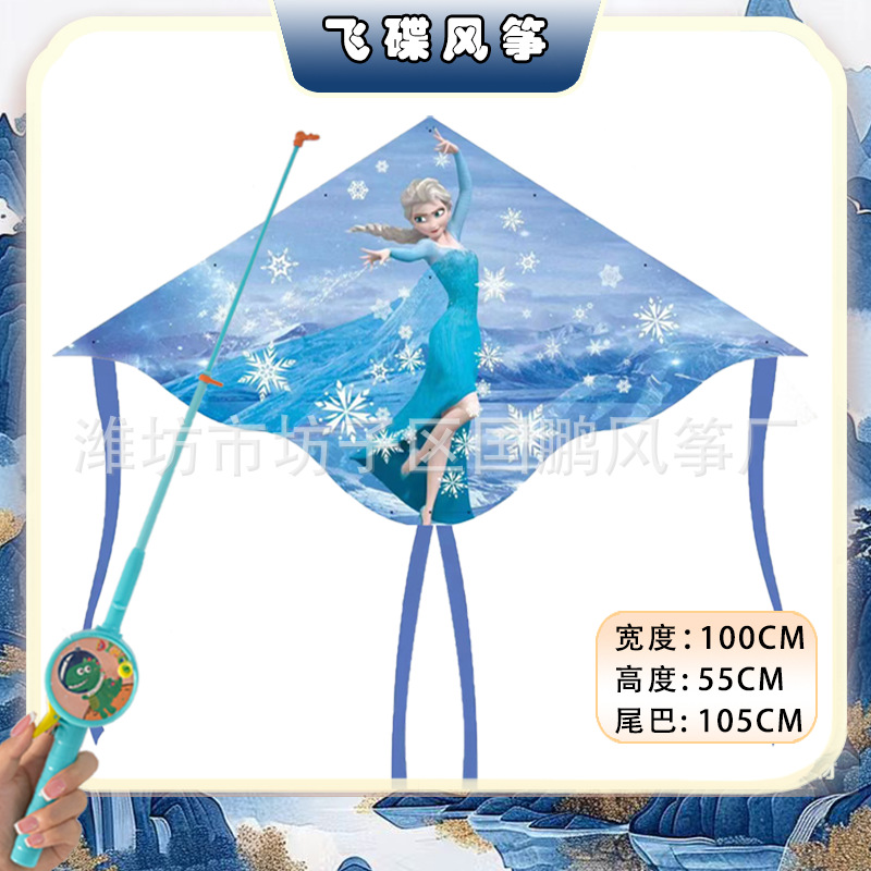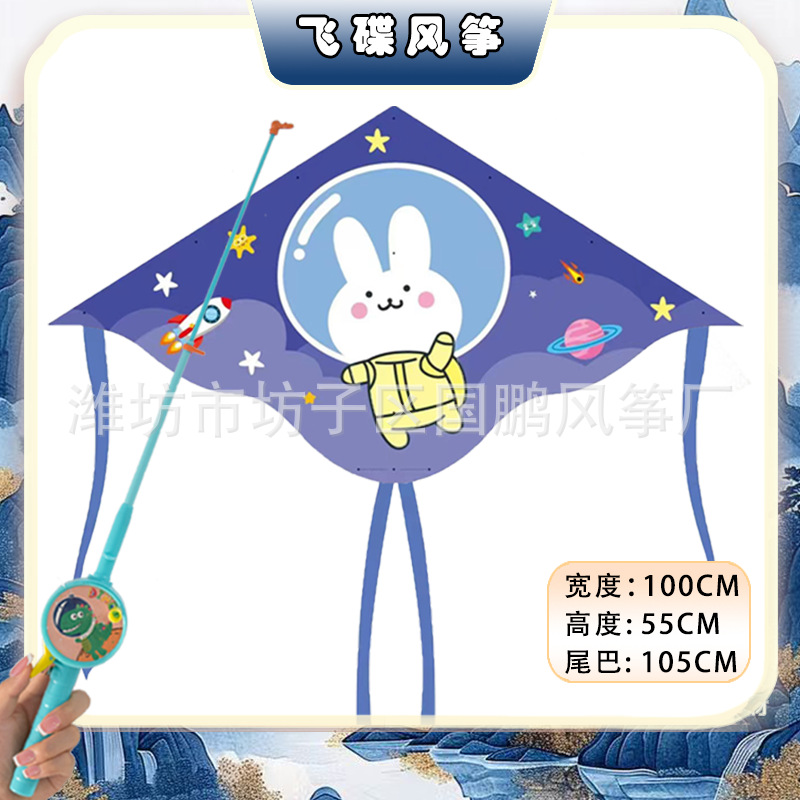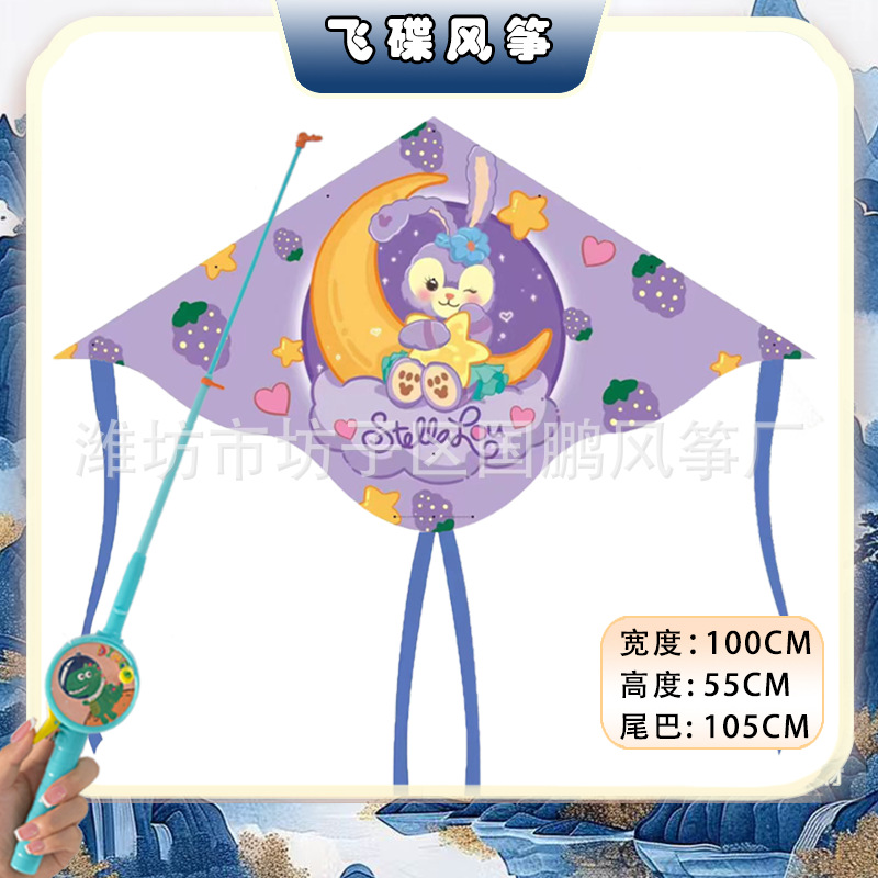 鱼竿风筝批发儿童卡通手持钓鱼竿风筝微风易飞户外公园手持小风筝