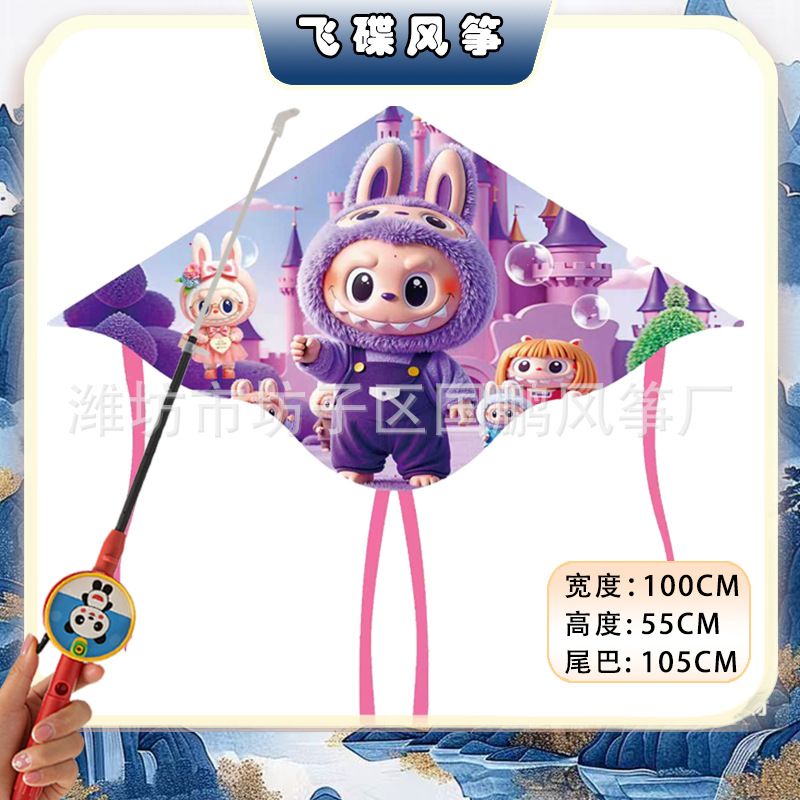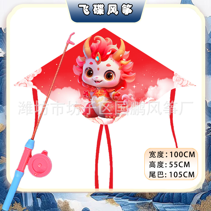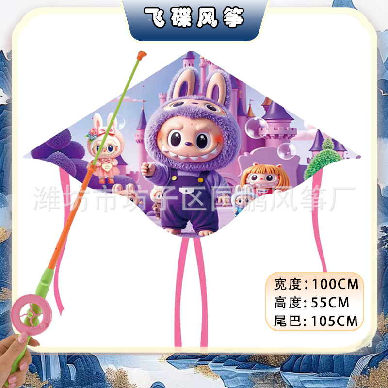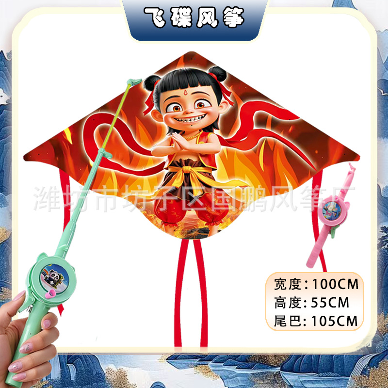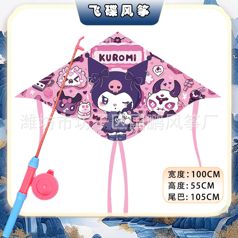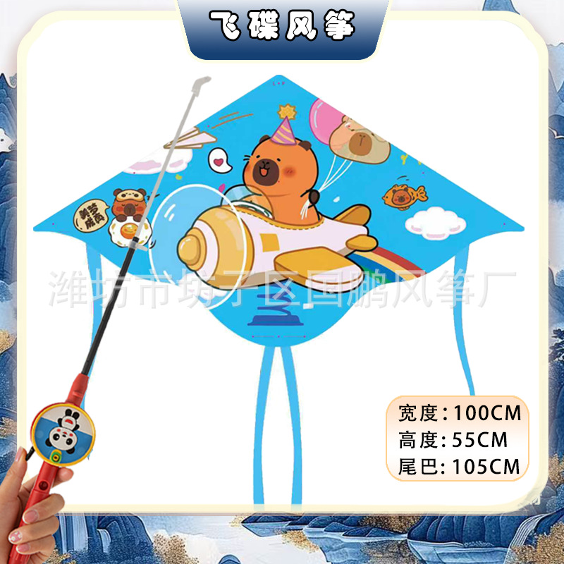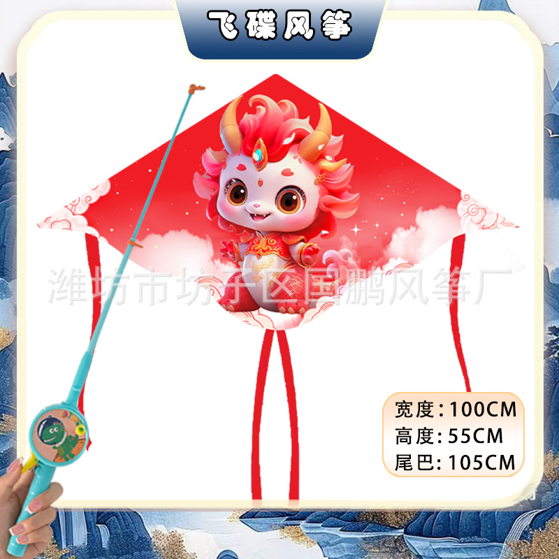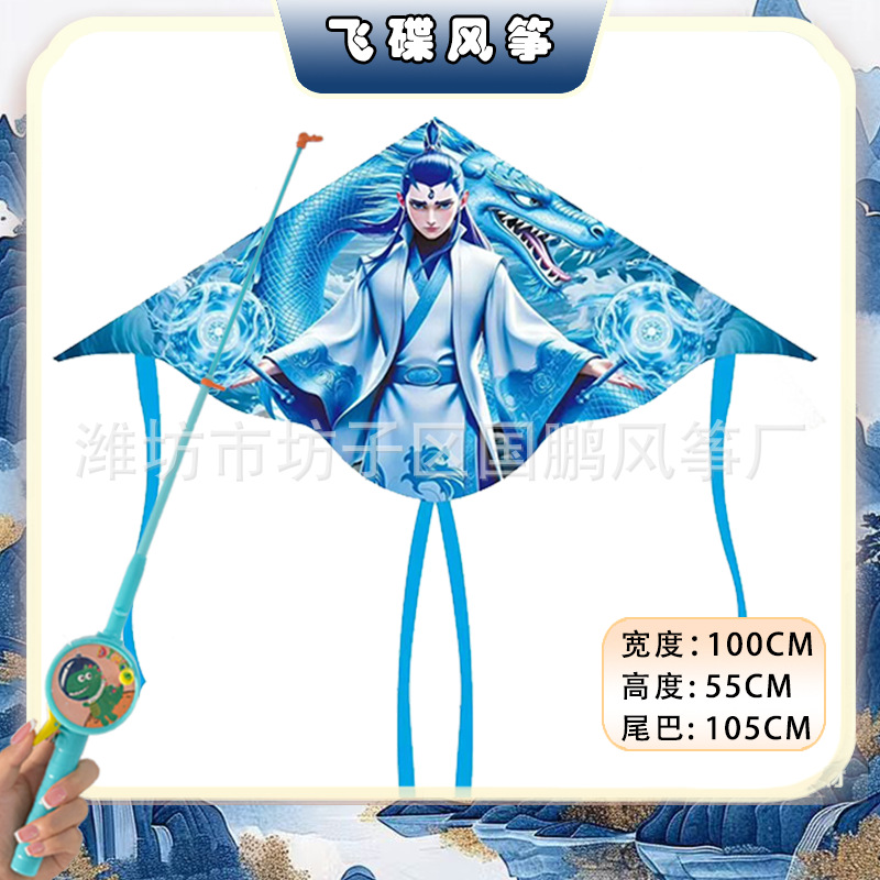 鱼竿风筝批发儿童卡通手持钓鱼竿风筝微风易飞户外公园手持小风筝