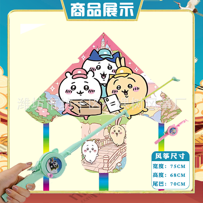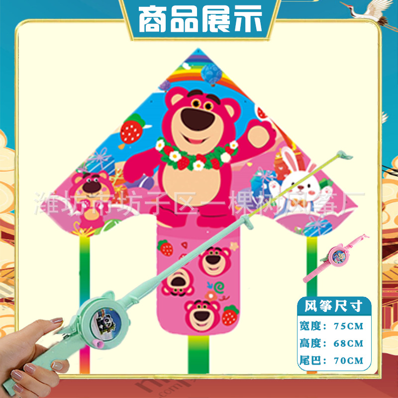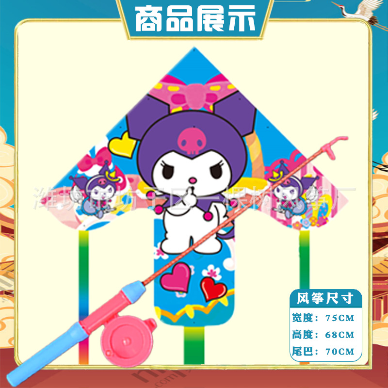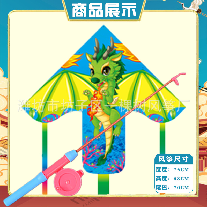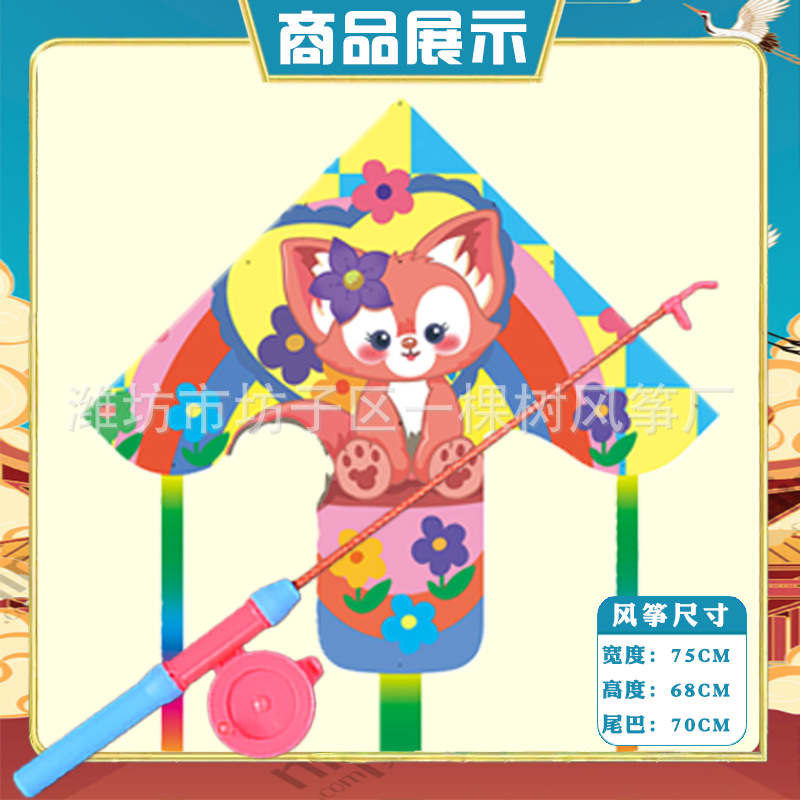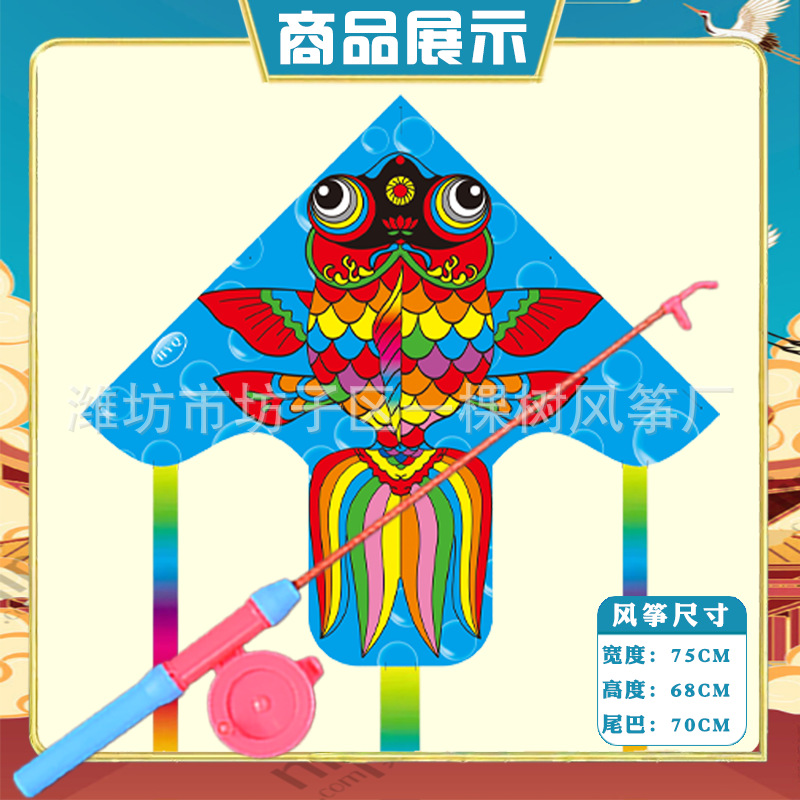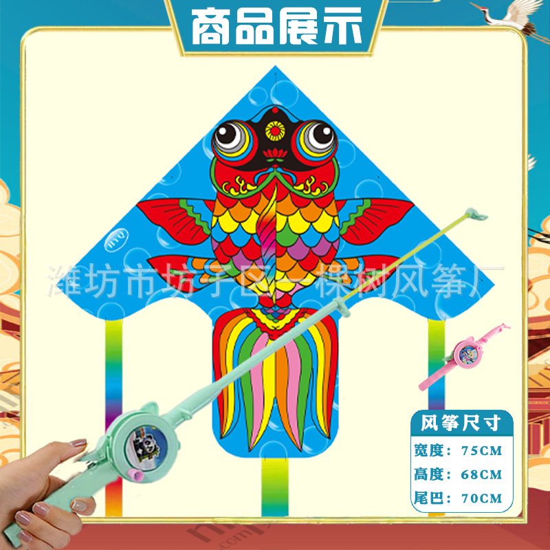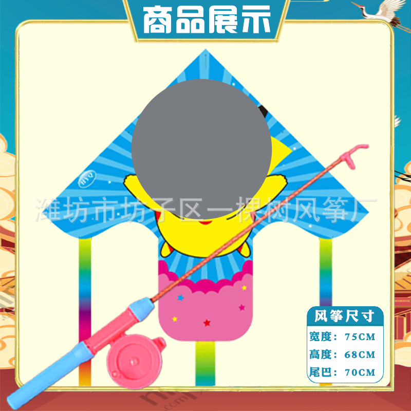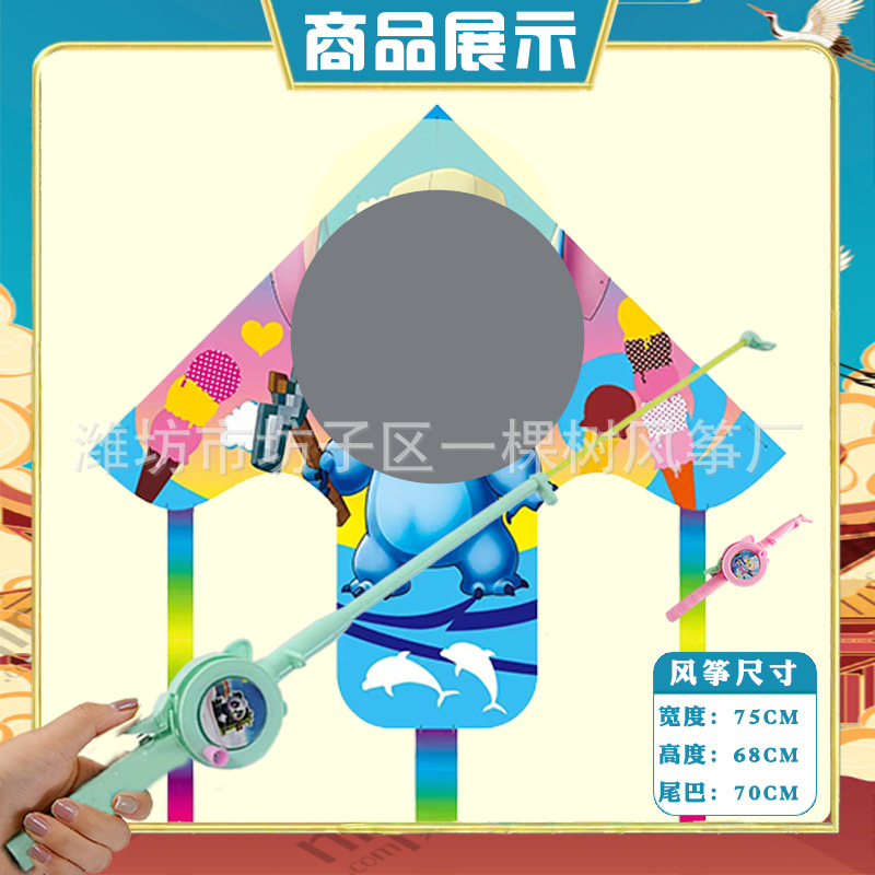 潍坊三角手持鱼竿风筝批发儿童卡通风筝微风易飞地摊钓鱼竿小风筝