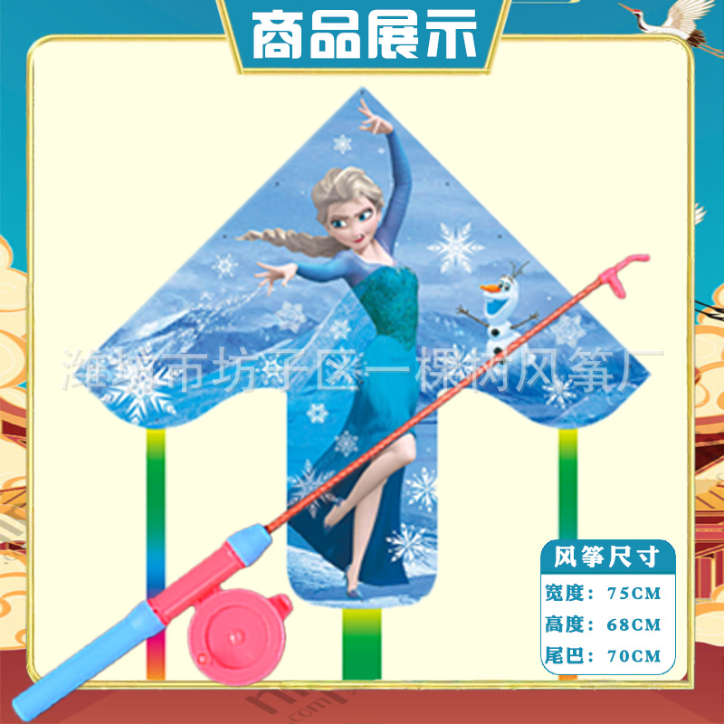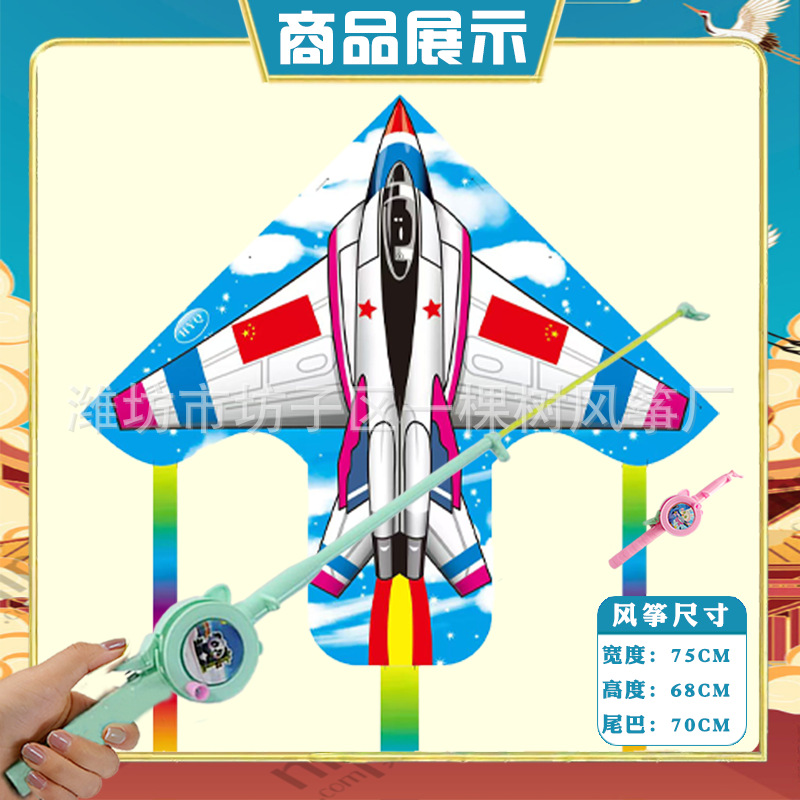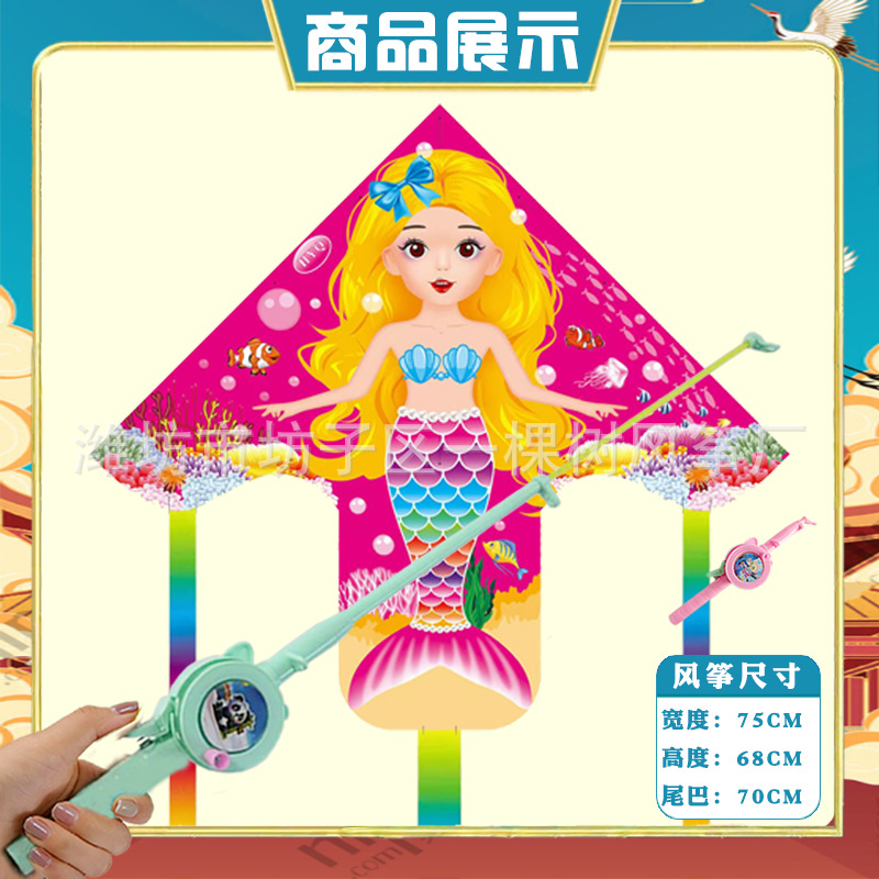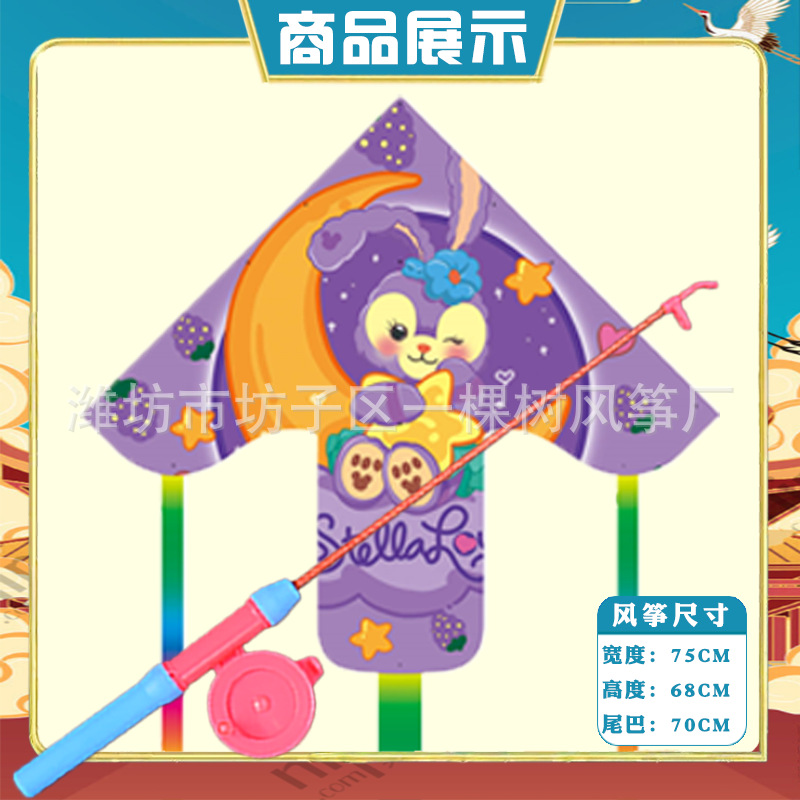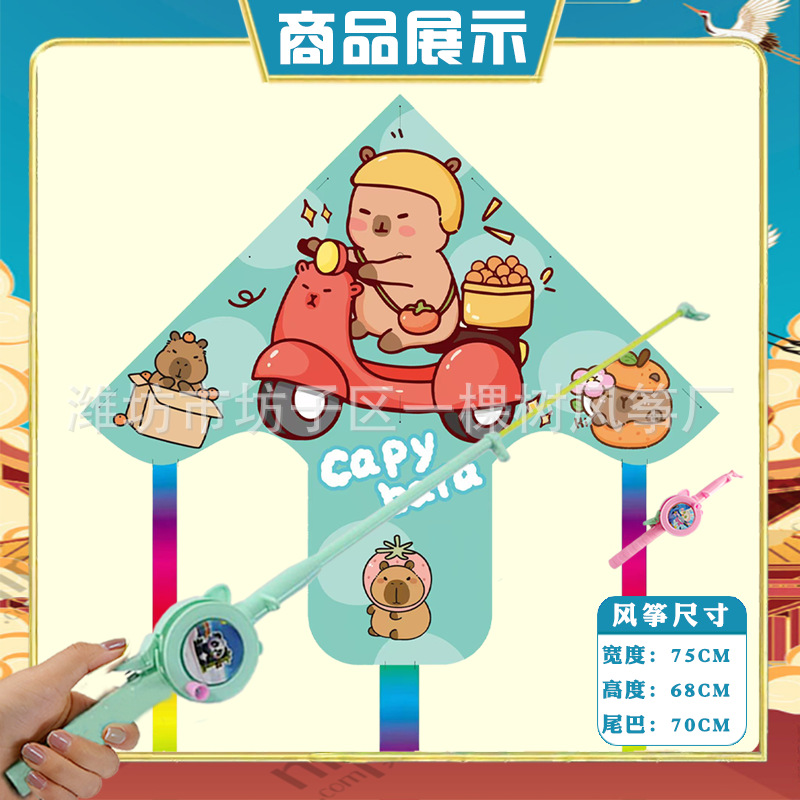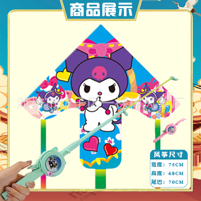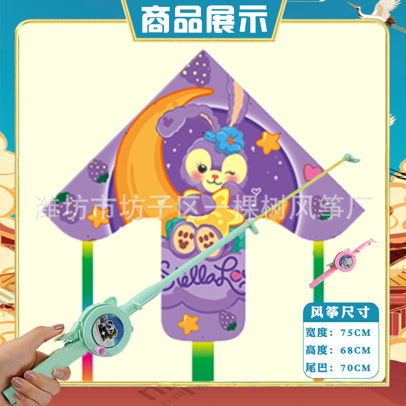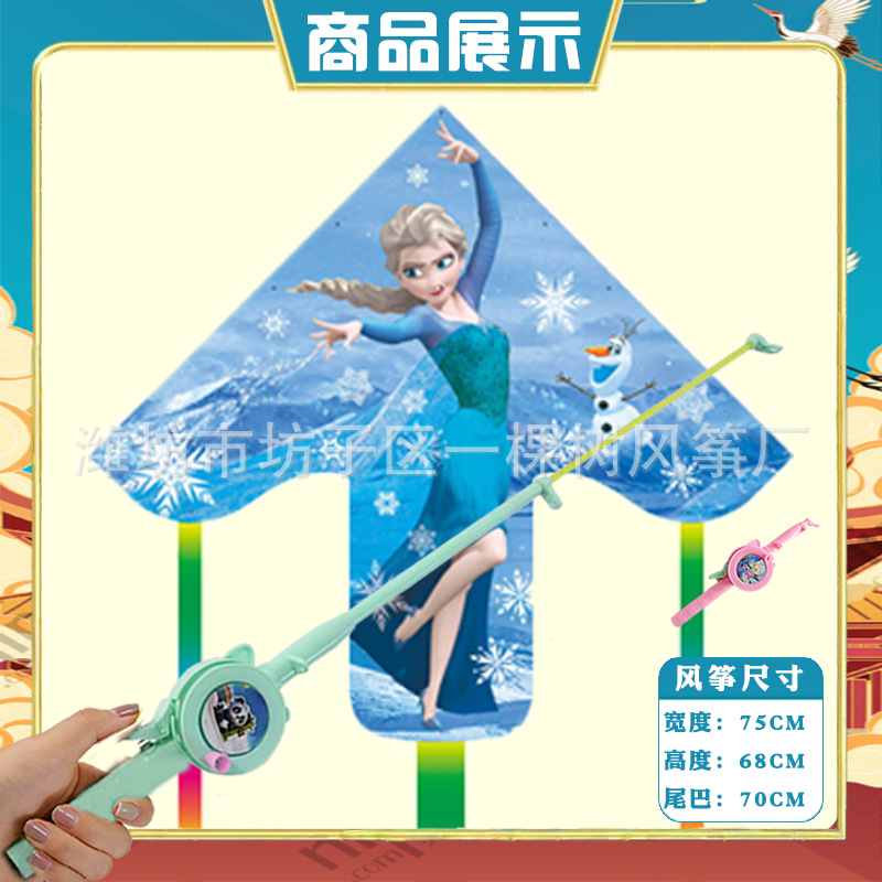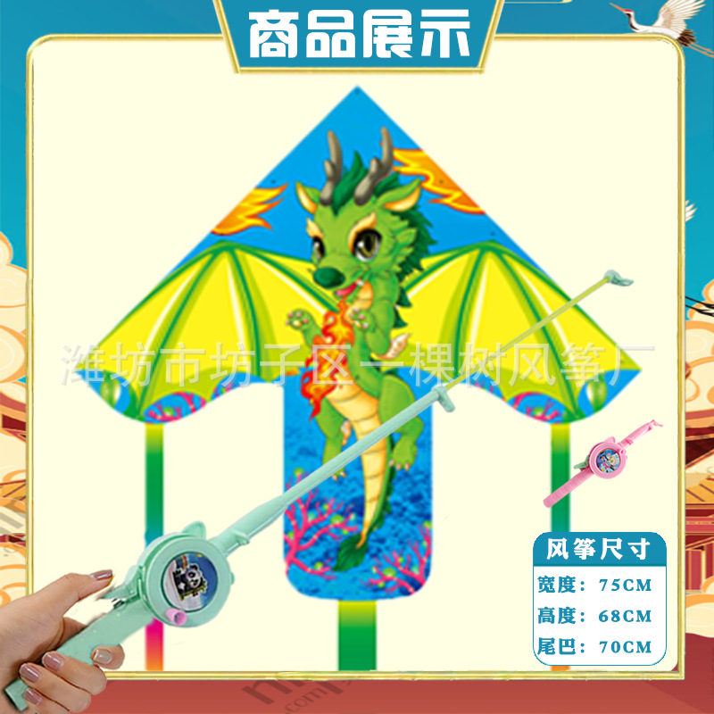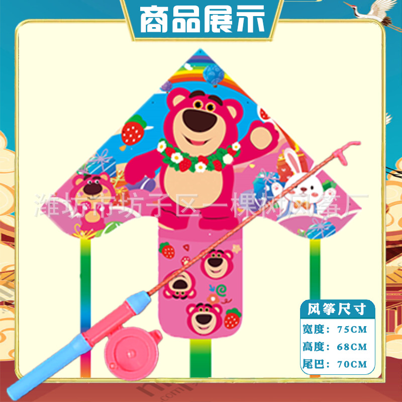 潍坊三角手持鱼竿风筝批发儿童卡通风筝微风易飞地摊钓鱼竿小风筝