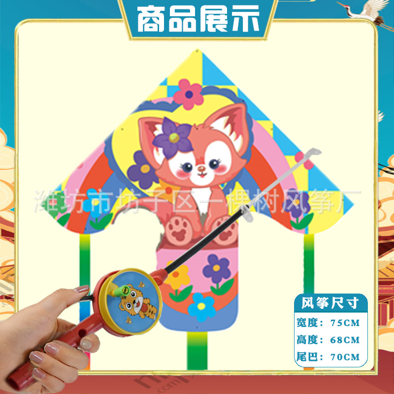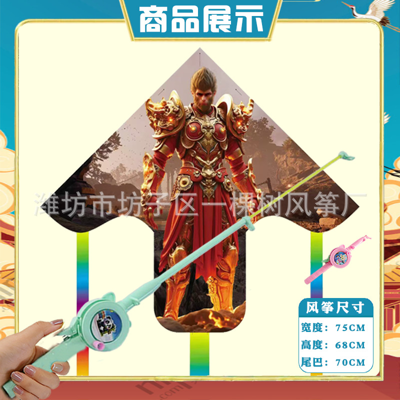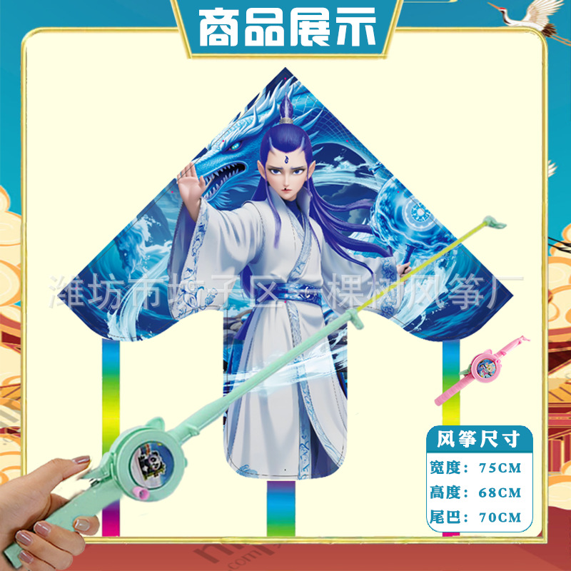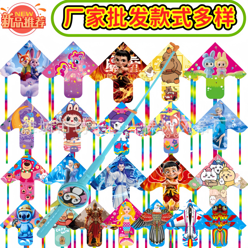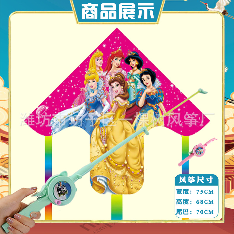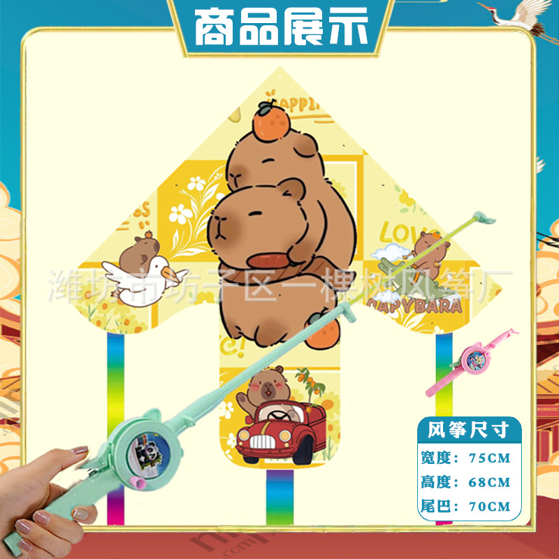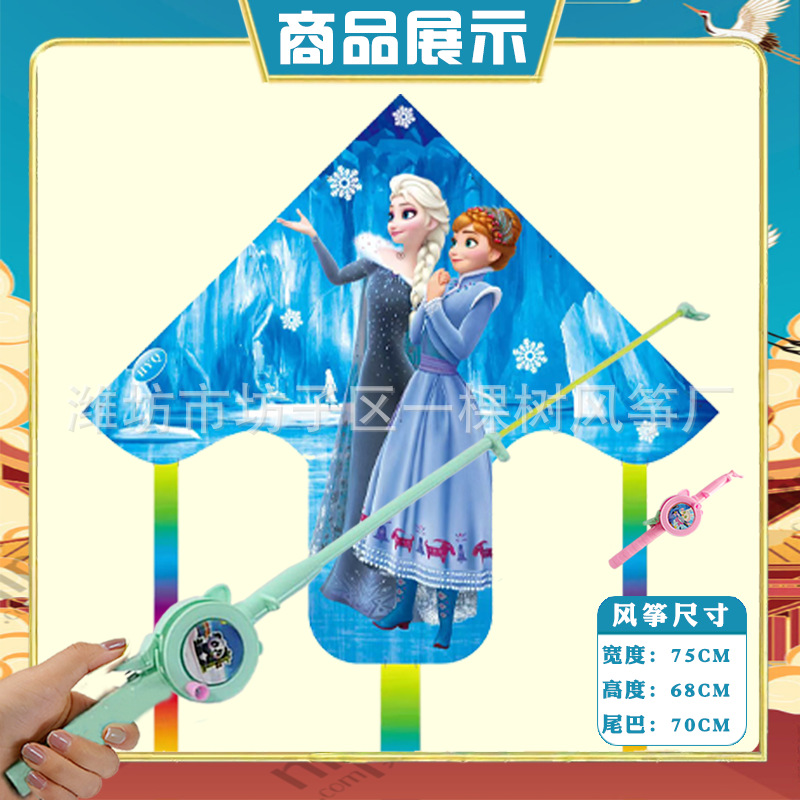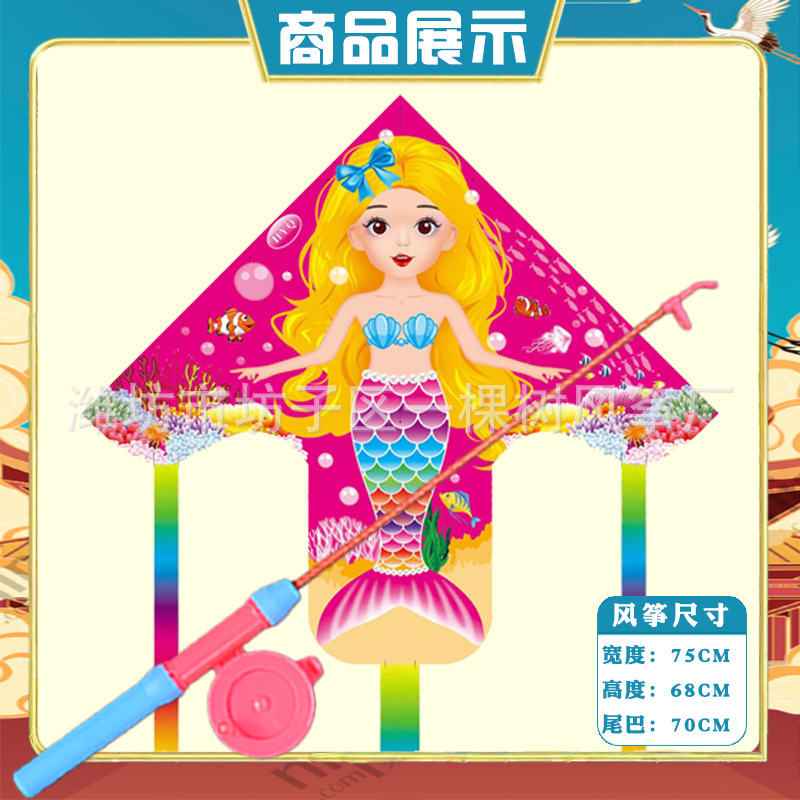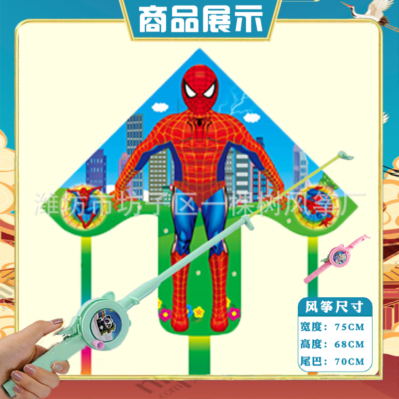潍坊三角手持鱼竿风筝批发儿童卡通风筝微风易飞地摊钓鱼竿小风筝