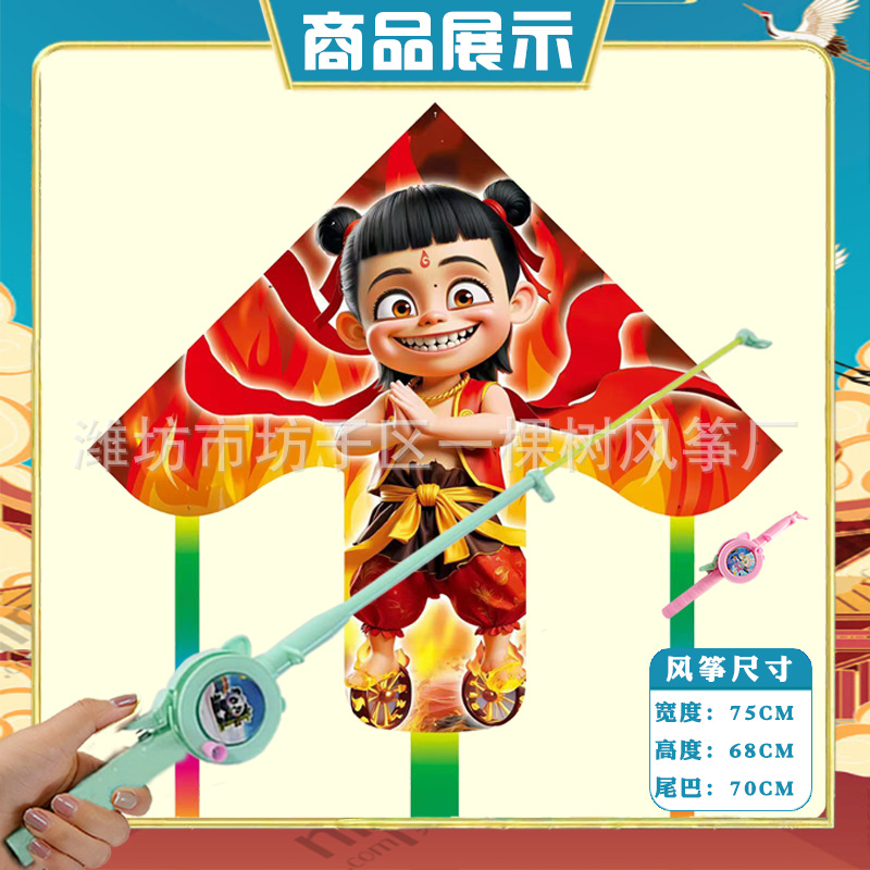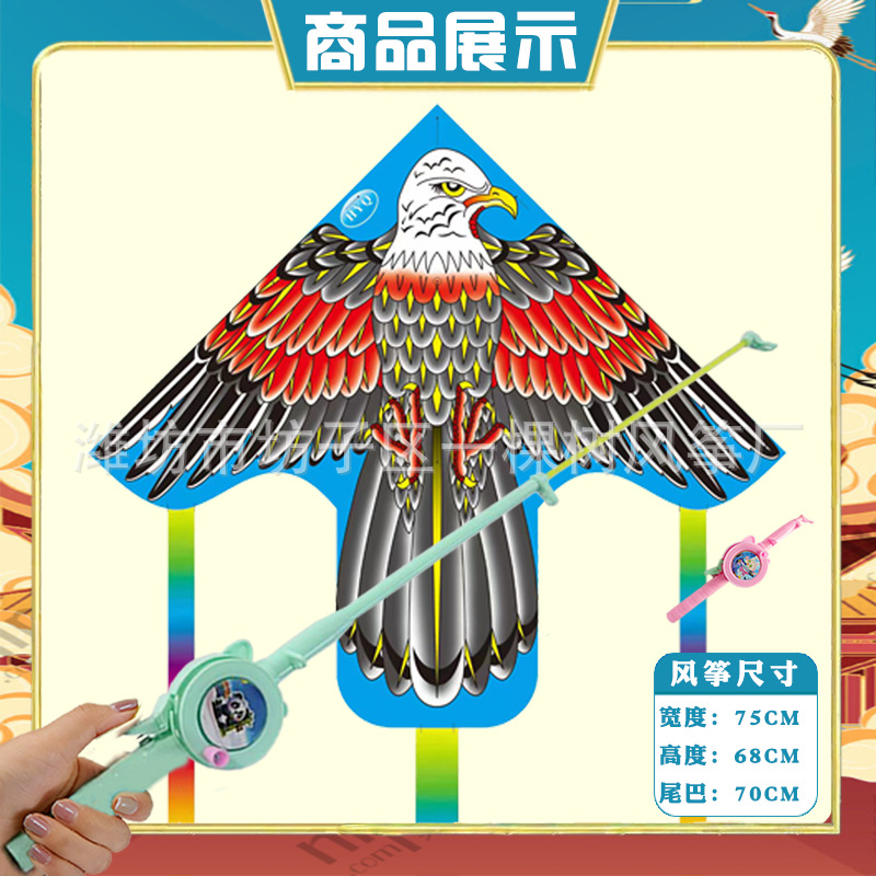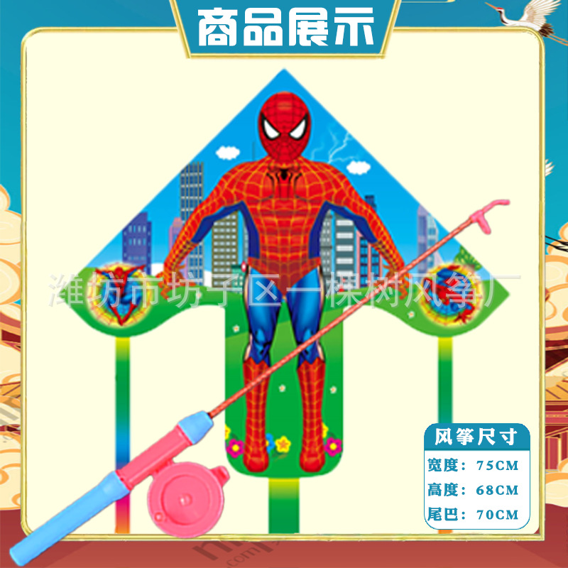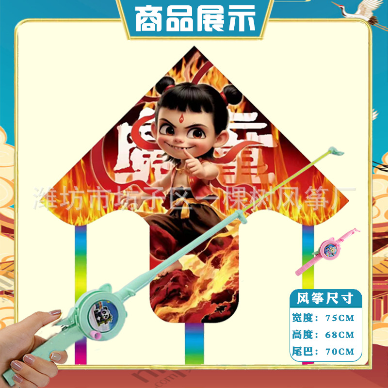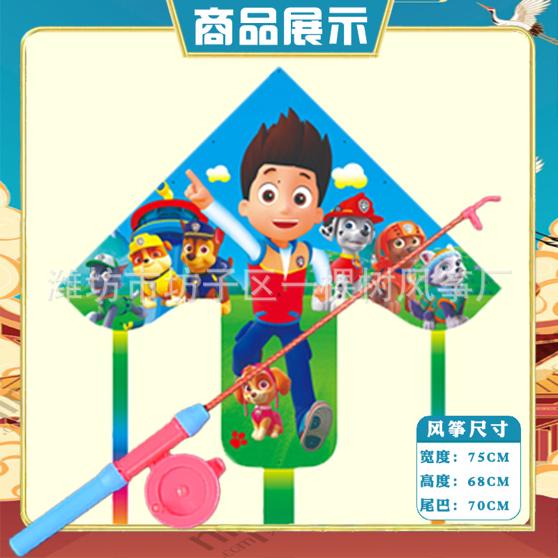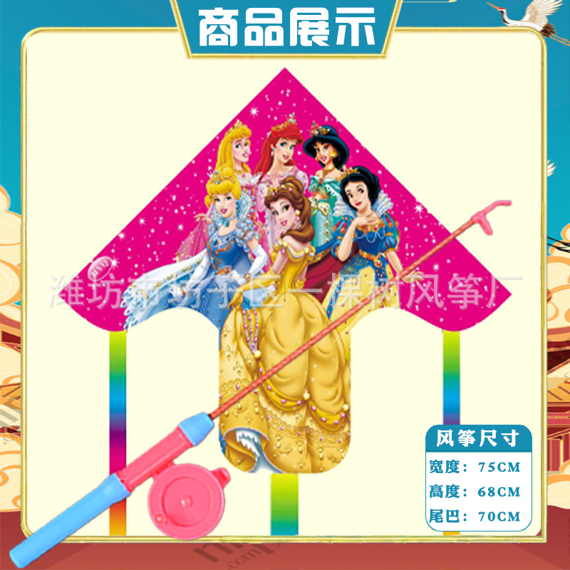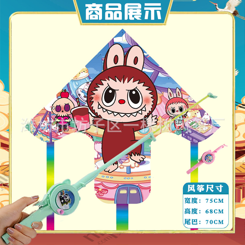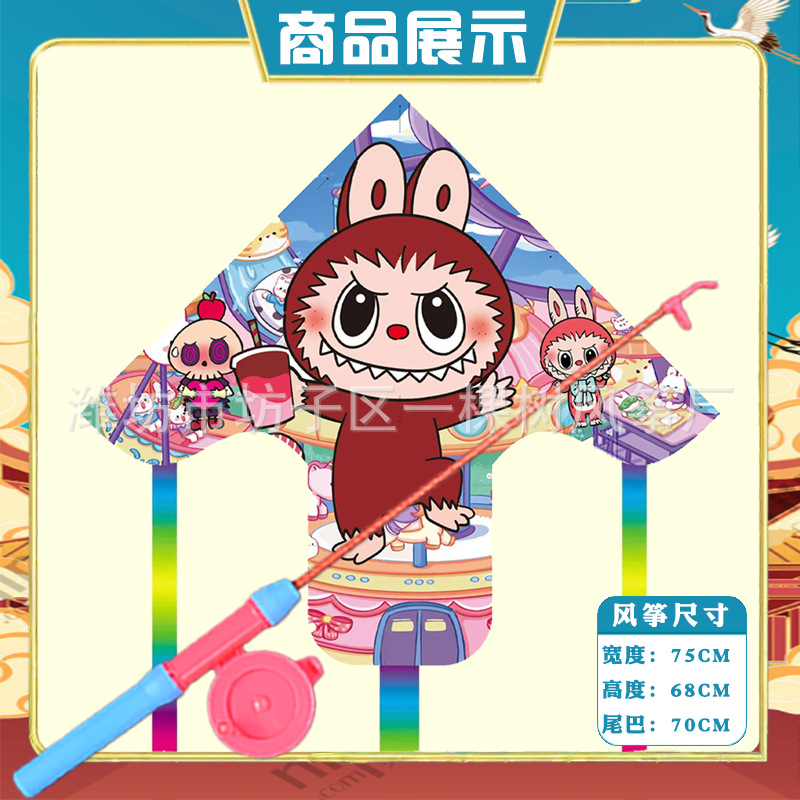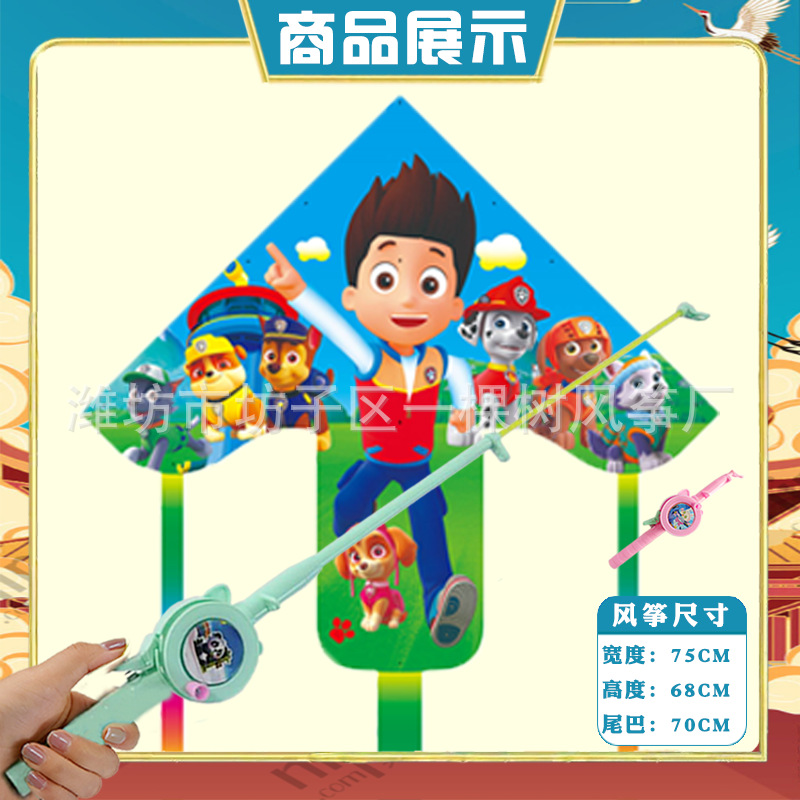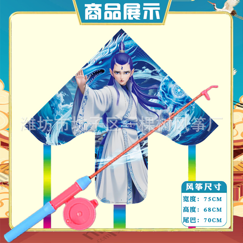 潍坊三角手持鱼竿风筝批发儿童卡通风筝微风易飞地摊钓鱼竿小风筝