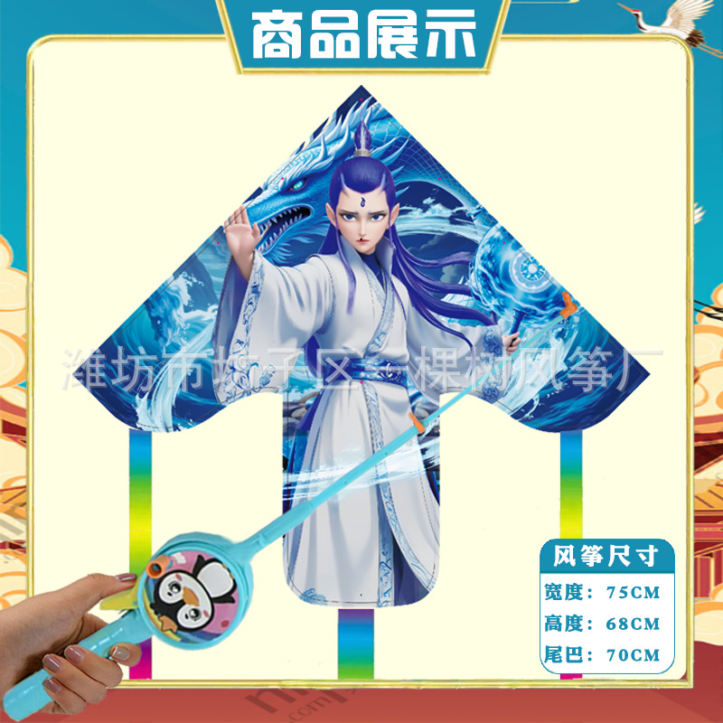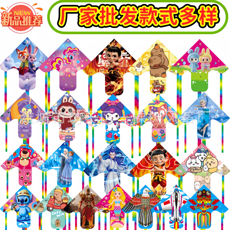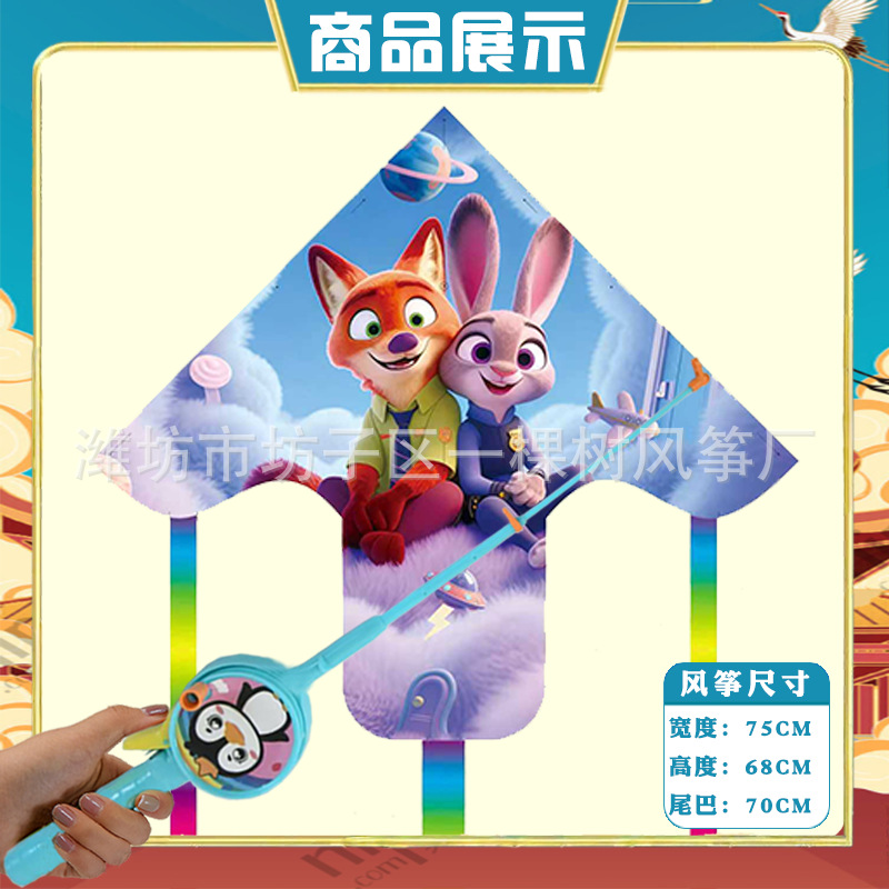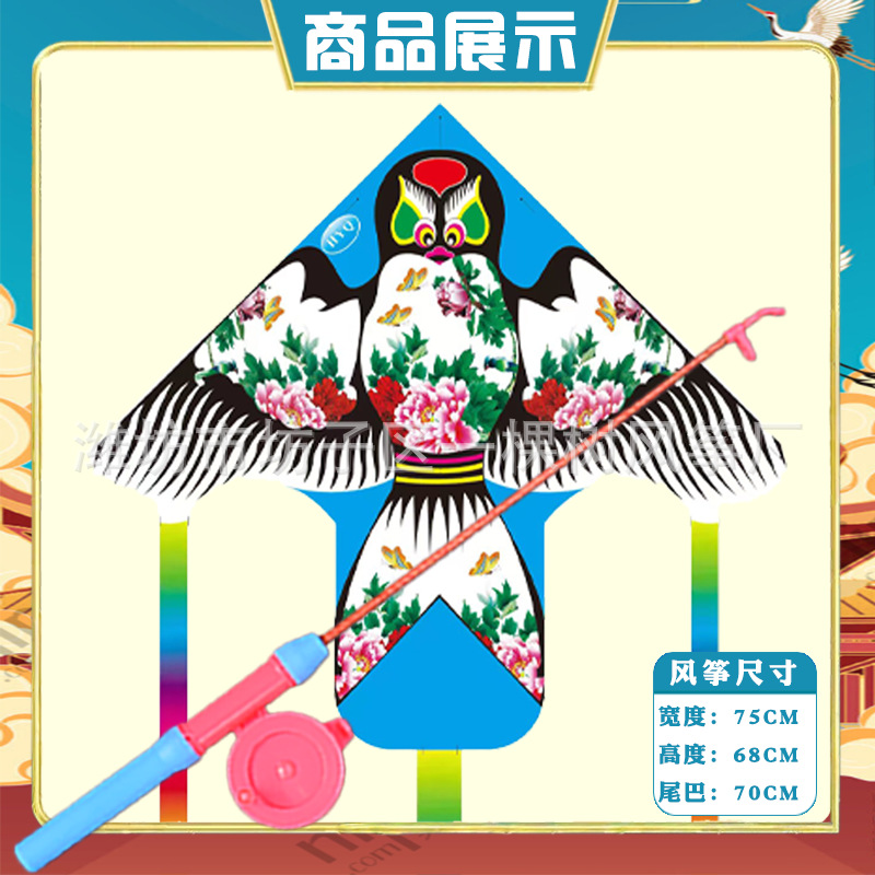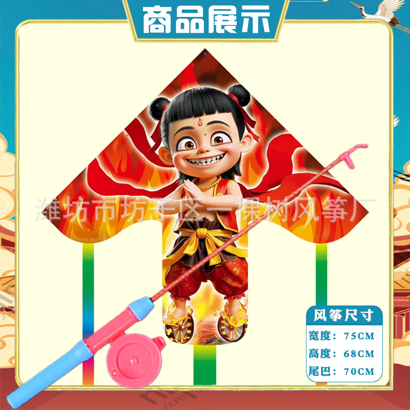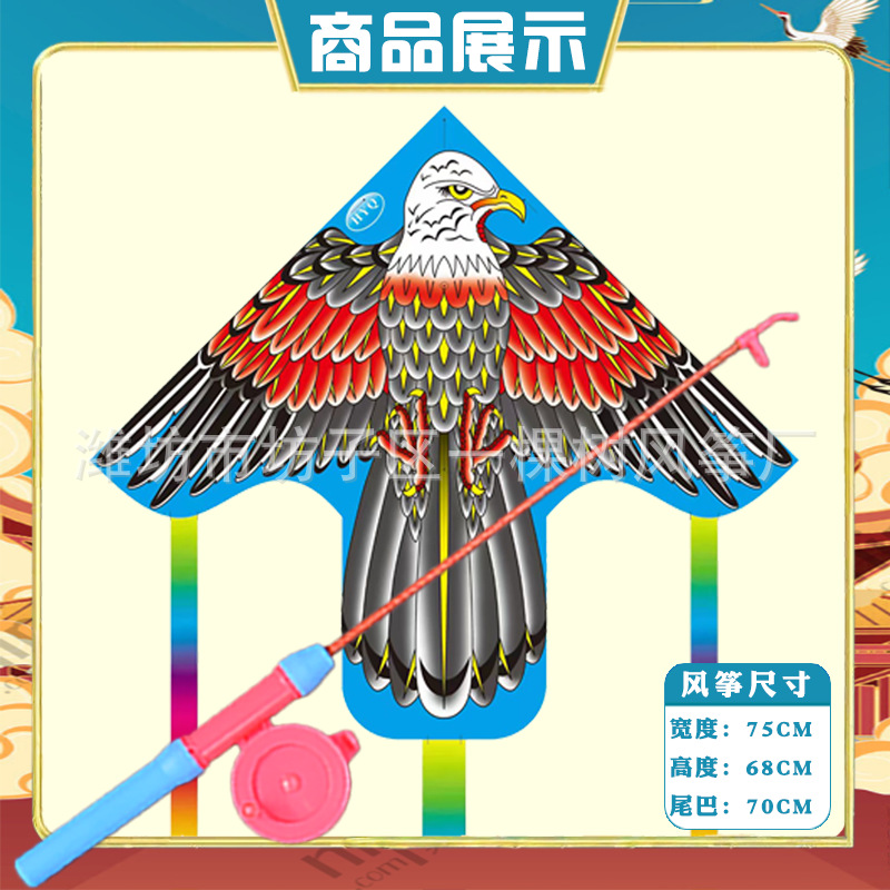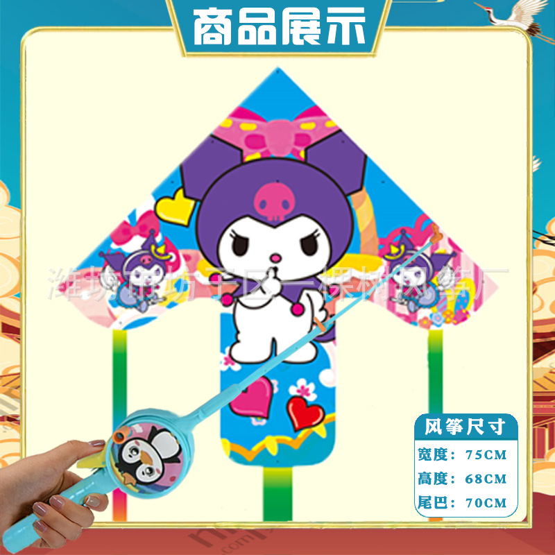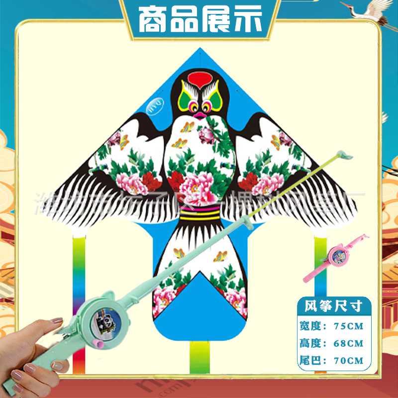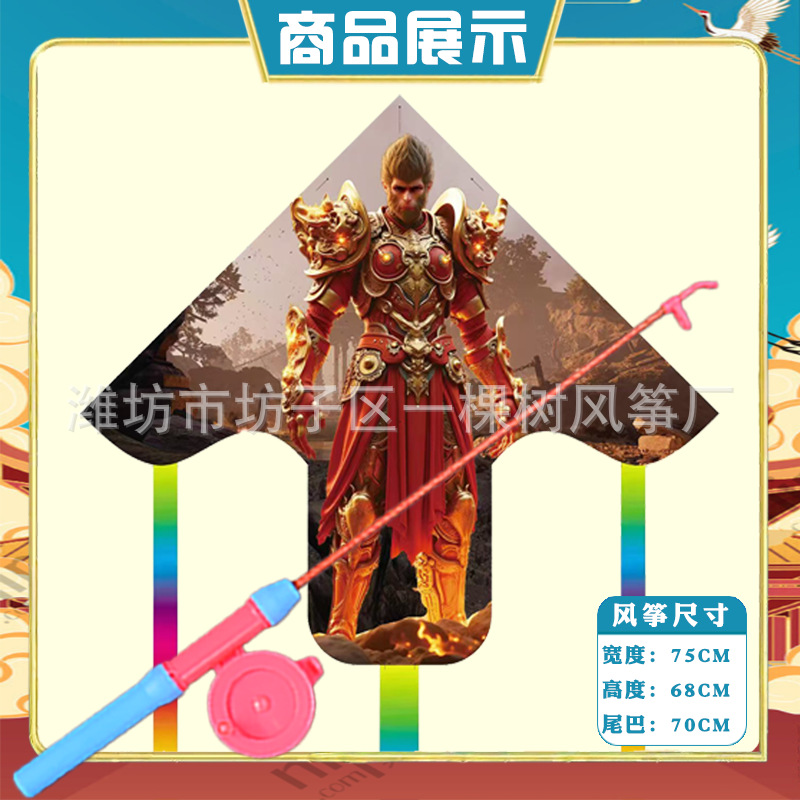 潍坊三角手持鱼竿风筝批发儿童卡通风筝微风易飞地摊钓鱼竿小风筝