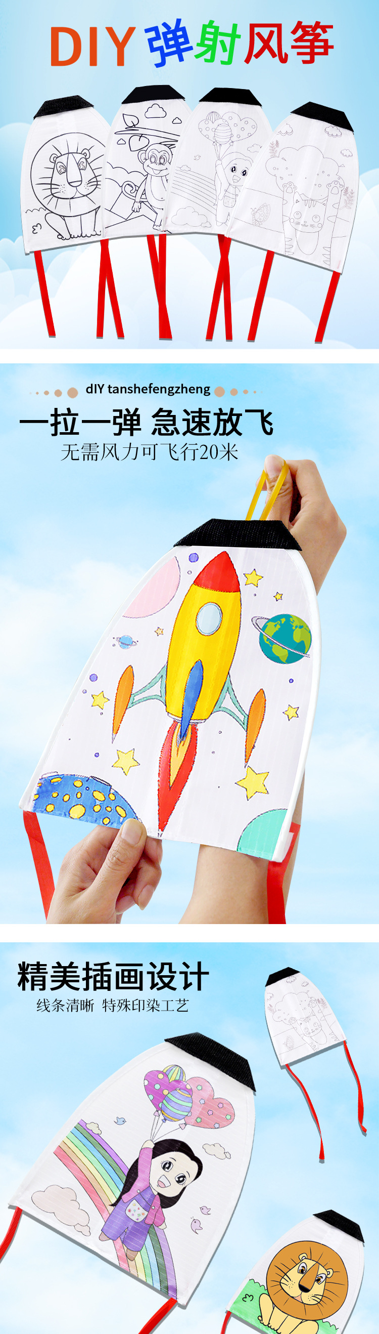 绘画风筝弹射DIY绘图风筝 儿童户外广场室内飞行玩具儿童弹射风筝