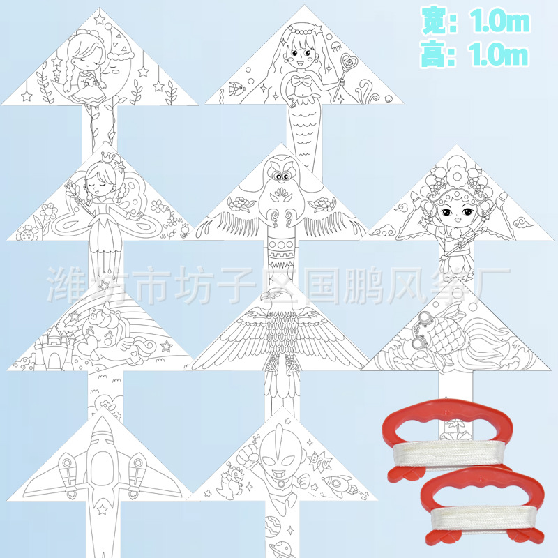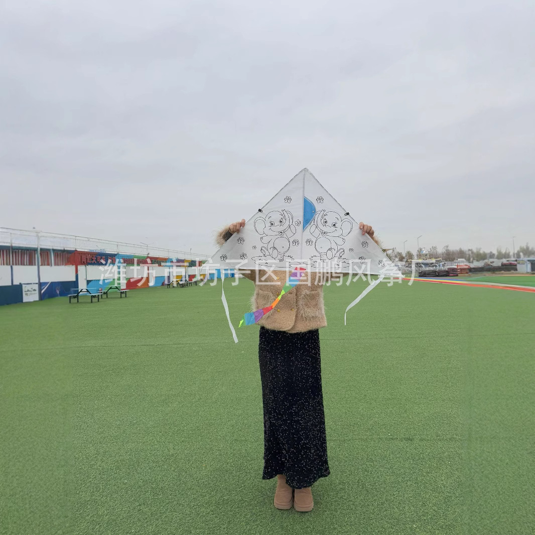 diy风筝儿童手工自制材料包 纯空白彩绘图涂鸦填色教学幼儿园风