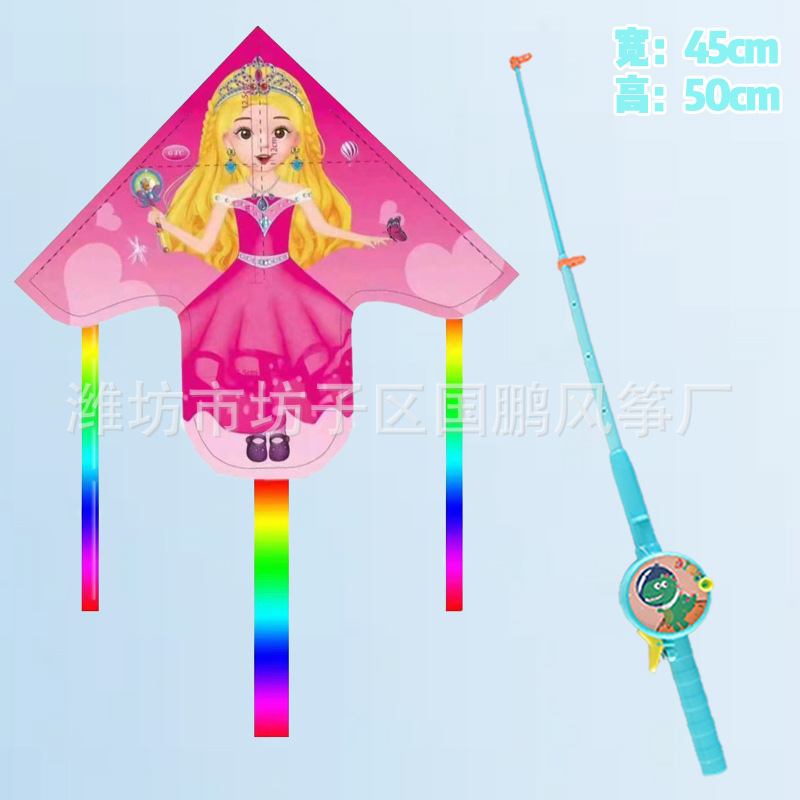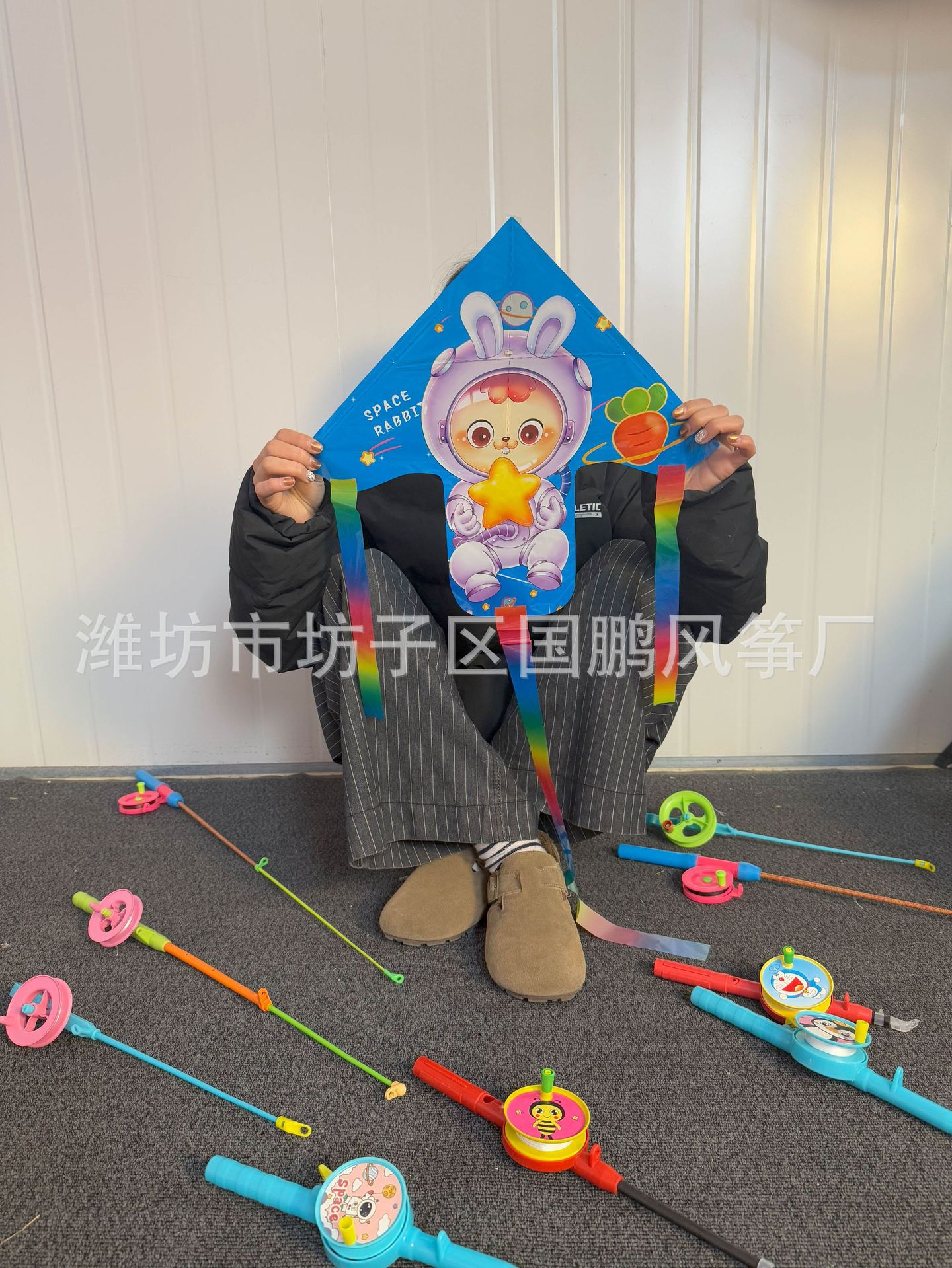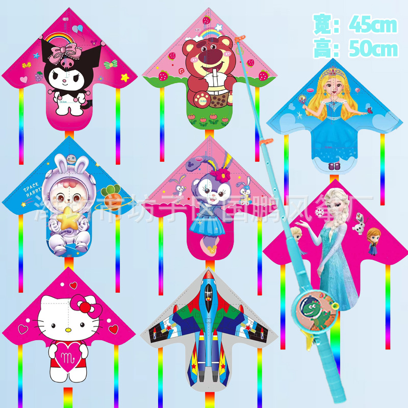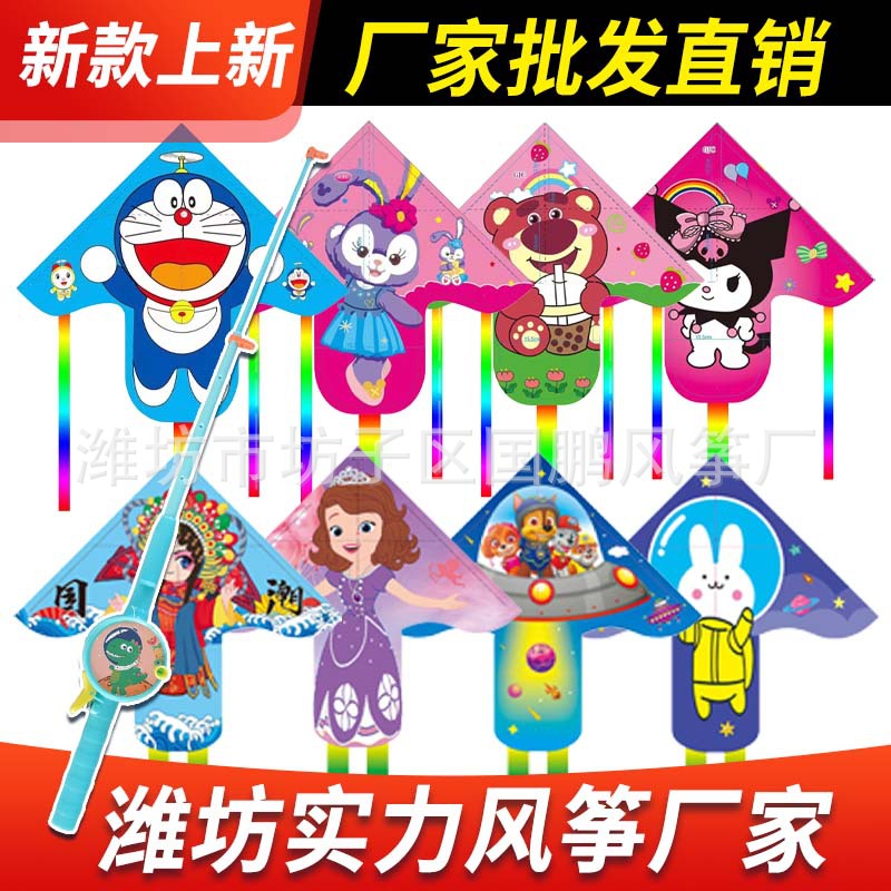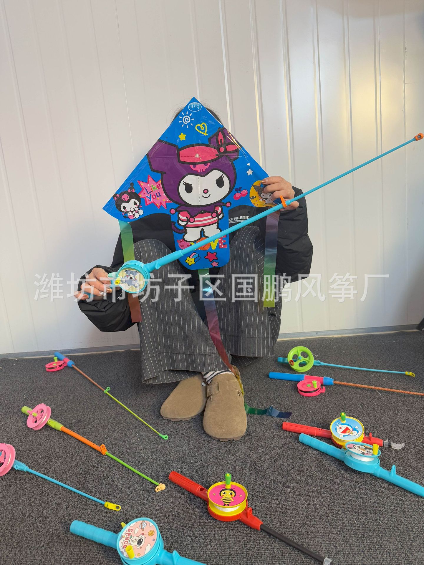 潍坊鱼竿风筝三角塑料卡通风筝儿童手持鱼竿三角风筝批发地摊热销