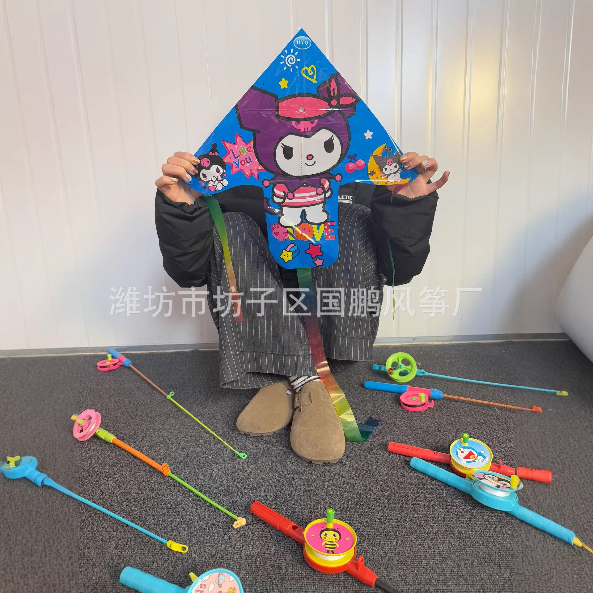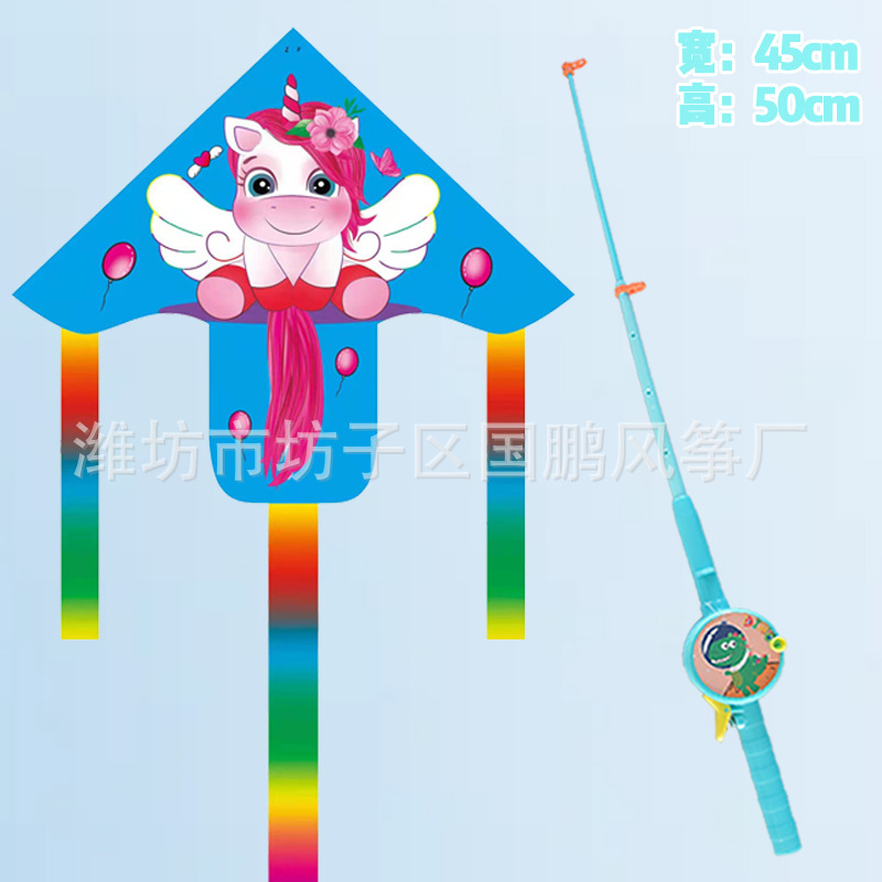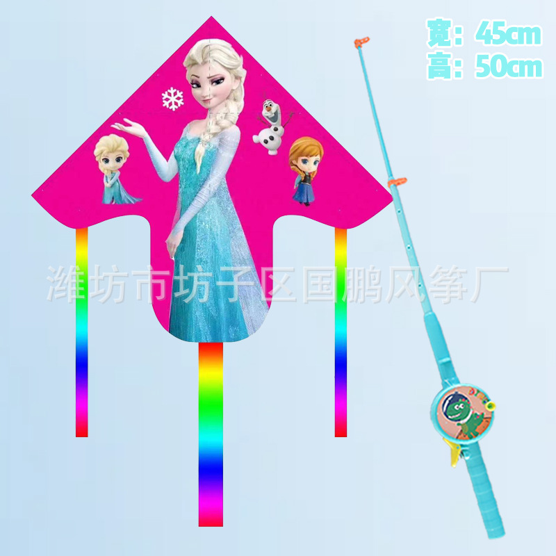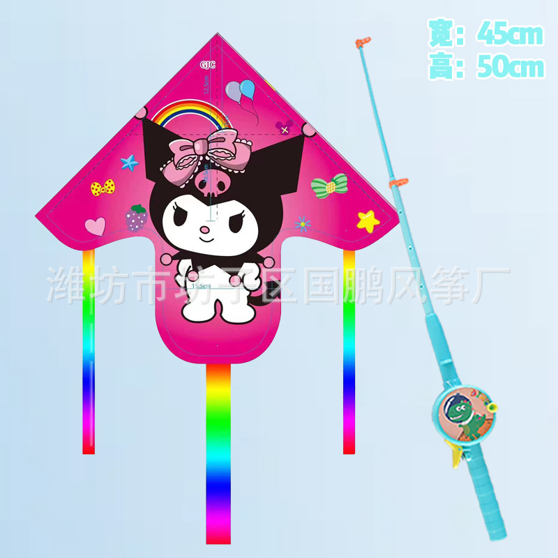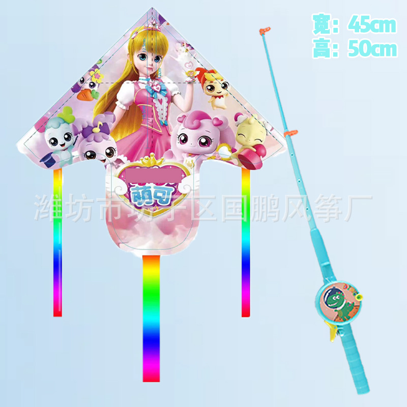 潍坊鱼竿风筝三角塑料卡通风筝儿童手持鱼竿三角风筝批发地摊热销