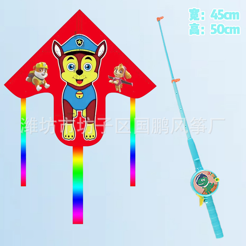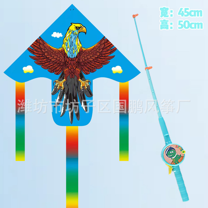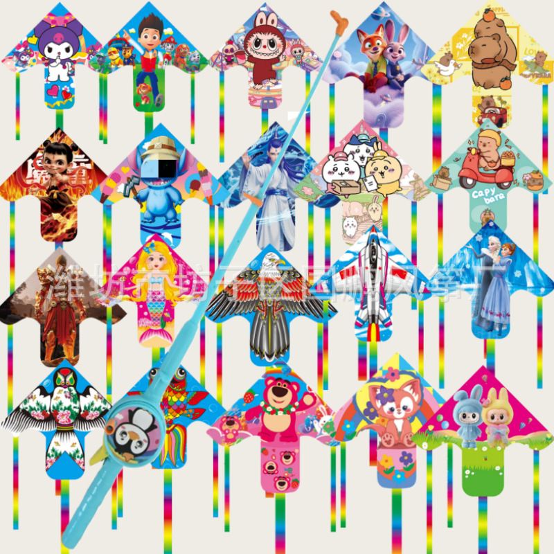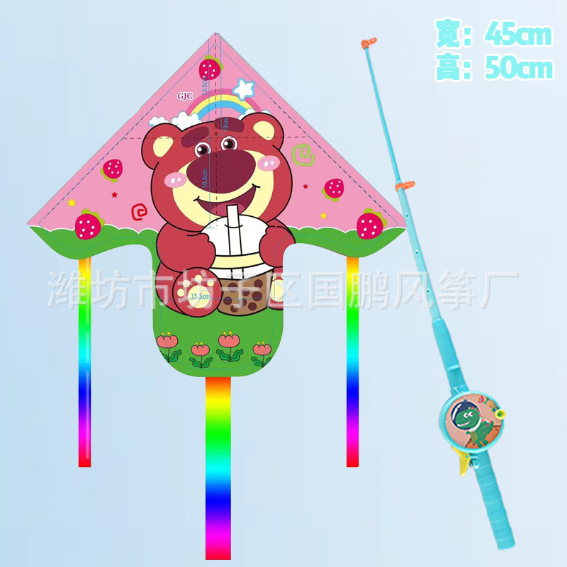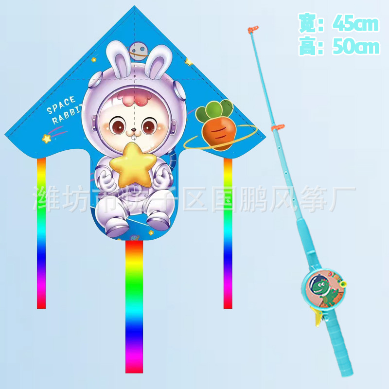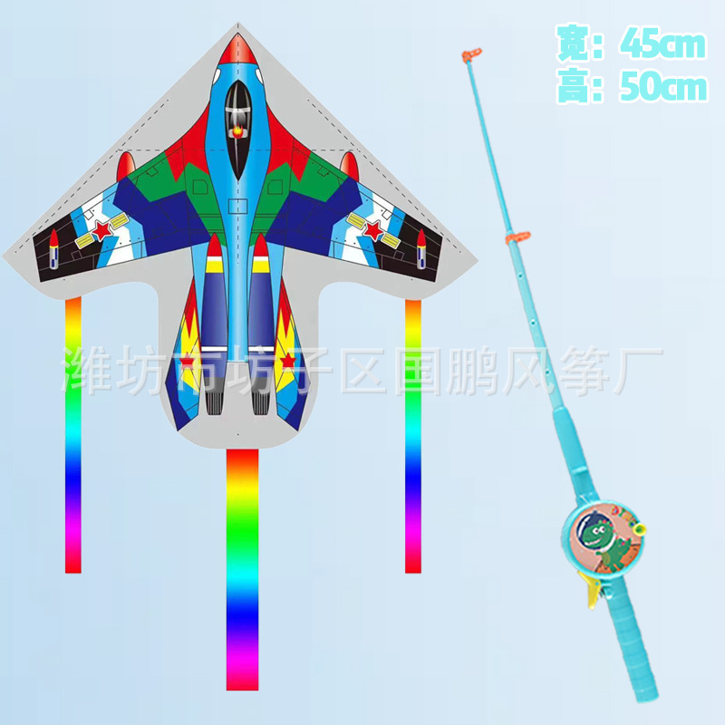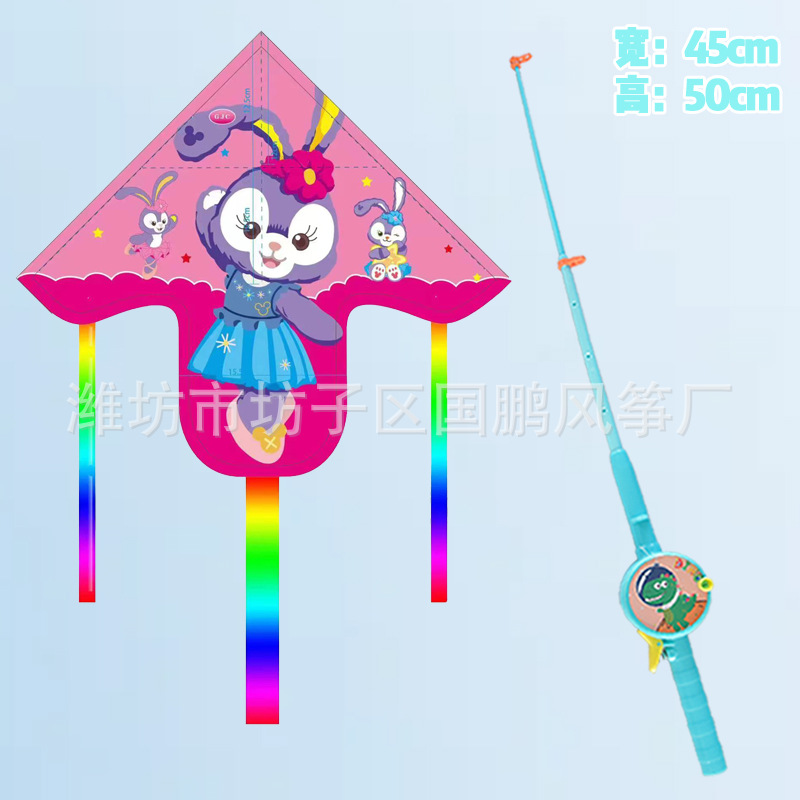 潍坊鱼竿风筝三角塑料卡通风筝儿童手持鱼竿三角风筝批发地摊热销