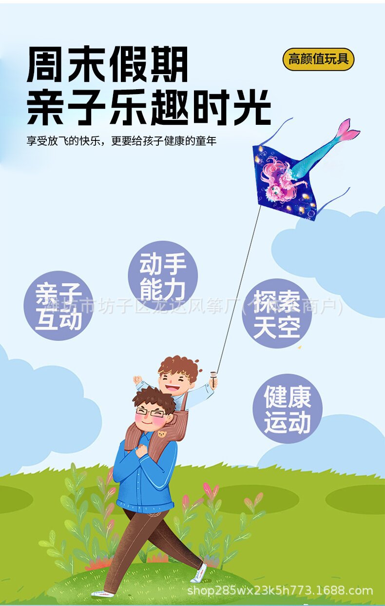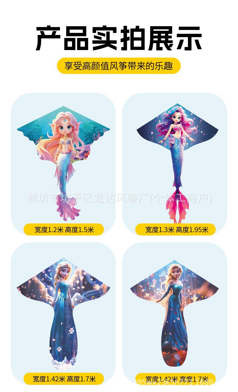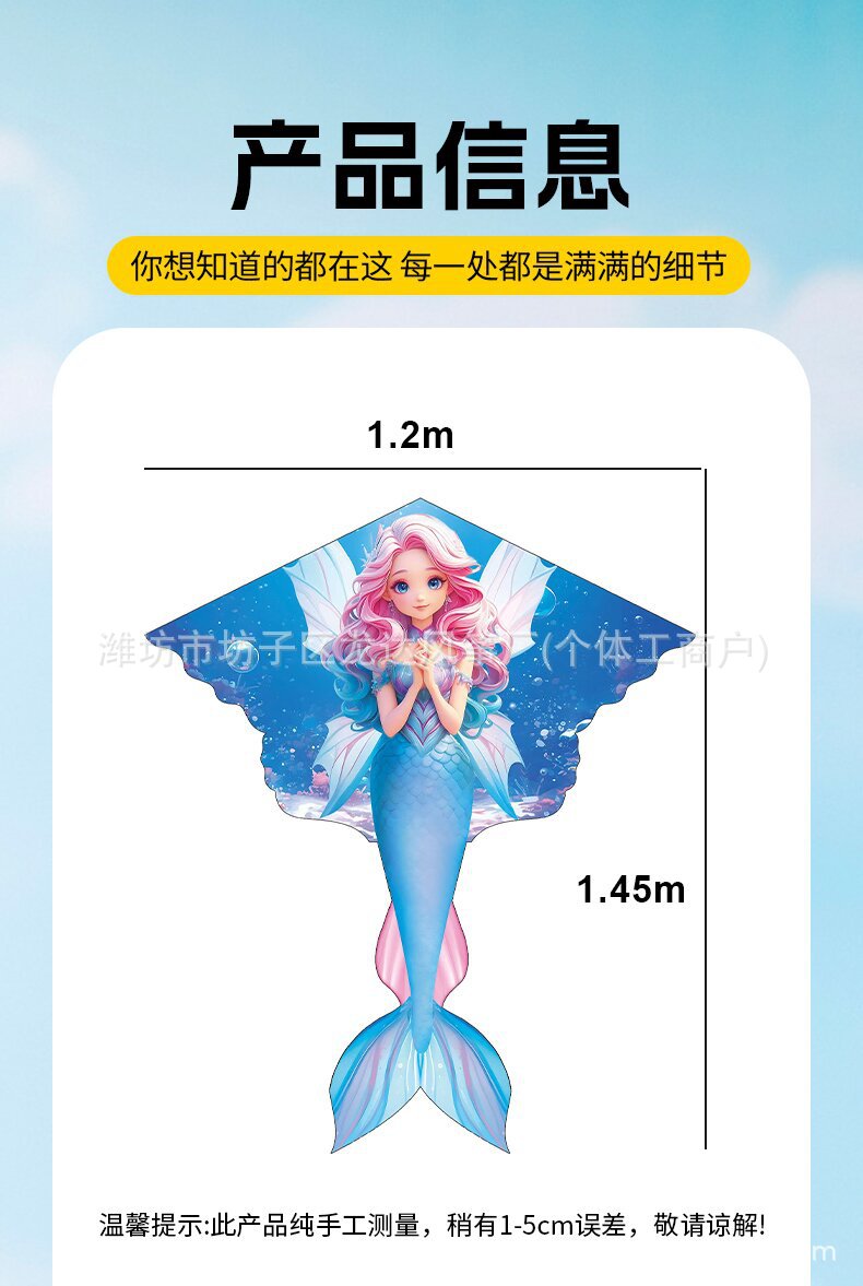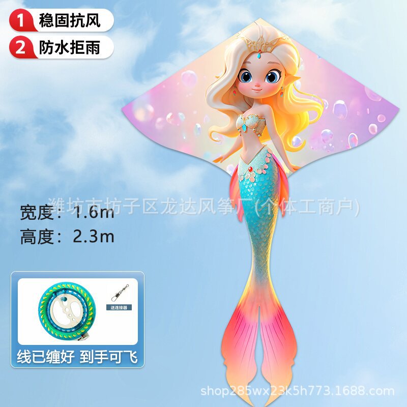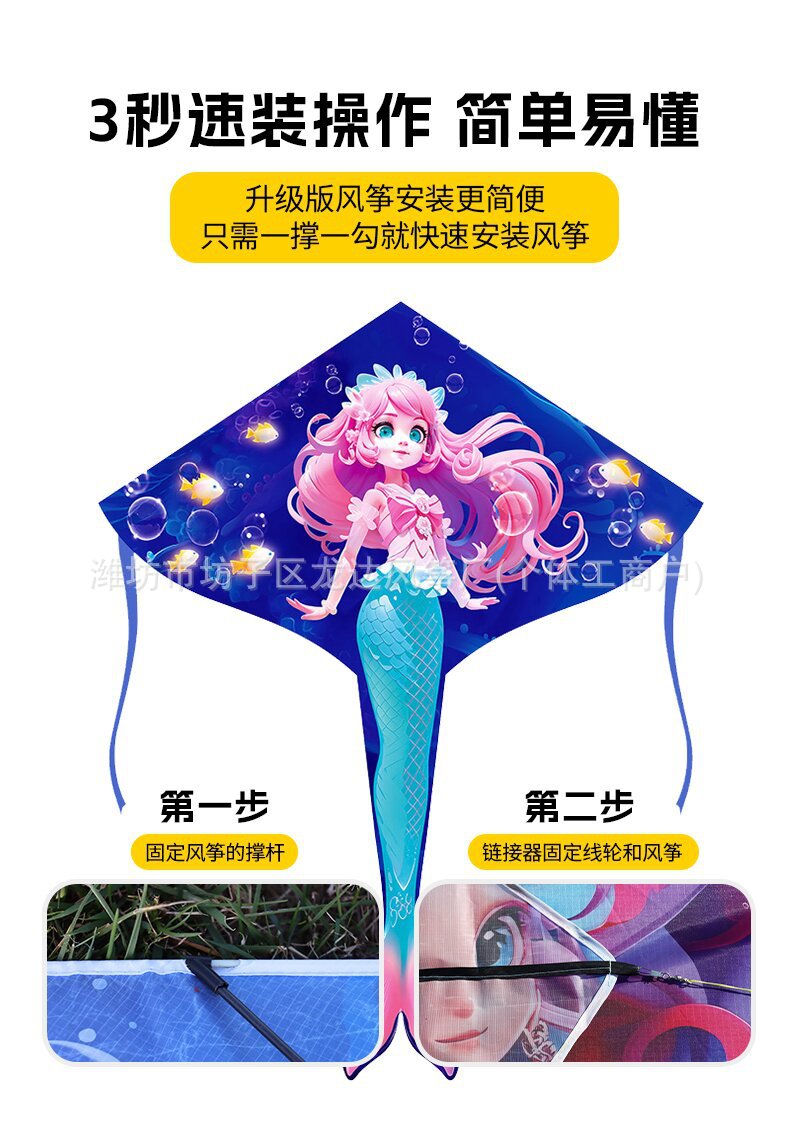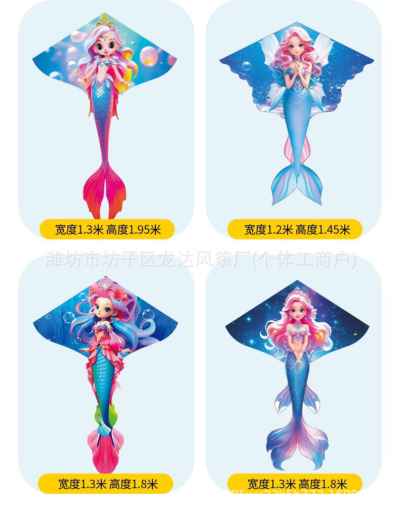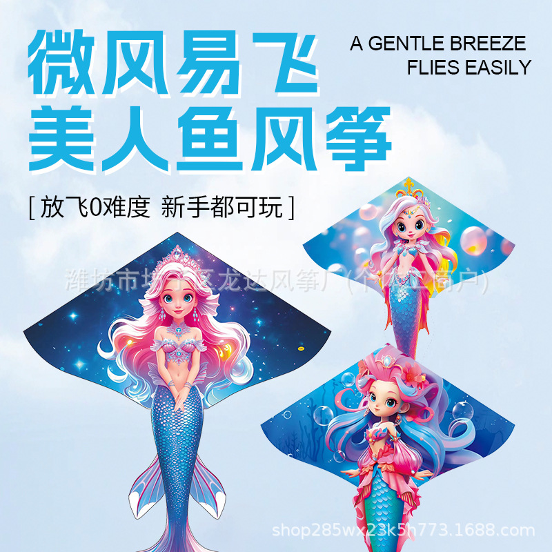 潍坊风筝批发 新款美人鱼风筝带线轮地摊货源 成人儿童风筝厂家