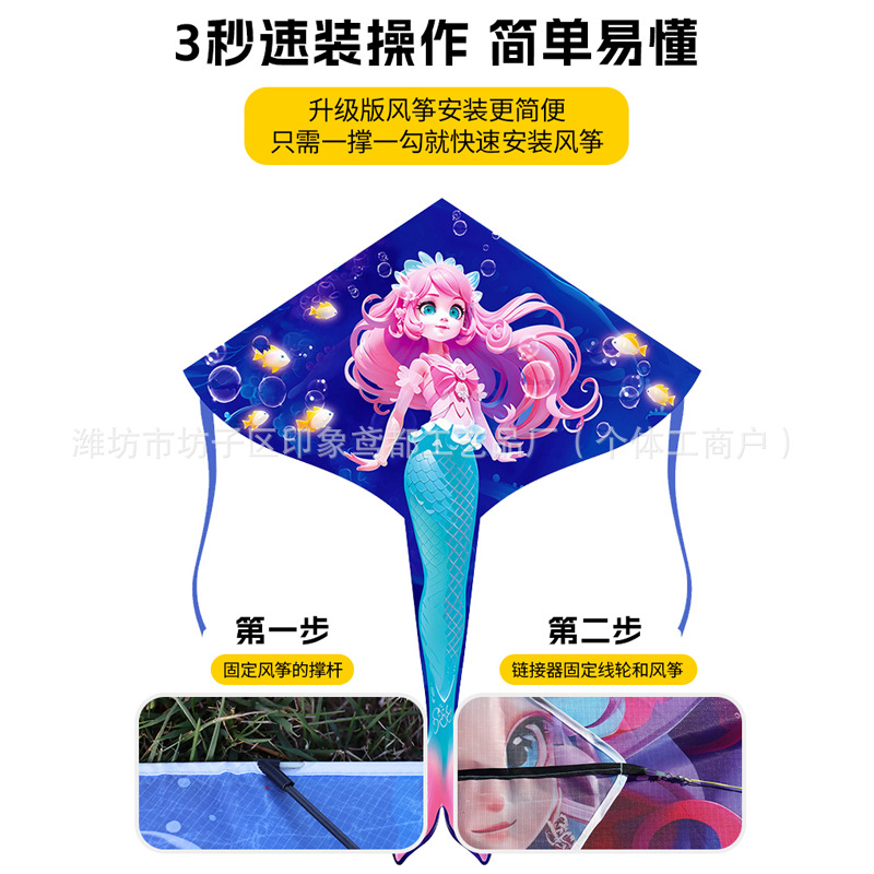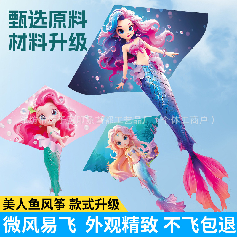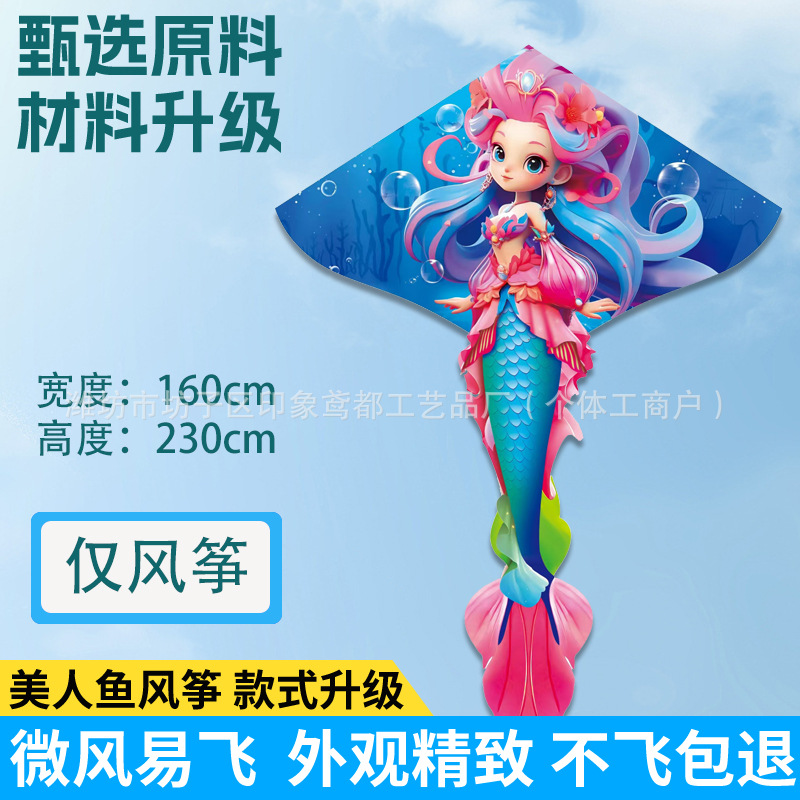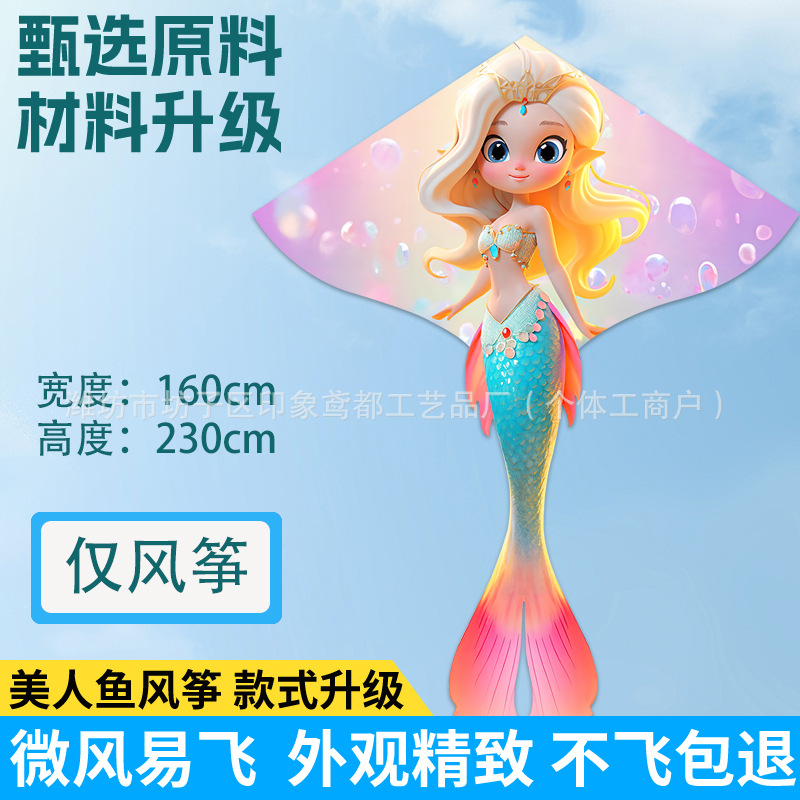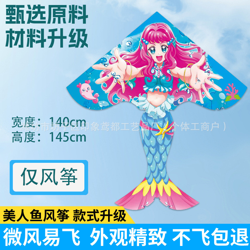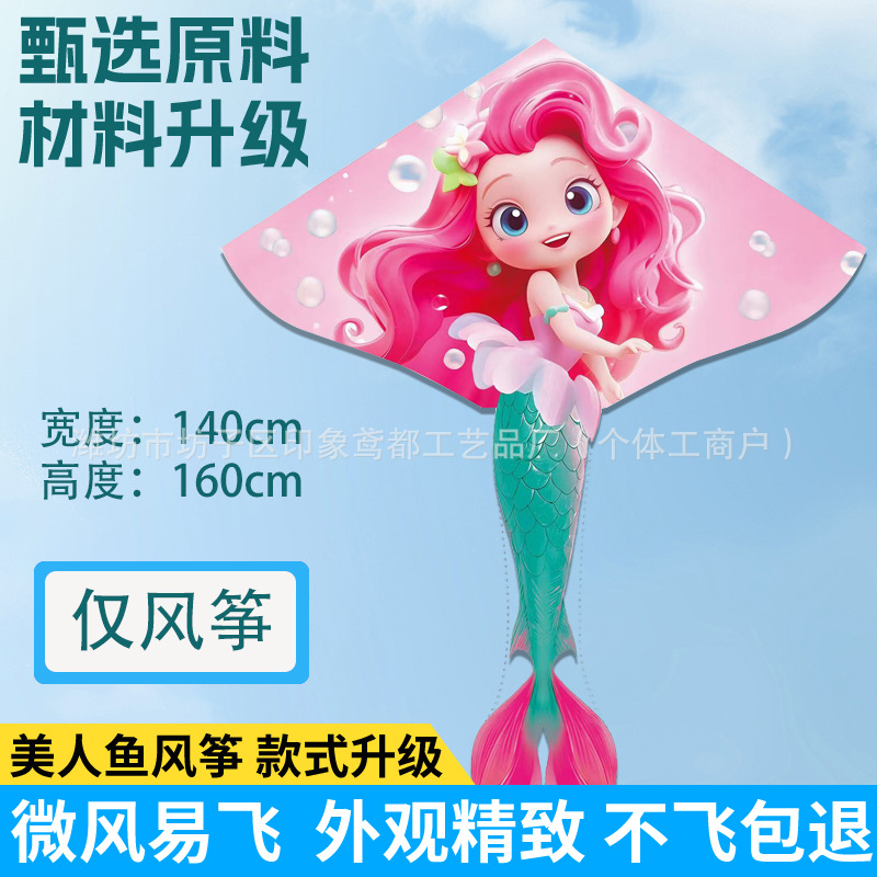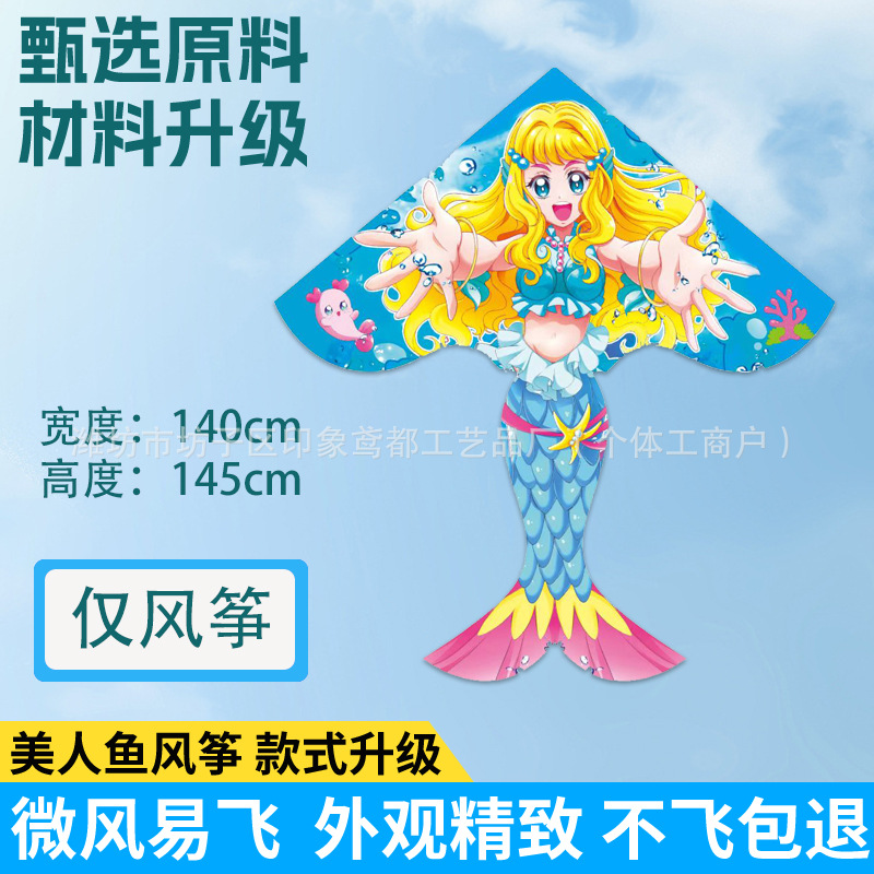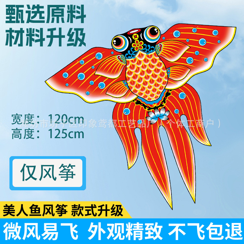新款美人鱼风筝 现货儿童卡通金鱼风筝跨境热卖微风易飞厂家批发