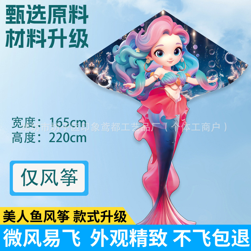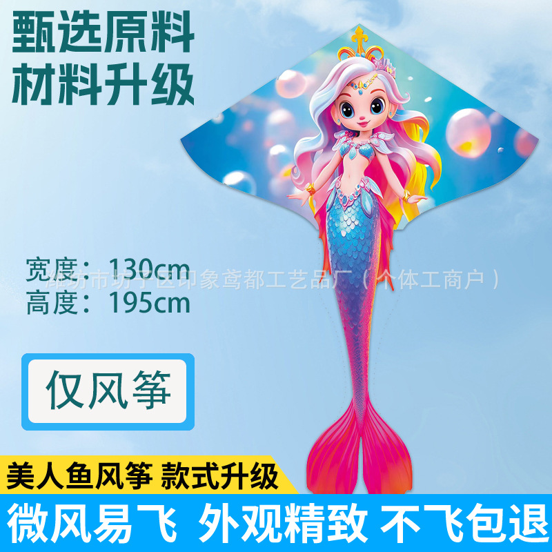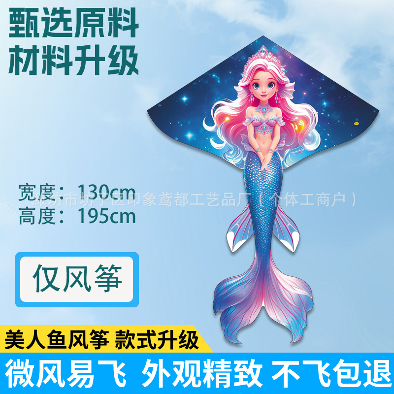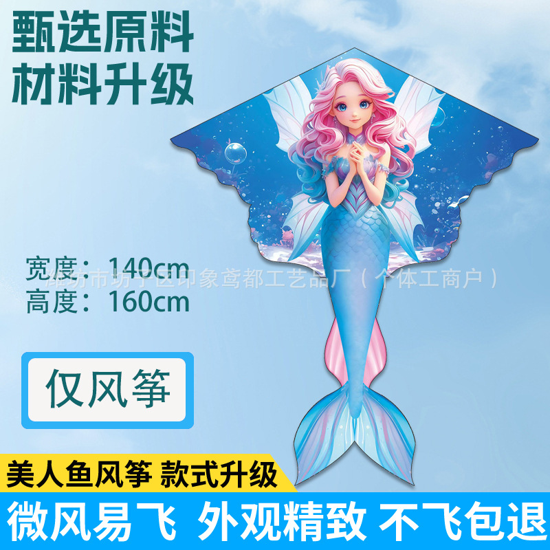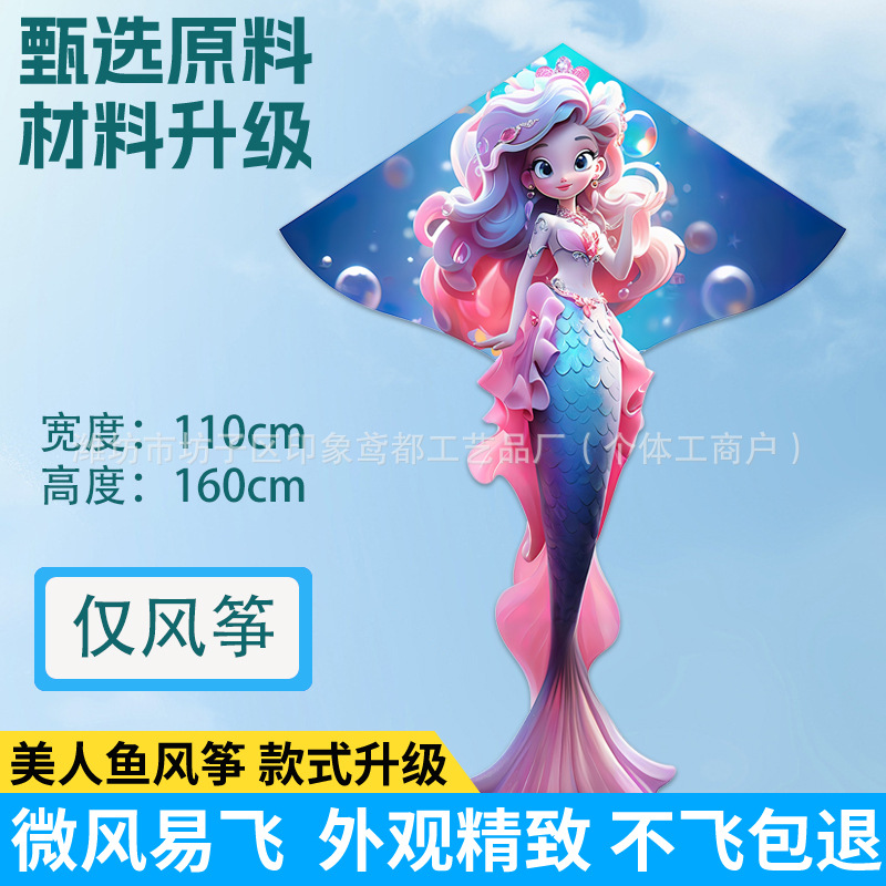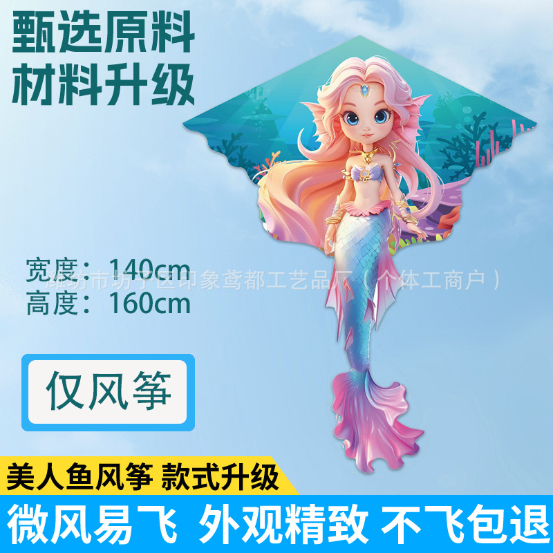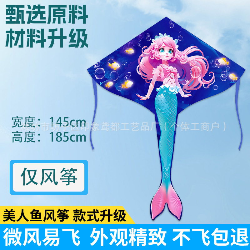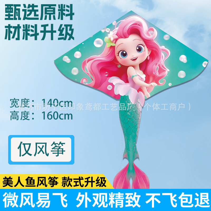新款美人鱼风筝 现货儿童卡通金鱼风筝跨境热卖微风易飞厂家批发