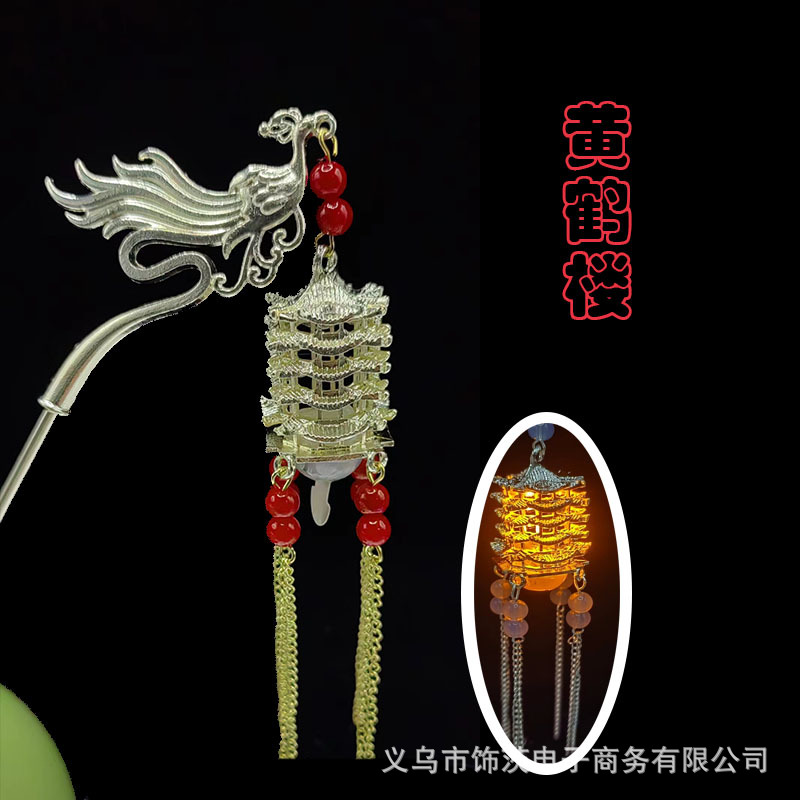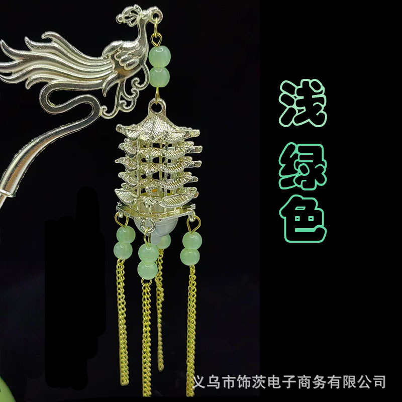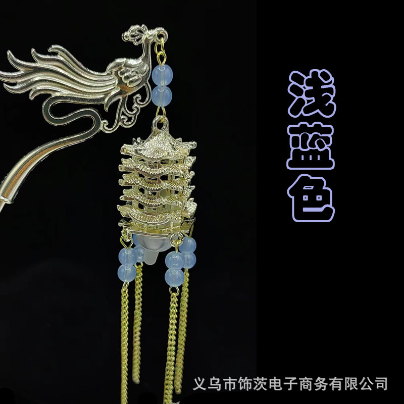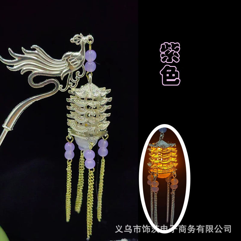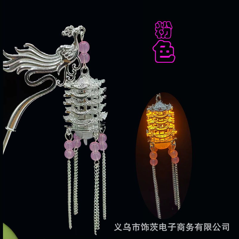 中国风宫灯流苏发簪女高级感步摇簪子古风汉服旗袍会发光的头饰
