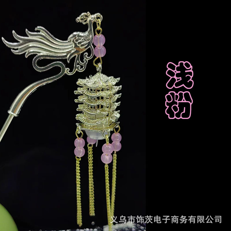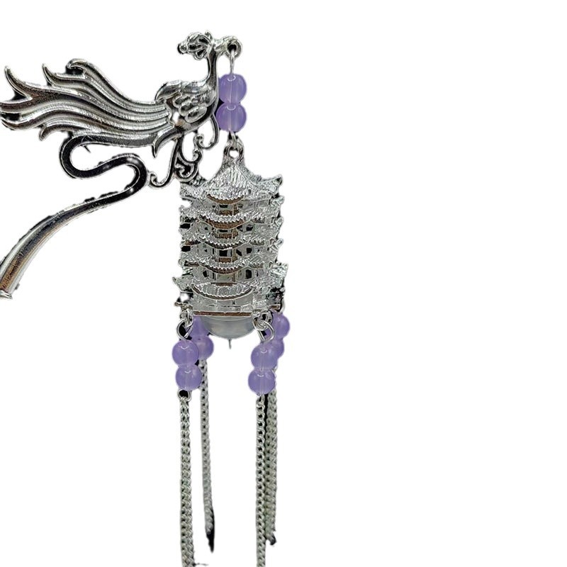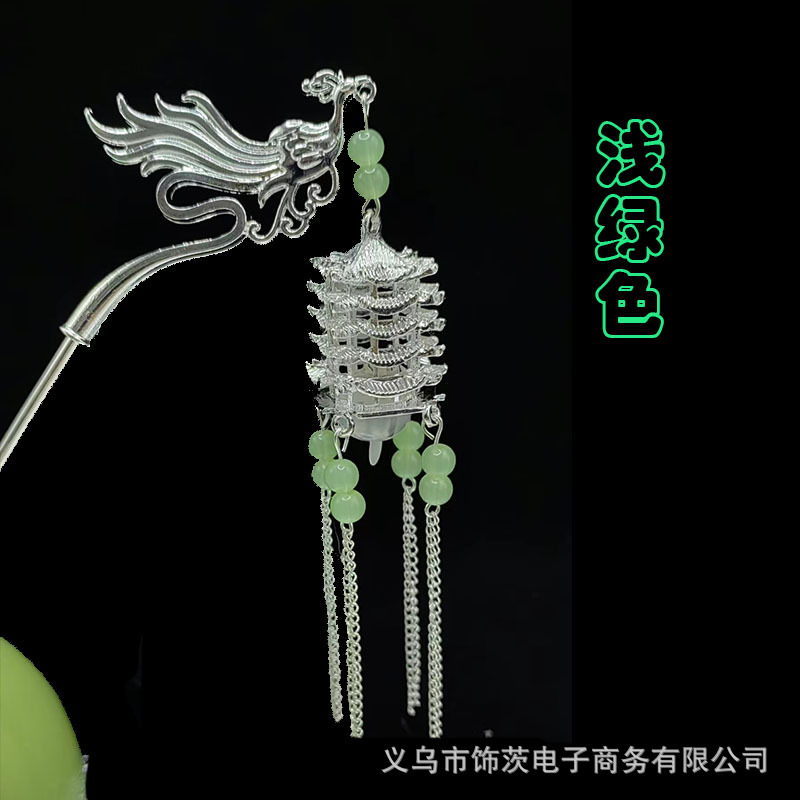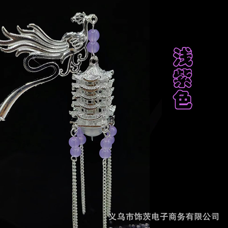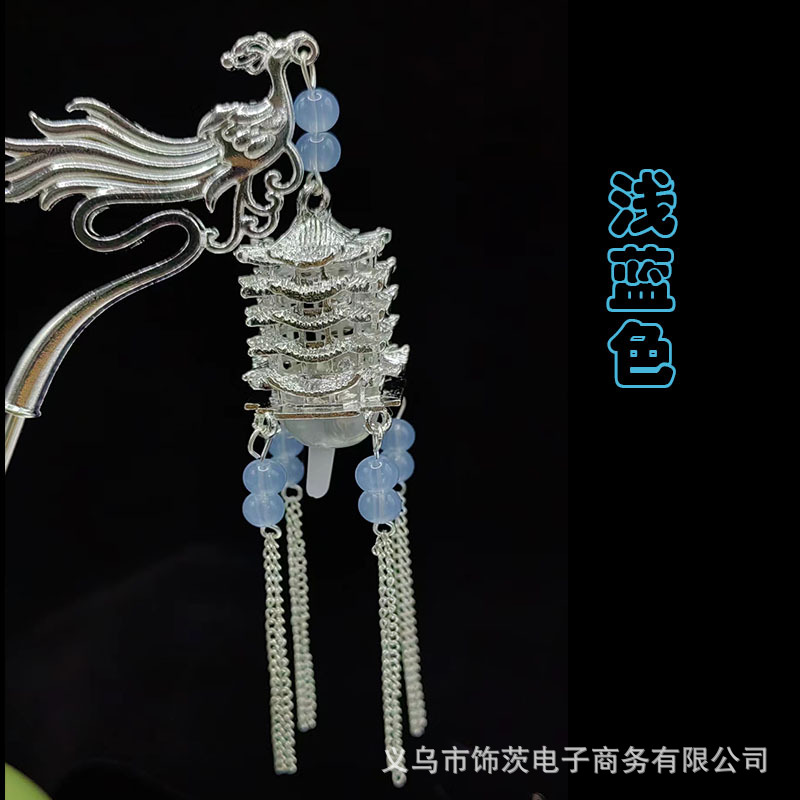 中国风宫灯流苏发簪女高级感步摇簪子古风汉服旗袍会发光的头饰