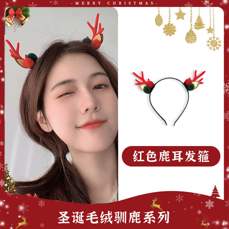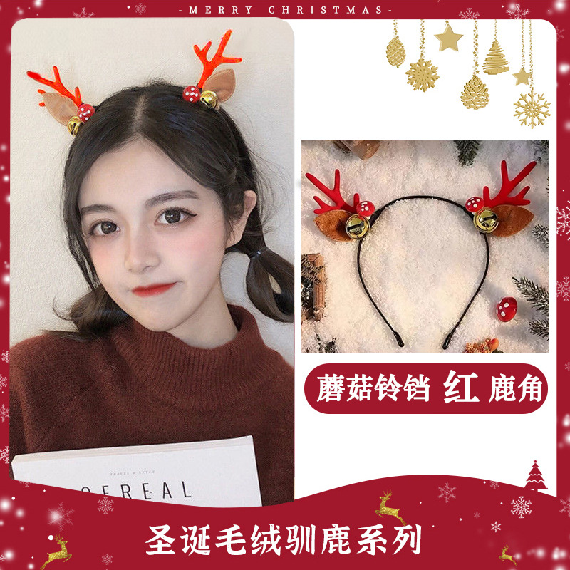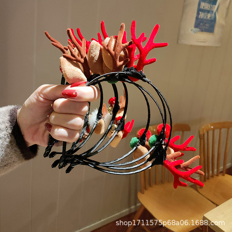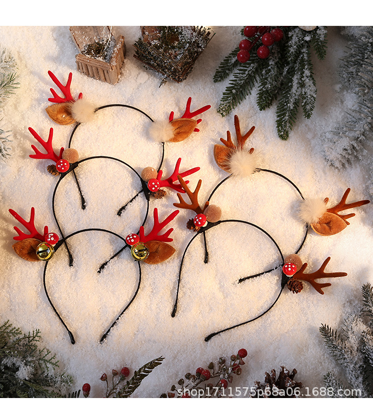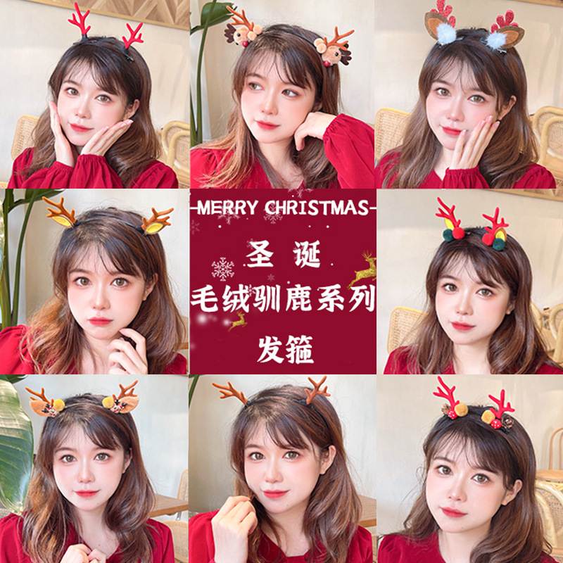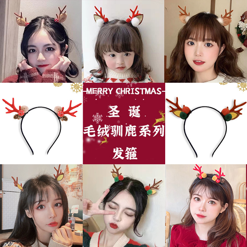新款森系麋鹿头箍饰品圣诞节红色鹿角发箍女儿童发饰发卡头饰批发