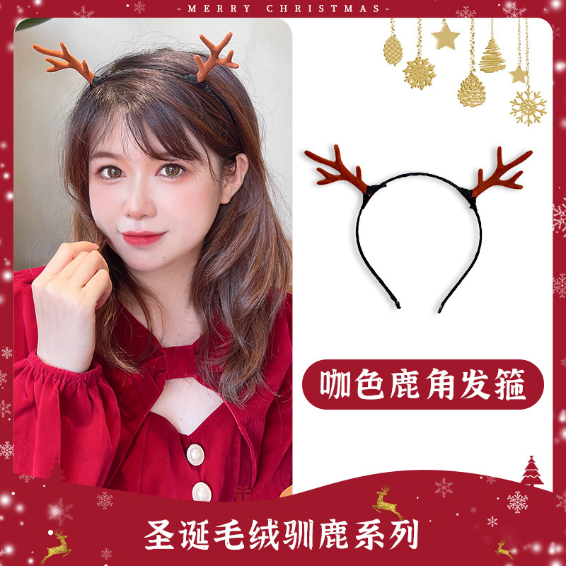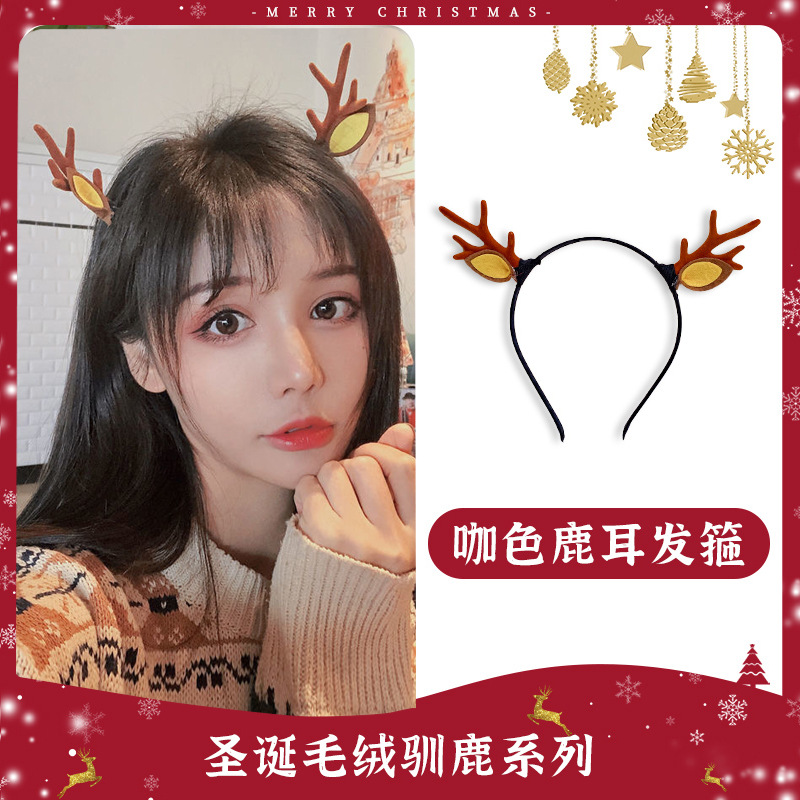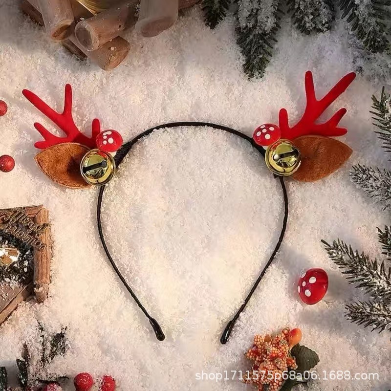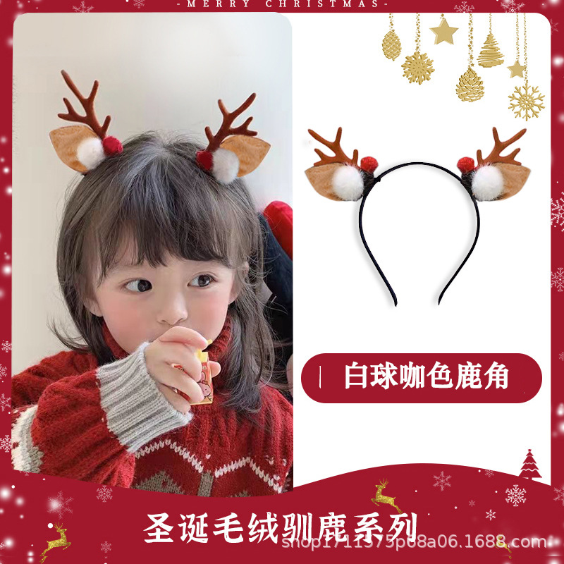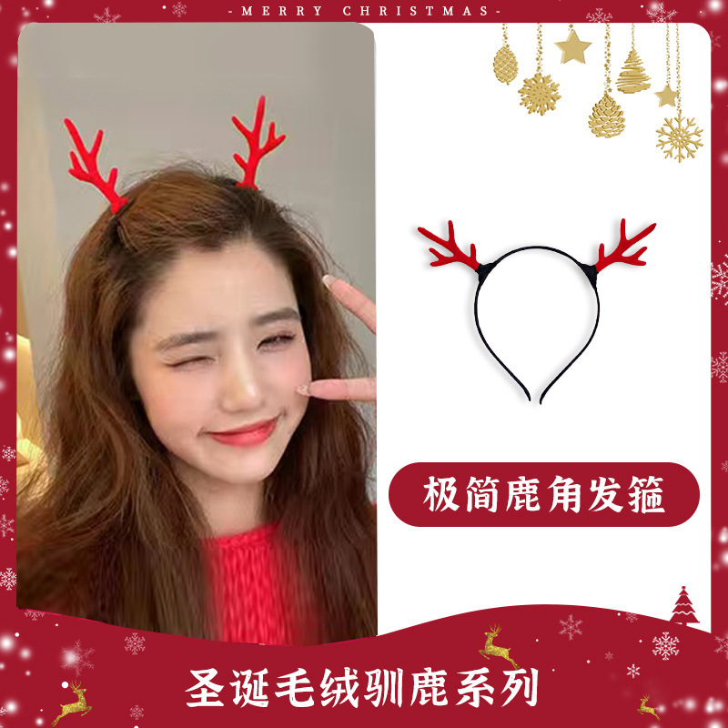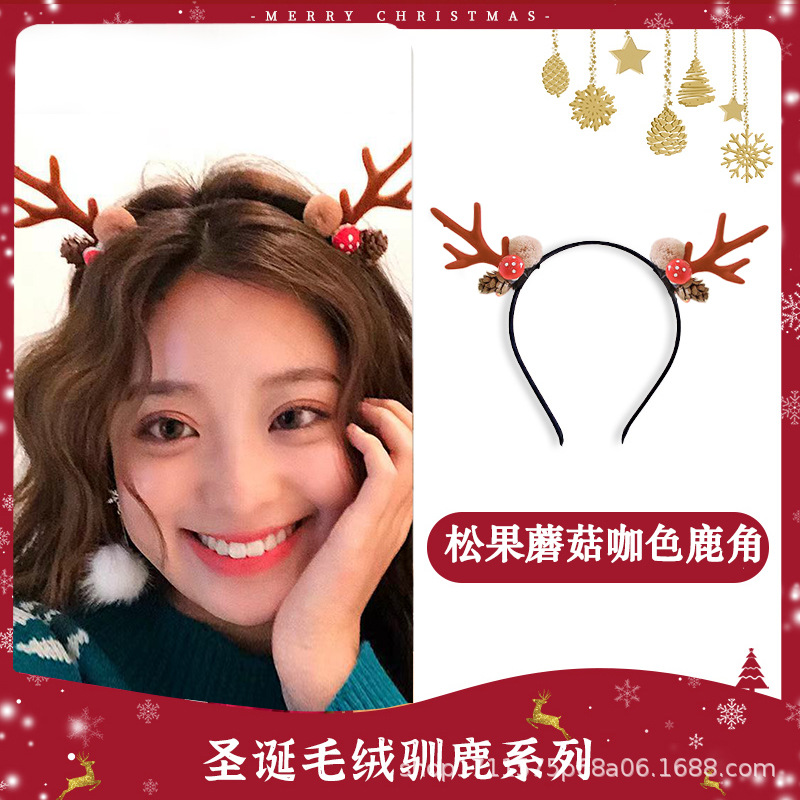 新款森系麋鹿头箍饰品圣诞节红色鹿角发箍女儿童发饰发卡头饰批发